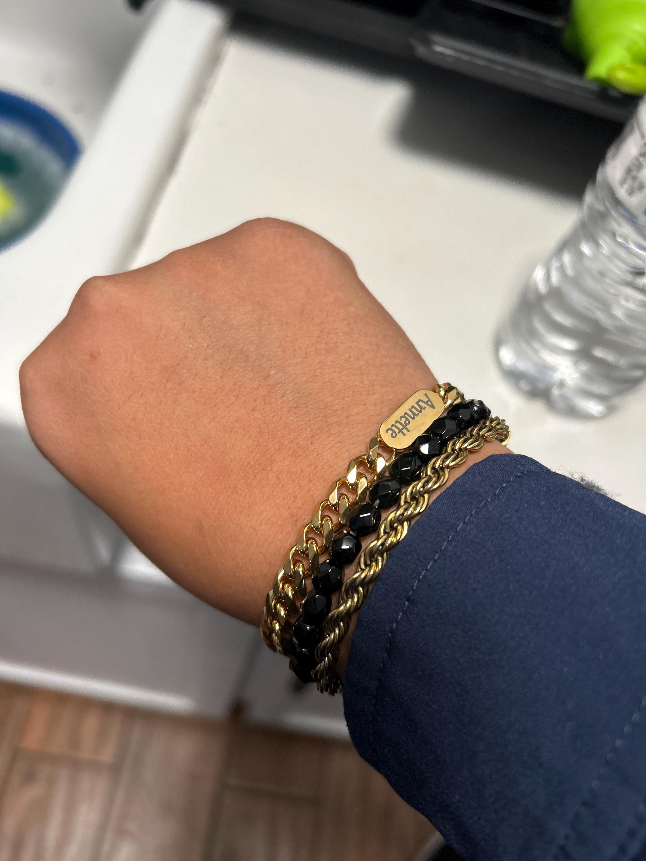 We can laser engrave on the "curby" bracelet- front or the back side of the flat bar free of charge but we appreciate a lot for a small tip for the time of our technician.