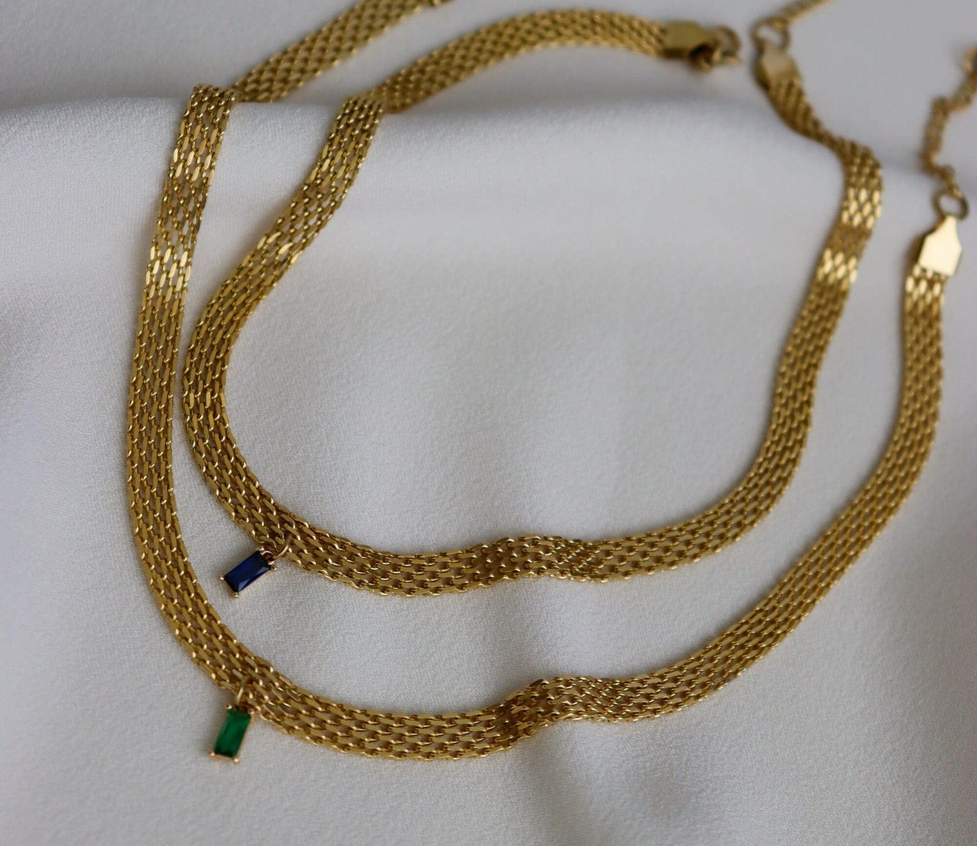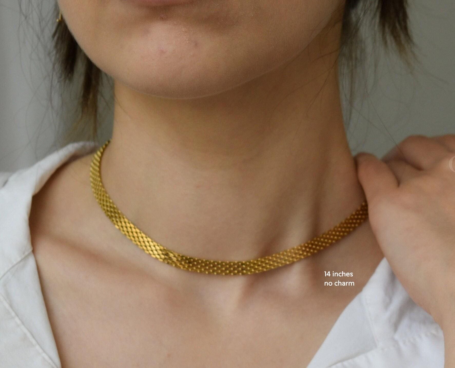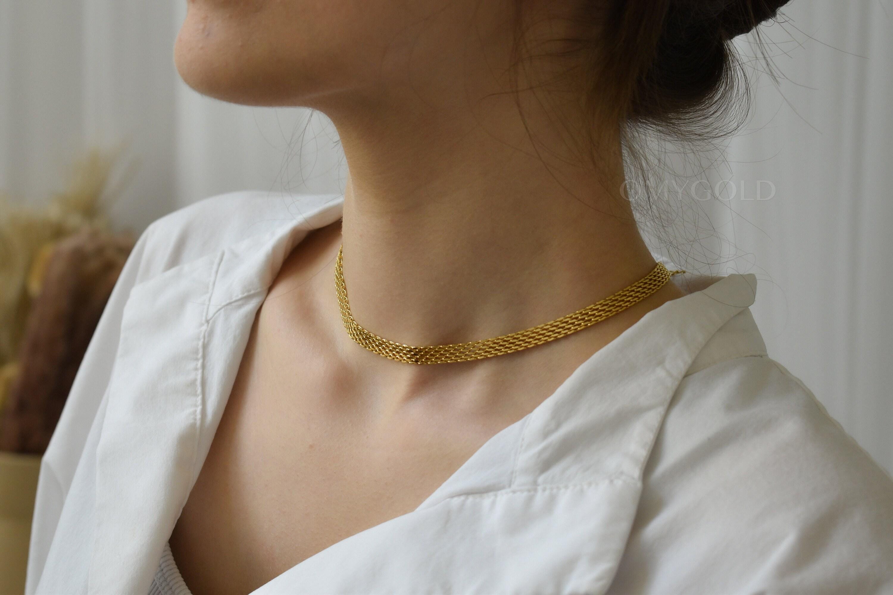 18K GOLD FILLED Mesh Vintage Choker Necklace, Zircon Stone Necklace Waterproof Jewelry Gold Retro Jewelry Anti Tarnish Gold Choker Necklace