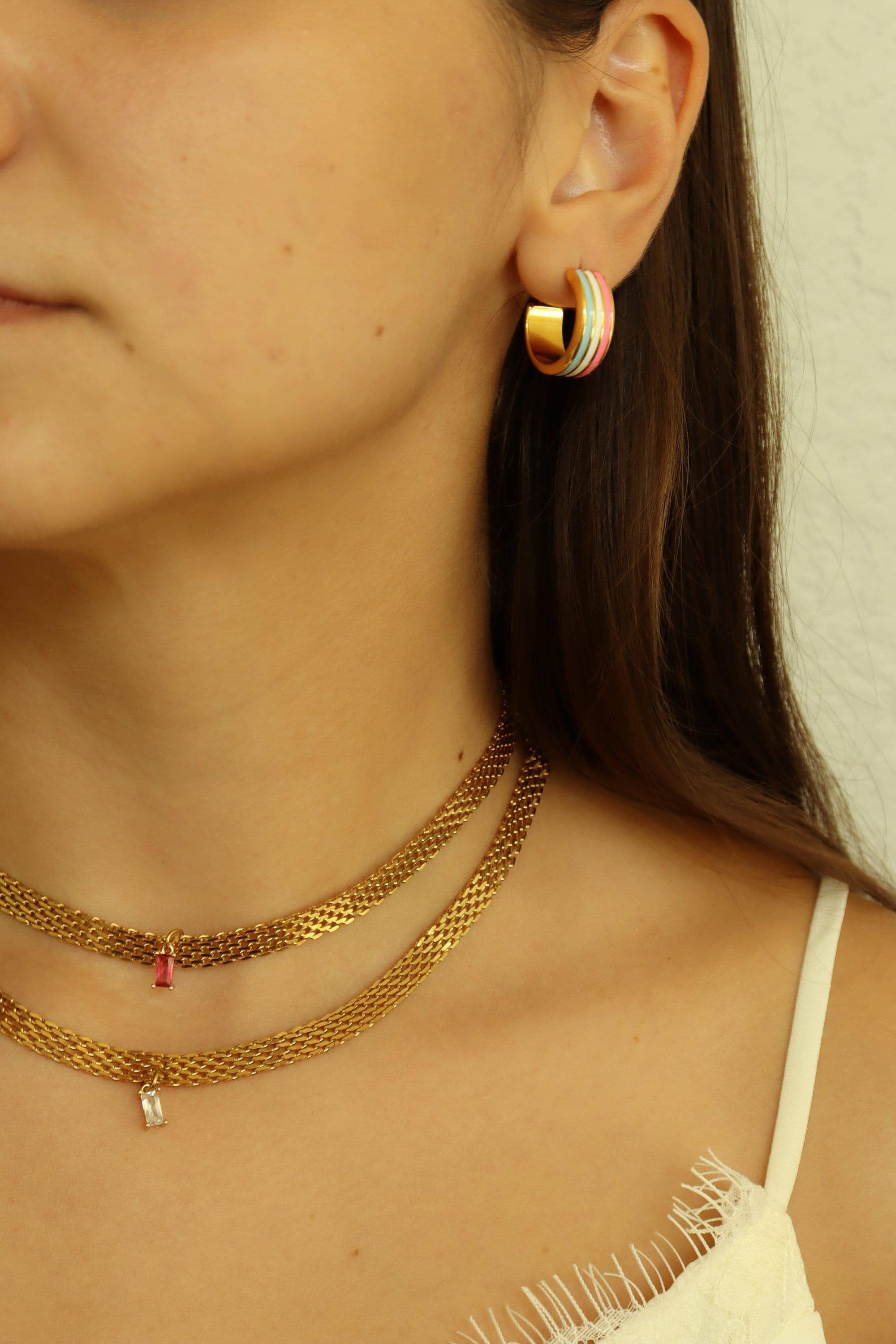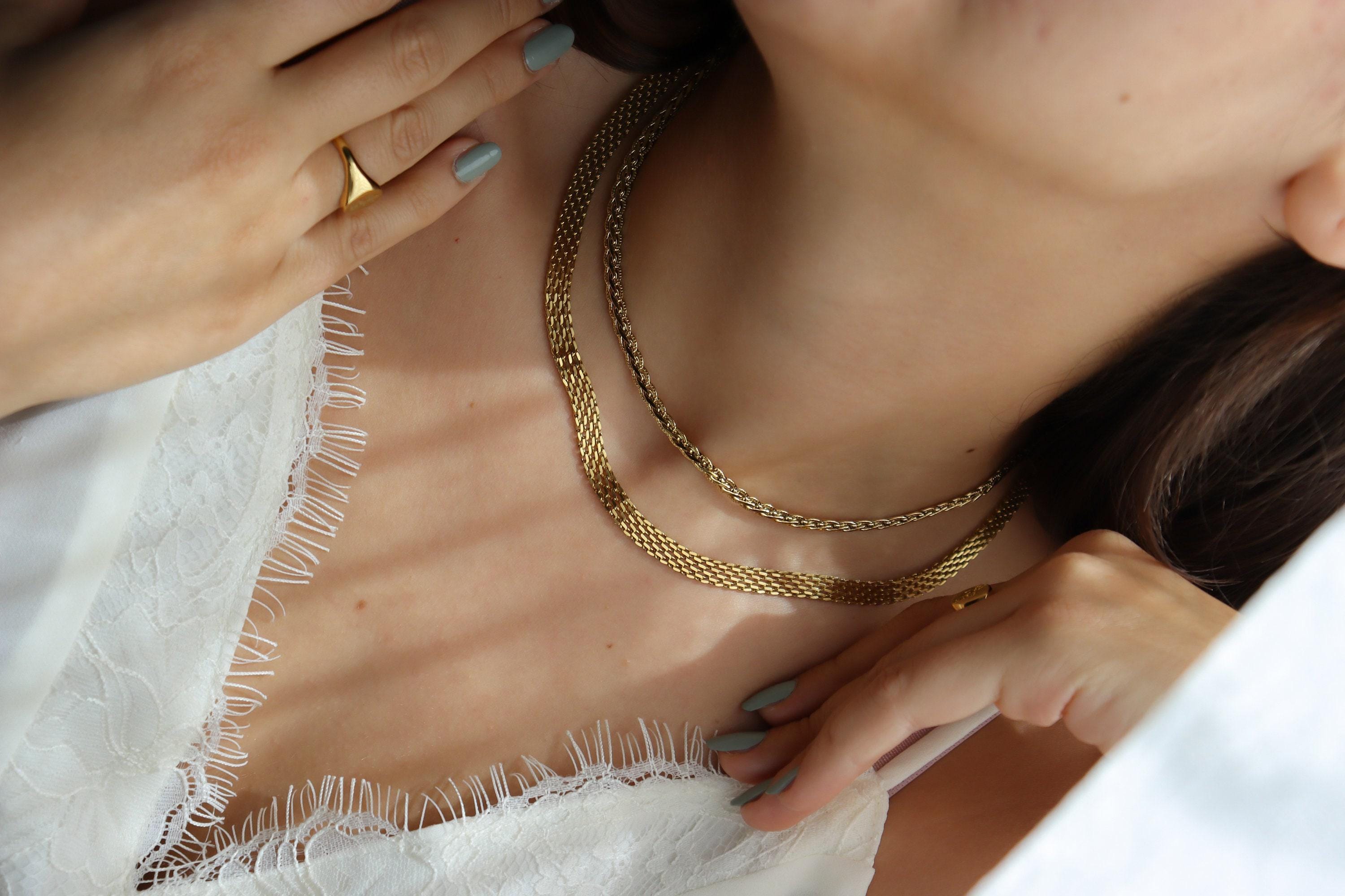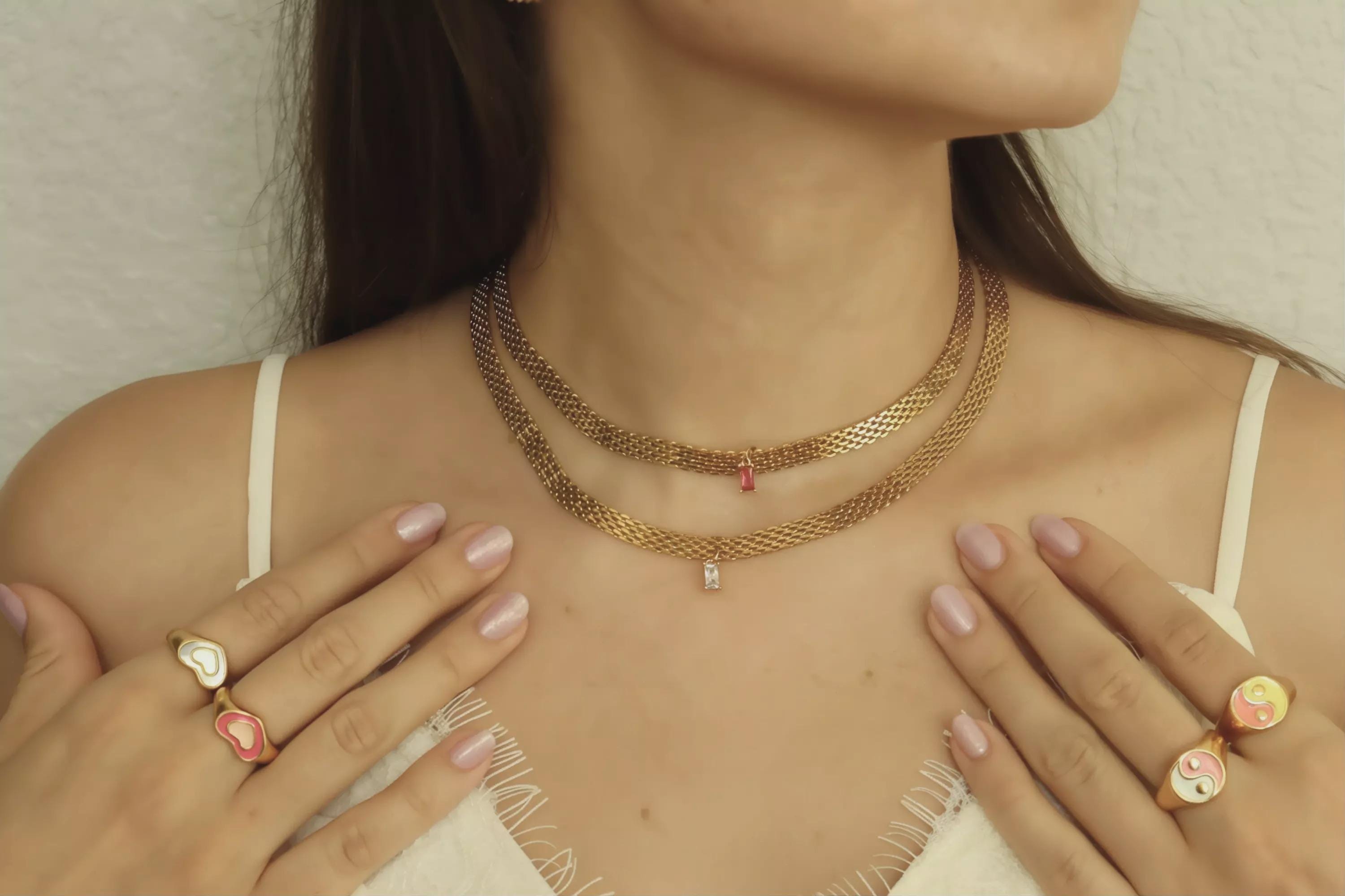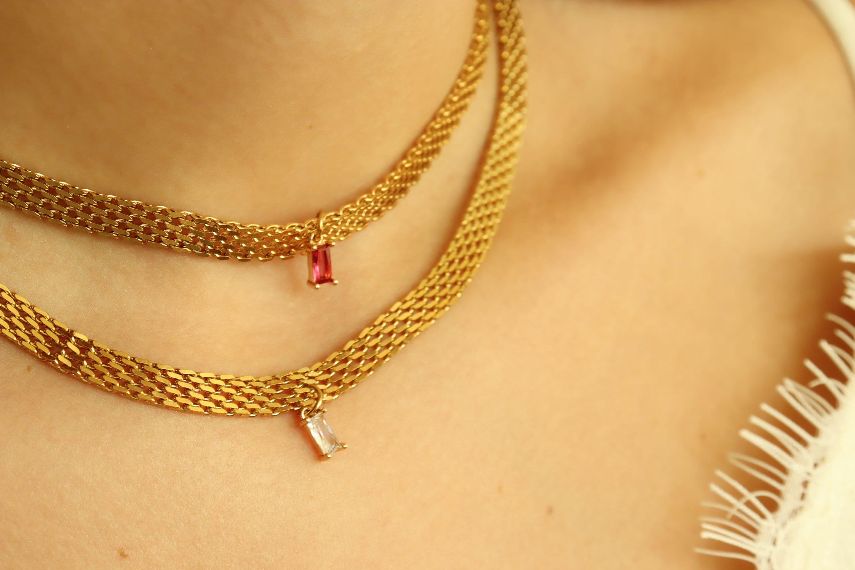 18K GOLD FILLED Mesh Vintage Choker Necklace, Zircon Stone Necklace Waterproof Jewelry Gold Retro Jewelry Anti Tarnish Gold Choker Necklace