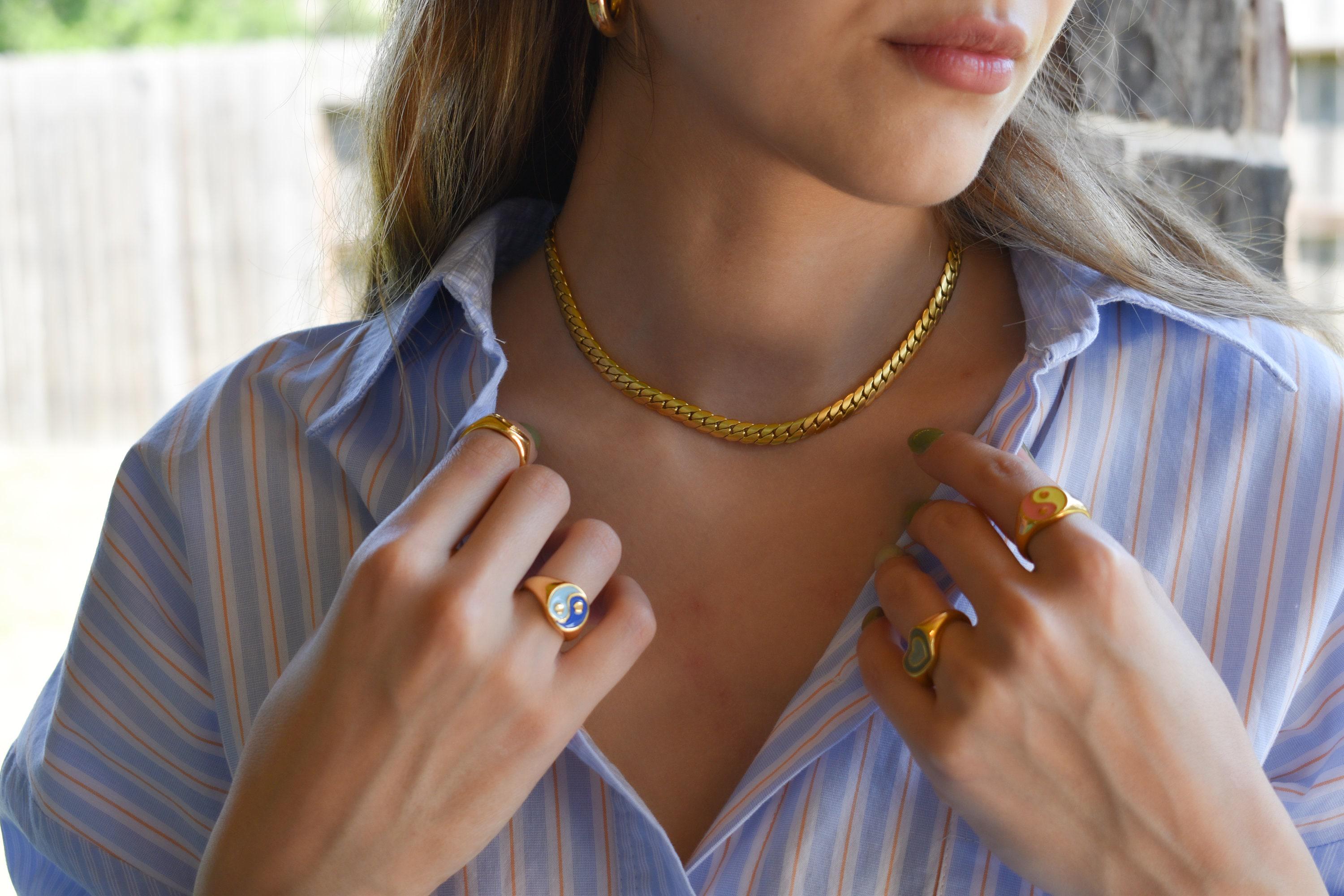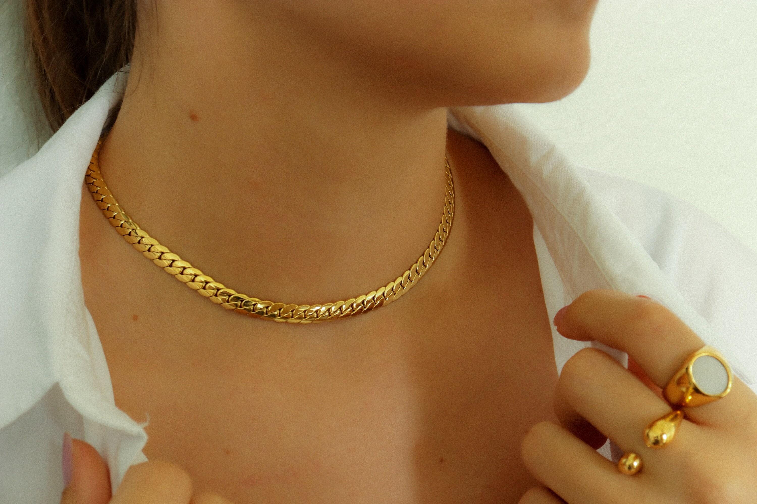 Elite High Quality Gold Vintage Style Snake Chain Herringbone Choker Necklace Bamboo Chain WATERPROOF Jewelry Anti Tarnish ✨