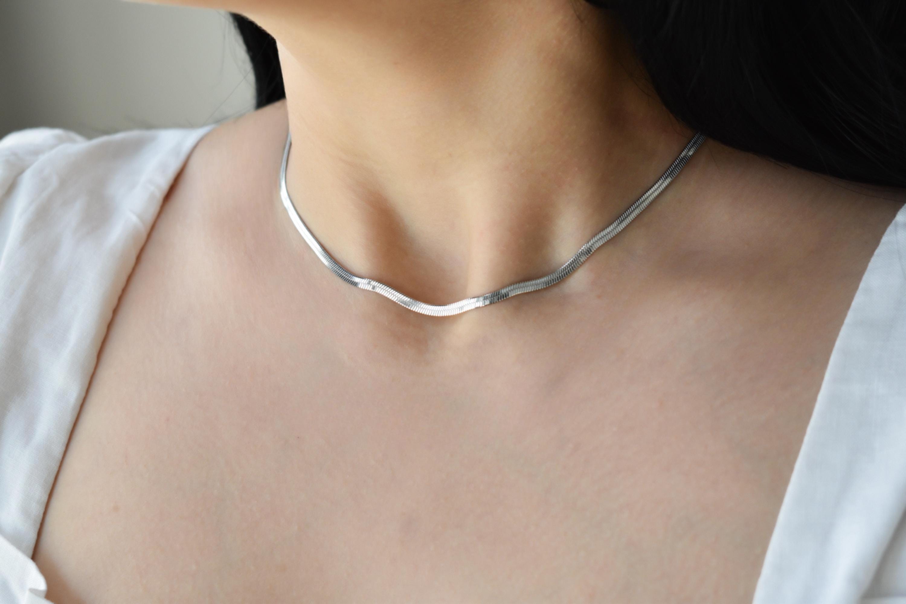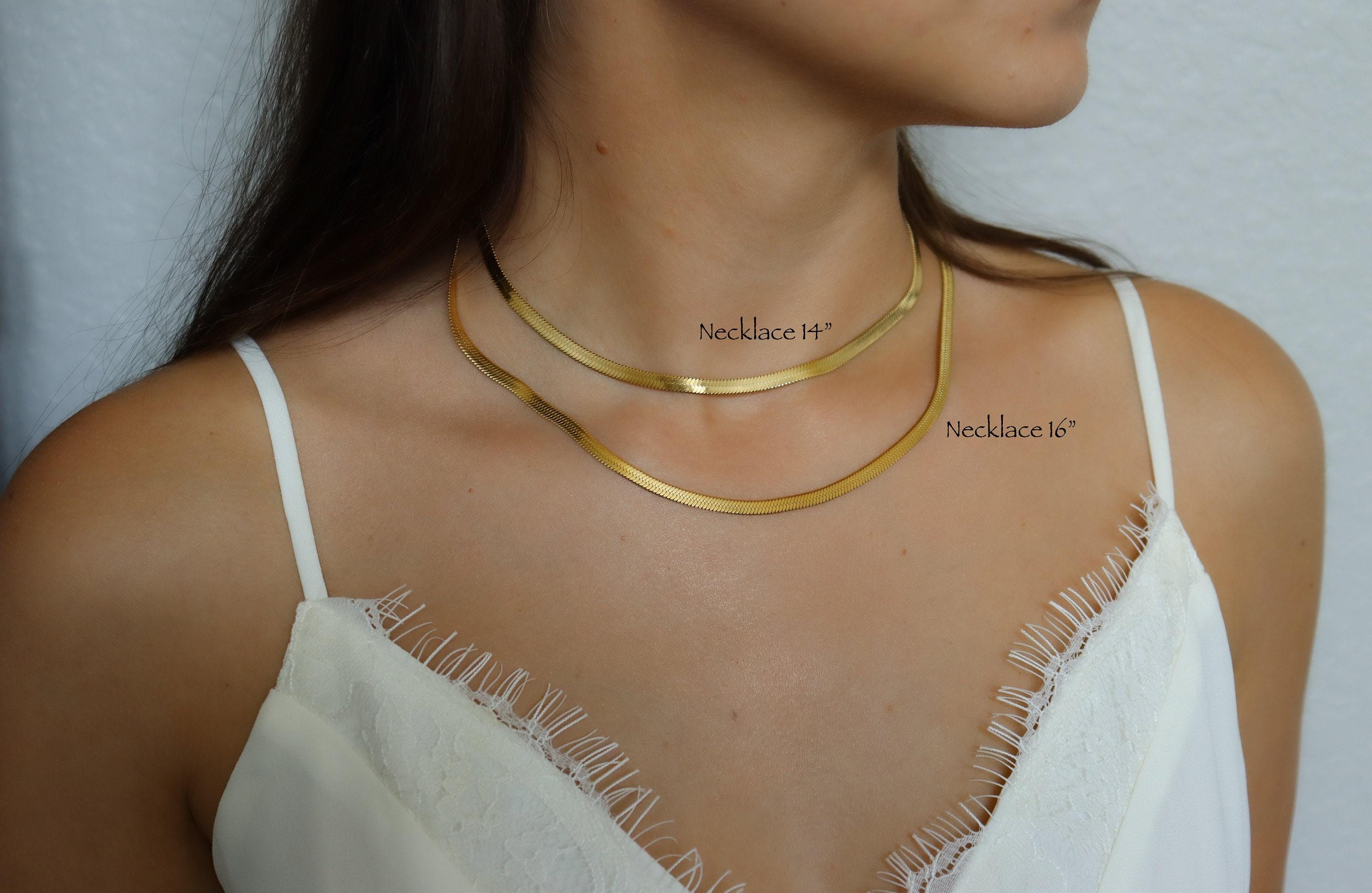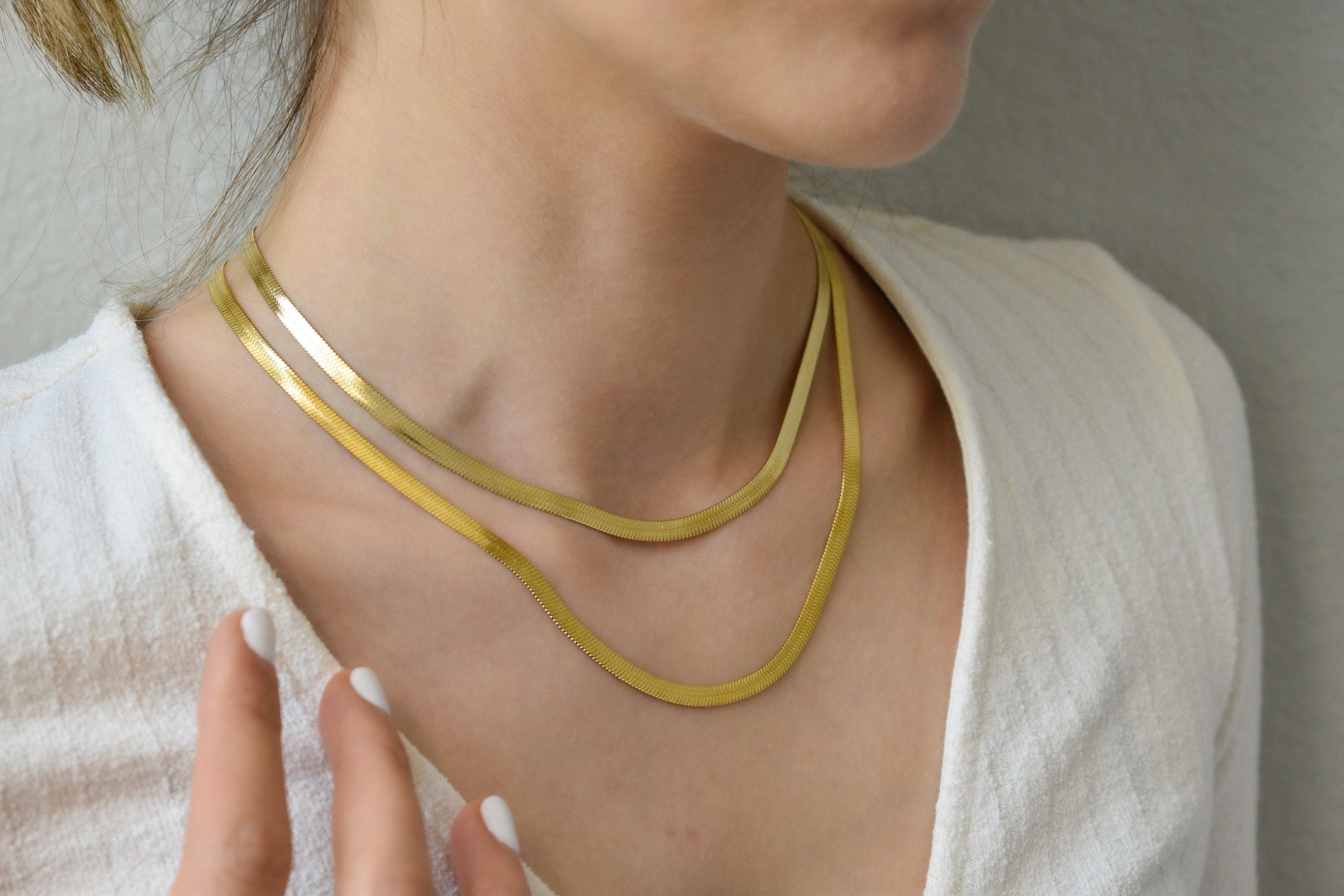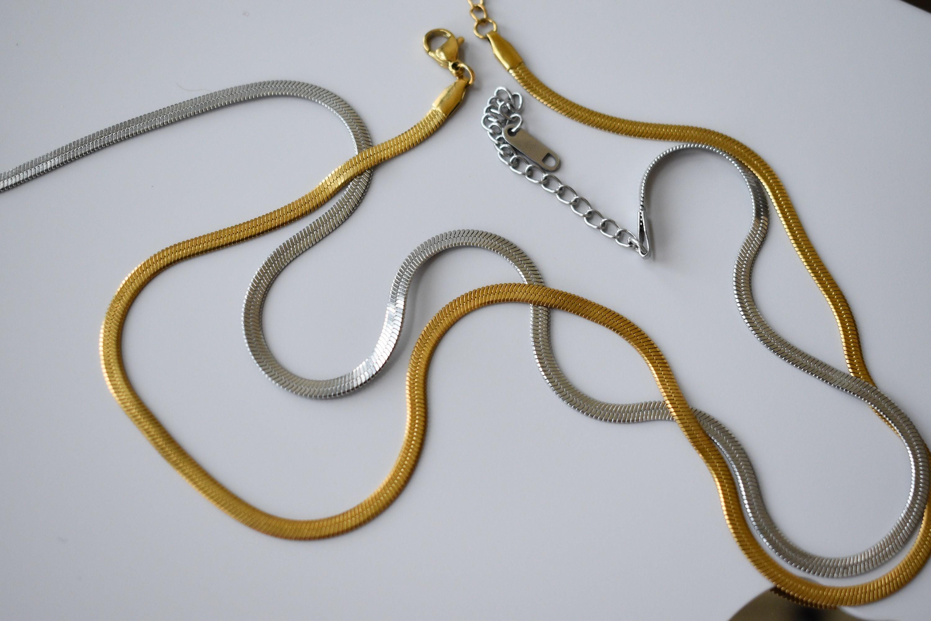 18K Gold Herringbone WATERPROOF Silver Chain Snake Chain Gold Necklace Gold Jewelry Double Layered Herringbone Snake Necklace Her Bridesmaids Gift ✨