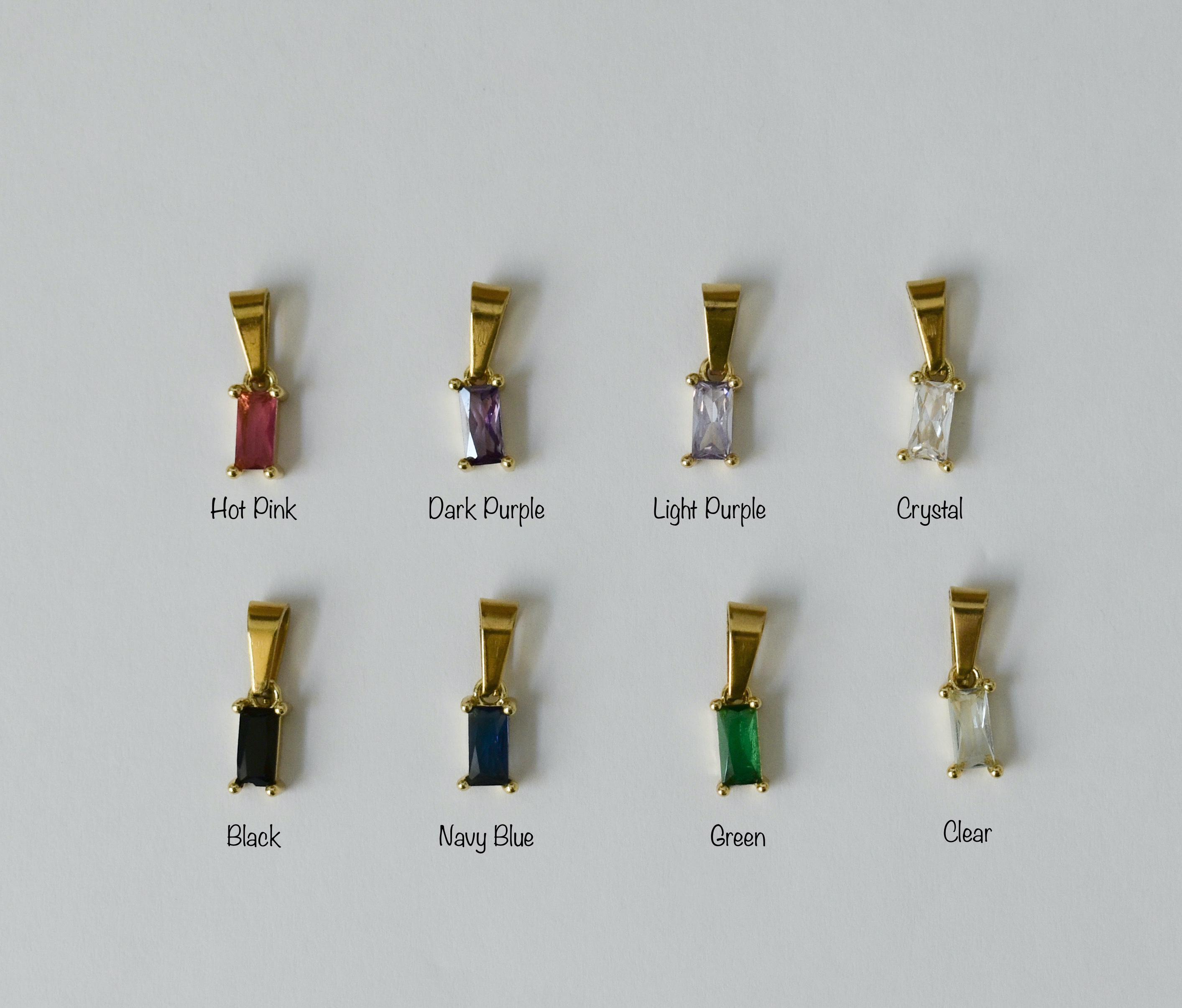 1️⃣ This is a listing for a necklace or earrings with colorful zircon stone charms. Please choose the chain types and lengths if you want a necklace, or pick the earrings options if you want a hoop earrings with charms.