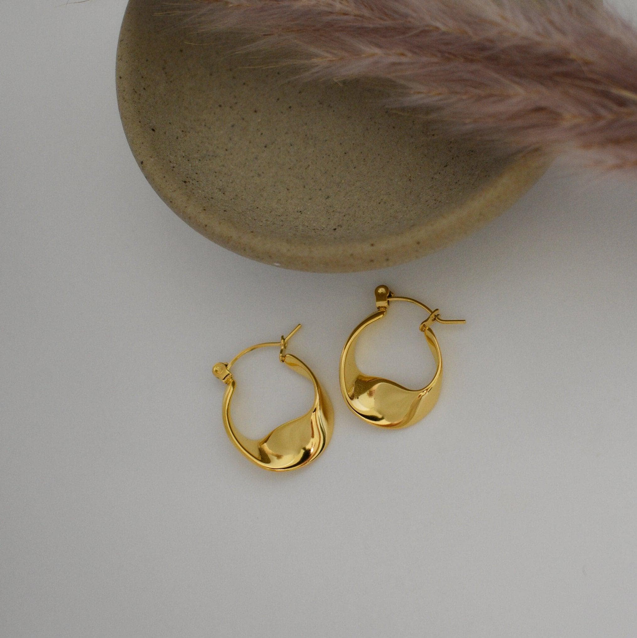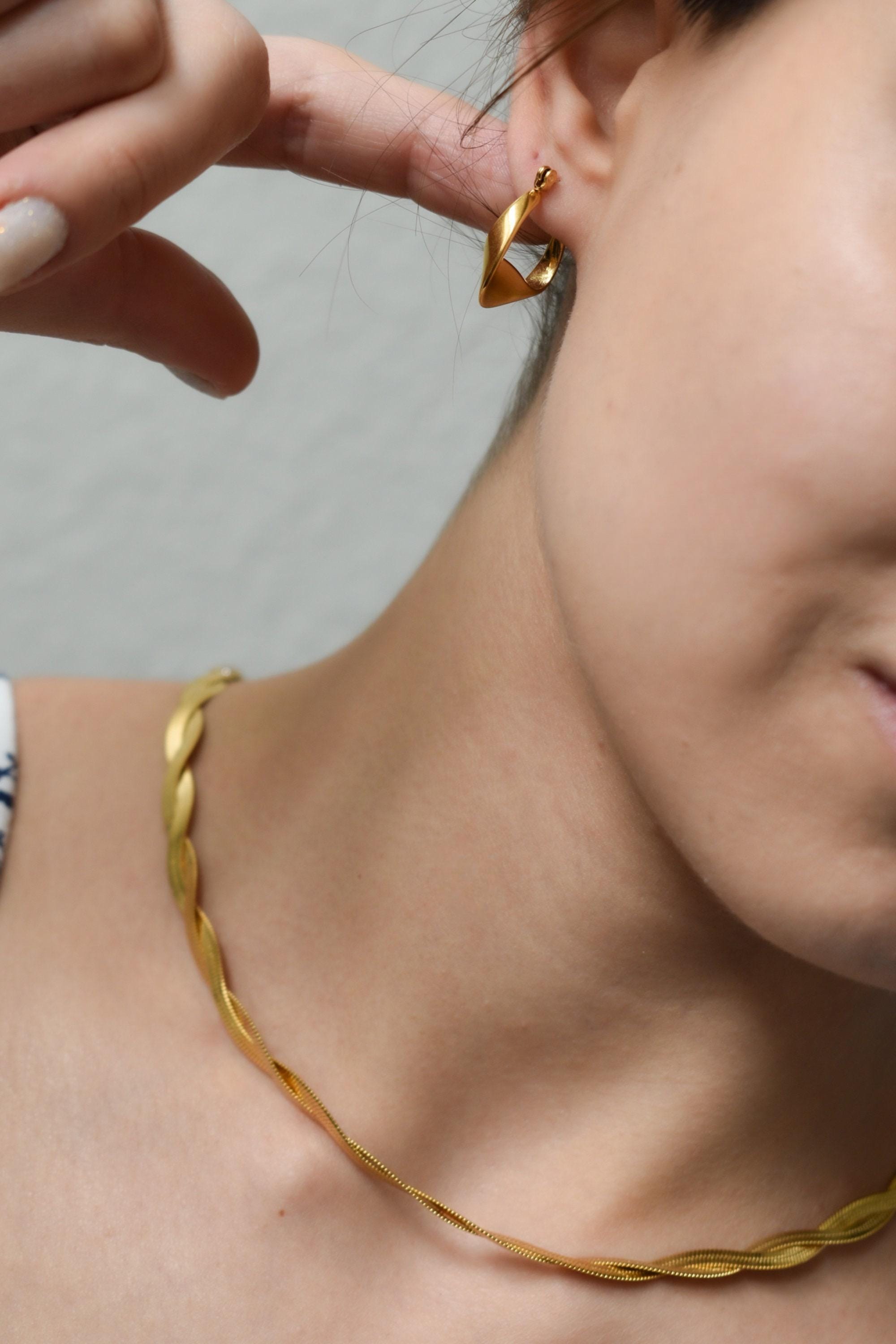 18K Gold Smooth Twisted Hoop Dangle Earrings Anti Tarnish Jewelry Waterproof Earrings Gold Jewelry for Woman Best Gift for Her Earrings