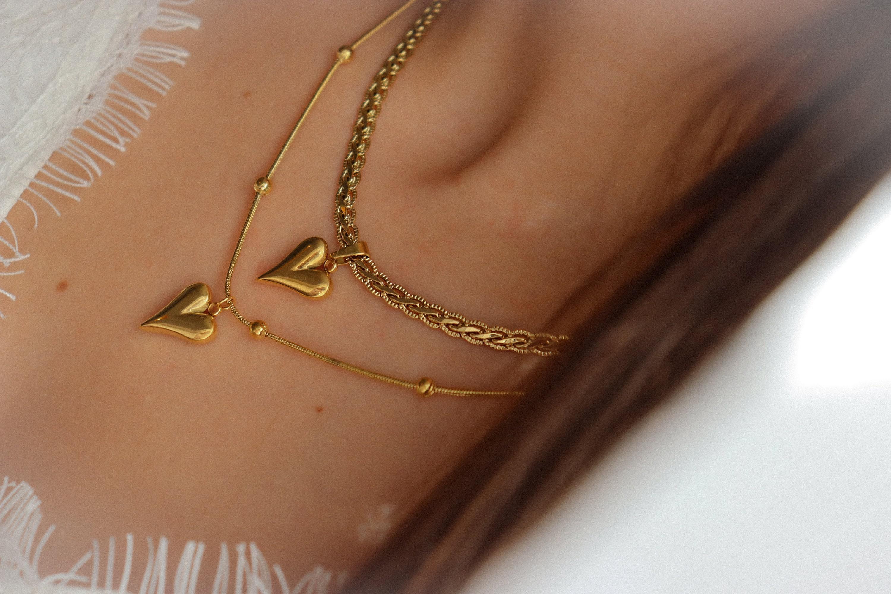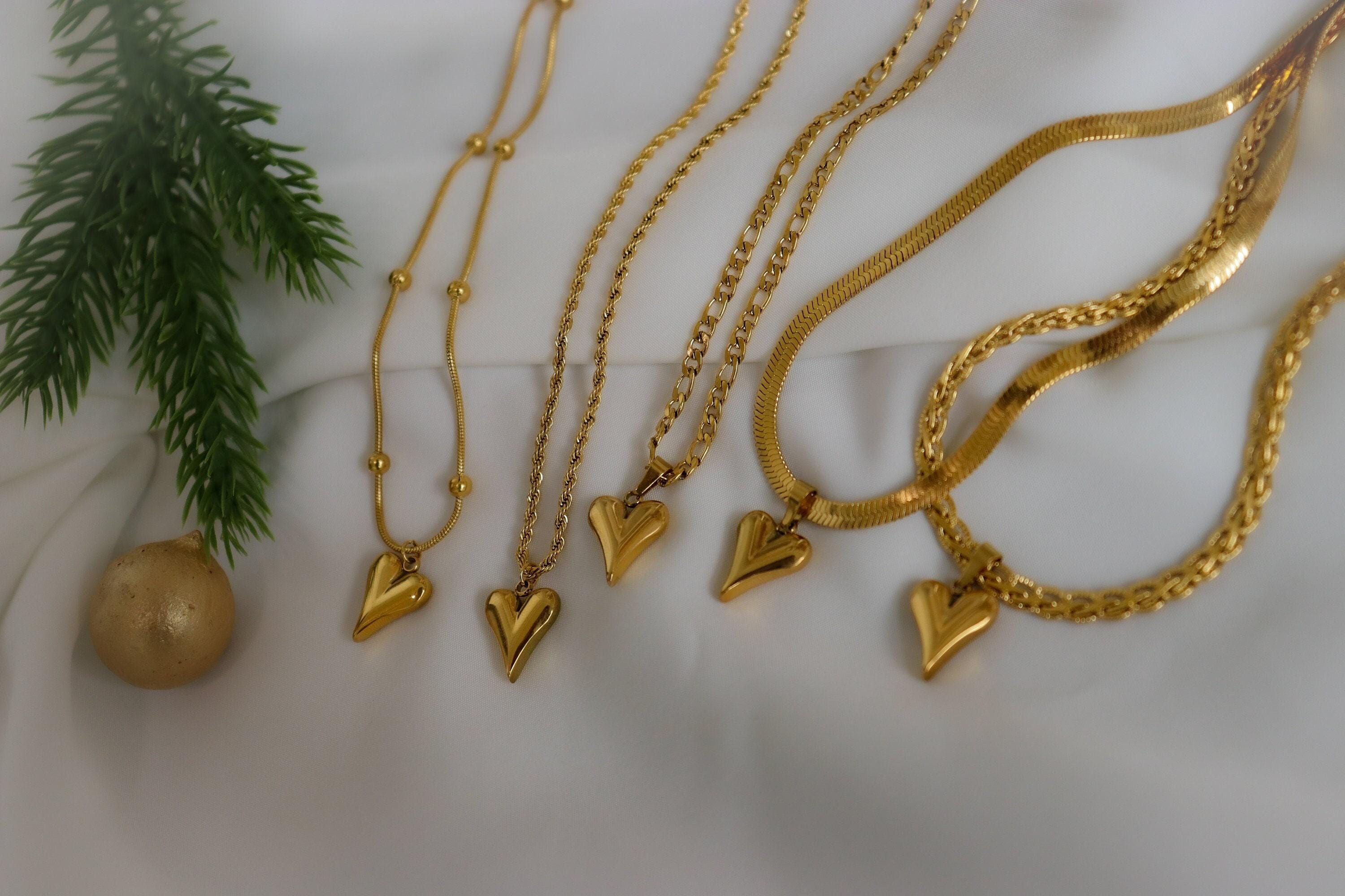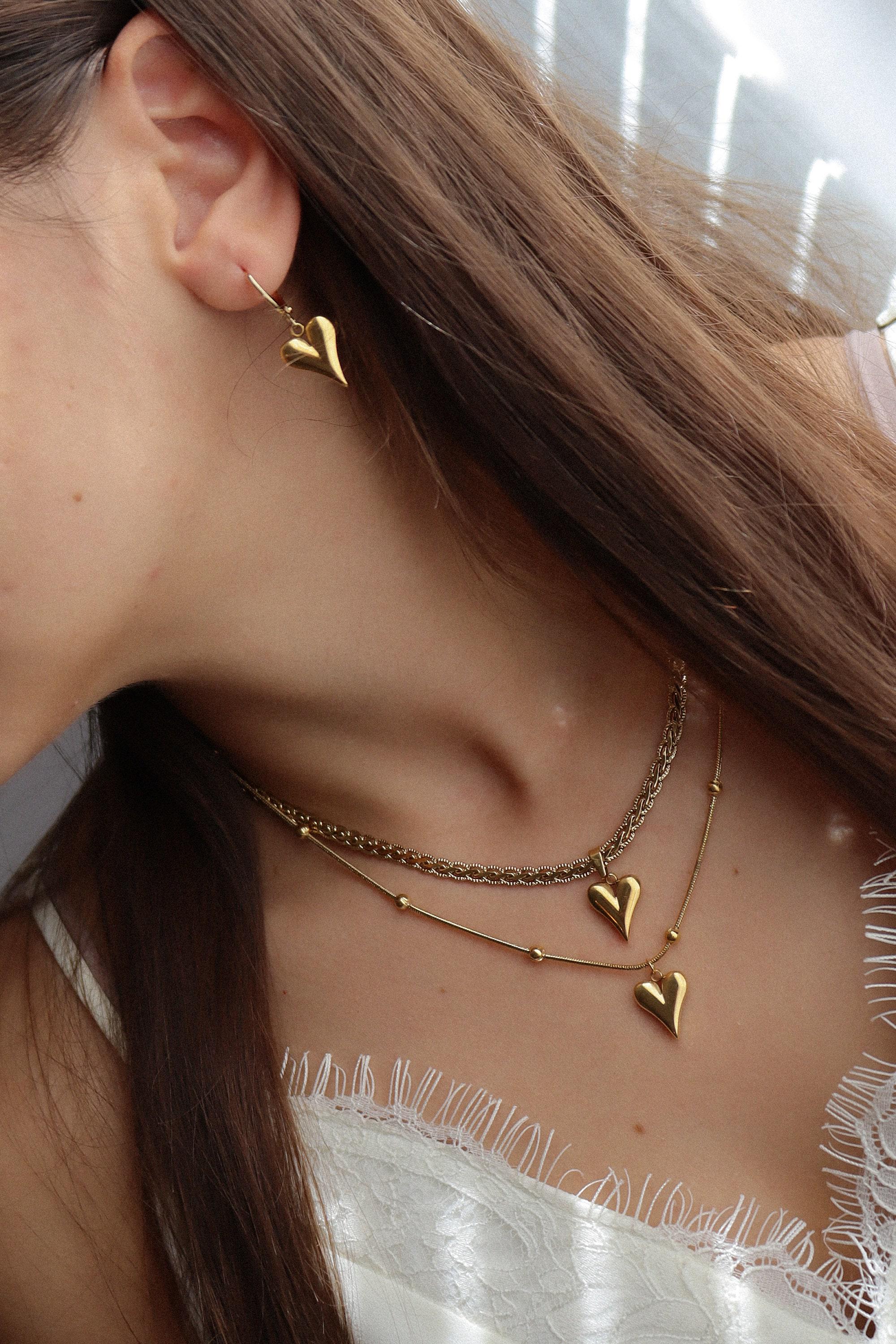 Gold FILLED Heart Necklace Heart Earrings Set Waterproof Solid Stainless Steel Jewelry Heart Shape Vintage Style Jewelry Gift Bridesmaid Best Gift