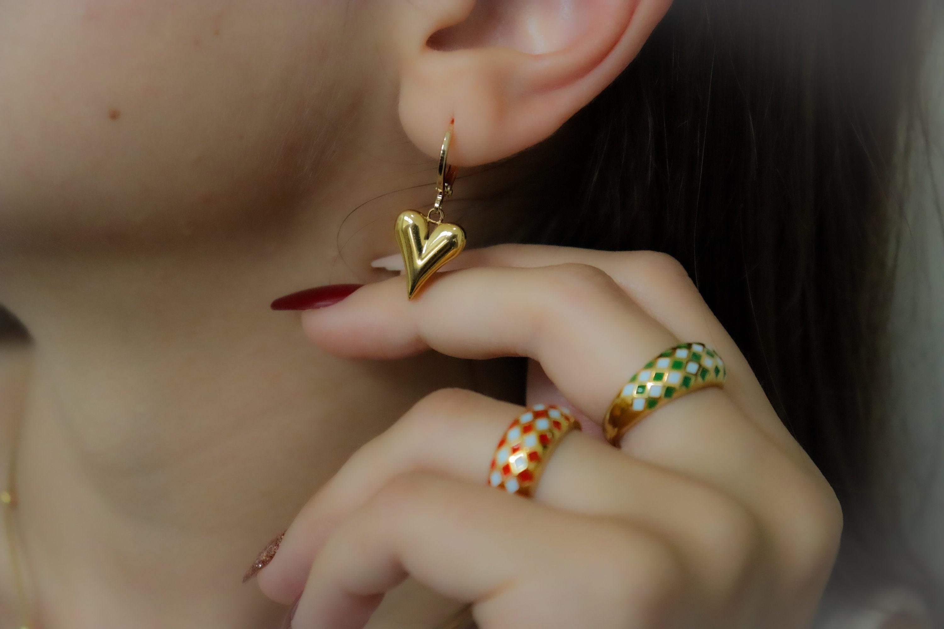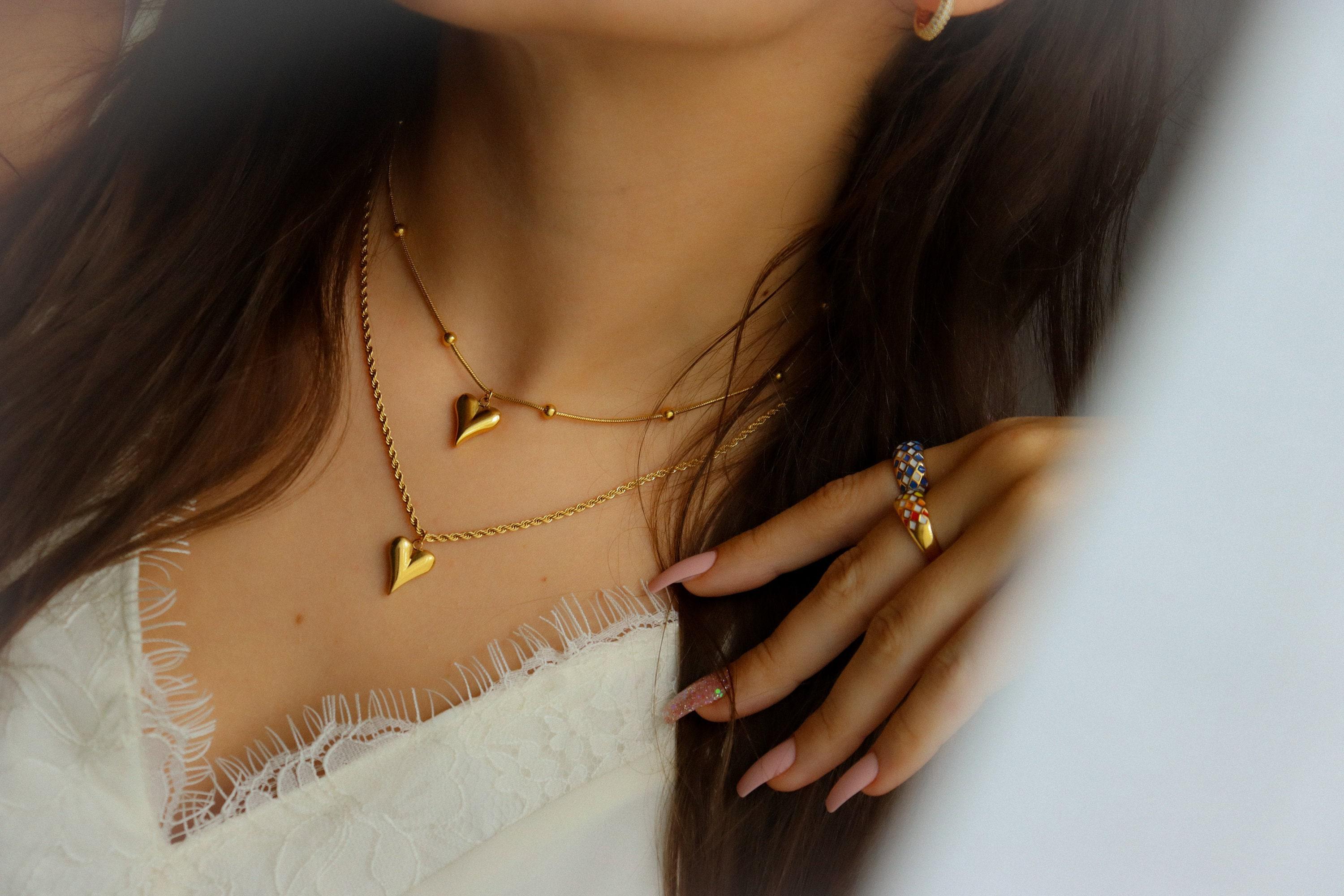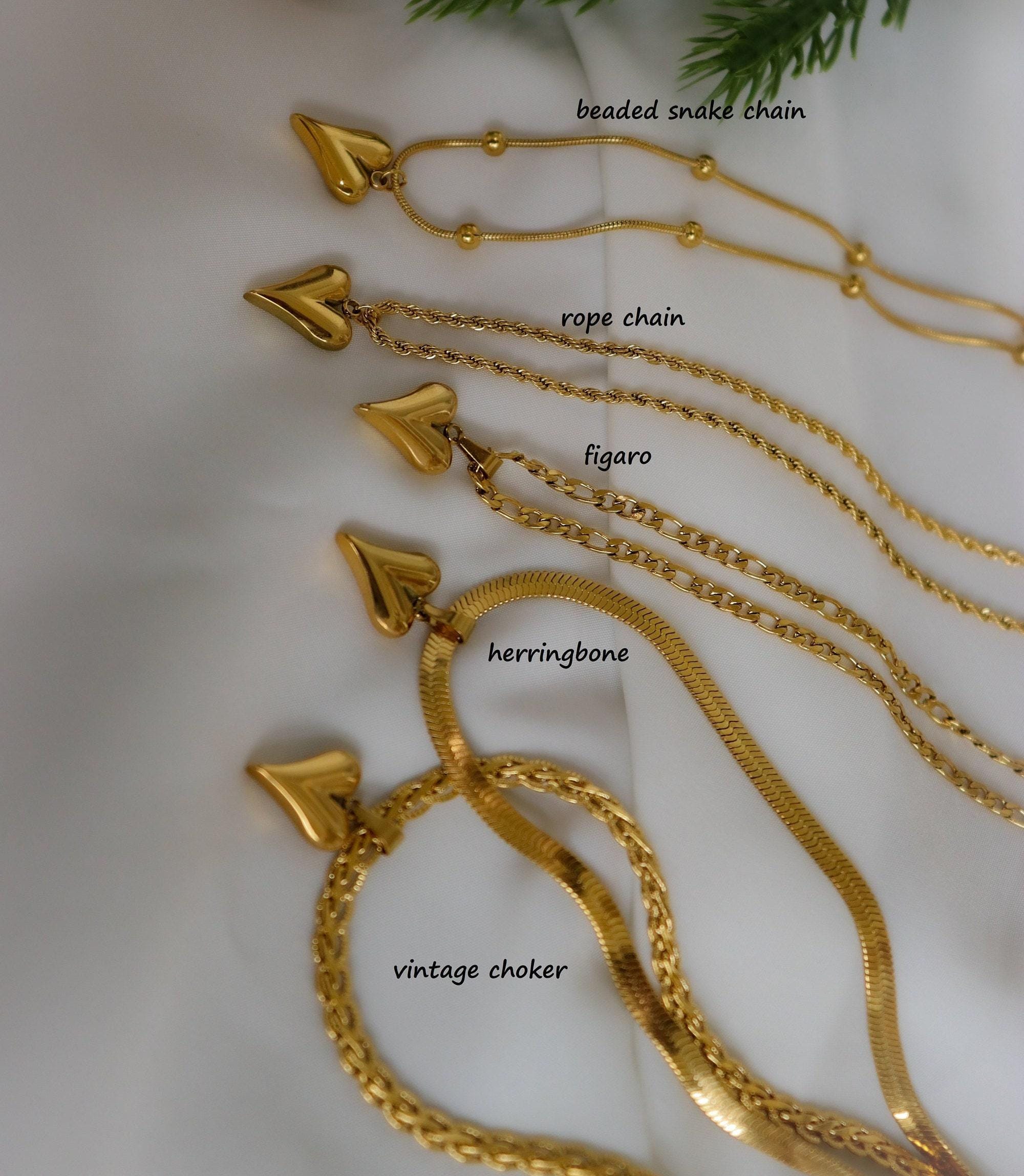 Gold FILLED Heart Necklace Heart Earrings Set Waterproof Solid Stainless Steel Jewelry Heart Shape Vintage Style Jewelry Gift Bridesmaid Best Gift