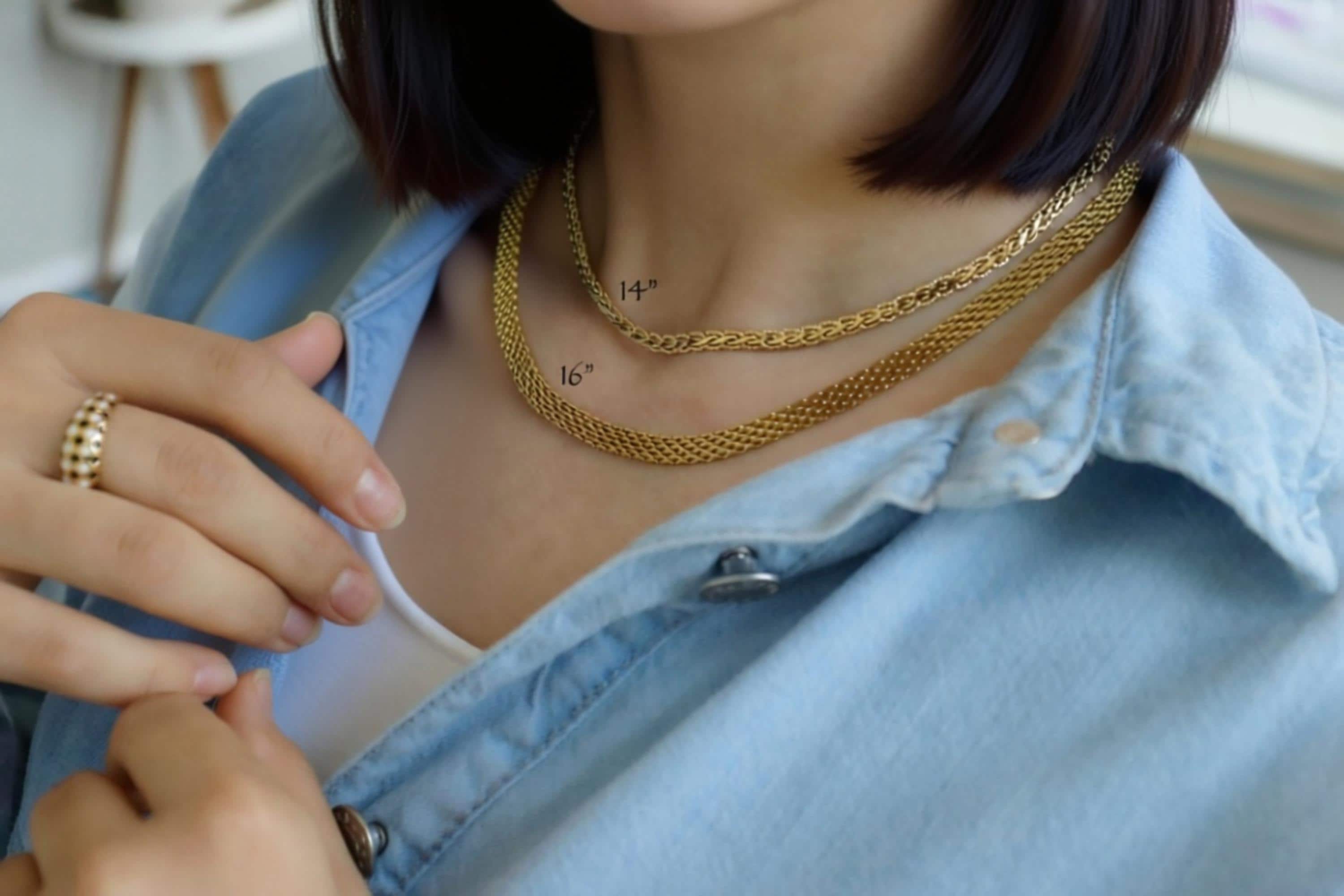 This necklace is beautiful and exactly what I was looking for! I love the style and that I could choose the exact length I wanted! Necklaces are always too long on my petite frame so I ordered the 14” choker and it’s sits perfectly where I envisioned and hoped it would! I even purchased the matching bracelet in 6” which I was also thrilled about because I never find anything in my size for my tiny wrist. Thank you! Can’t wait to wear my new jewelry!