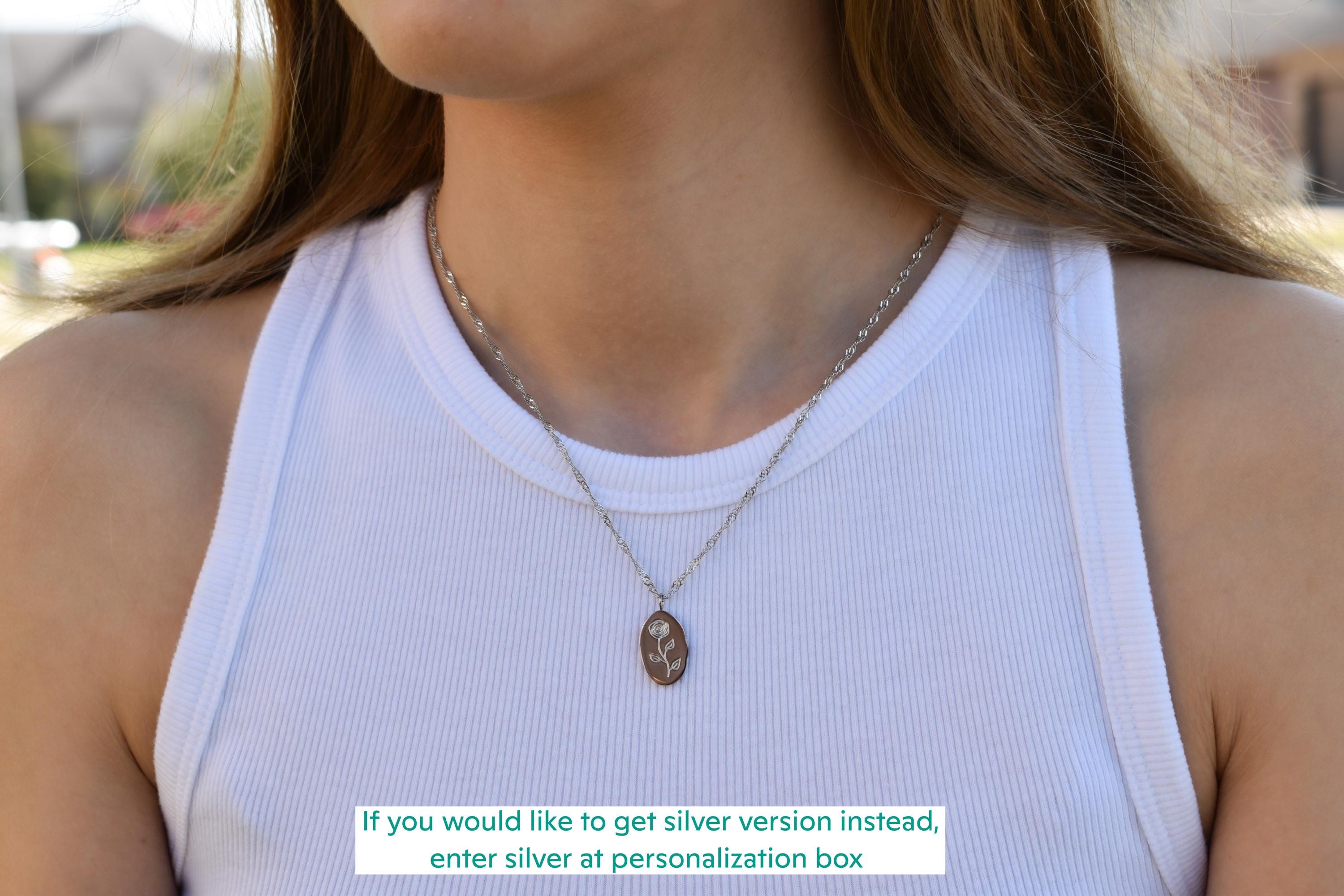 Each necklace features a delicate flower pendant that corresponds to the flower associated with your birth month.