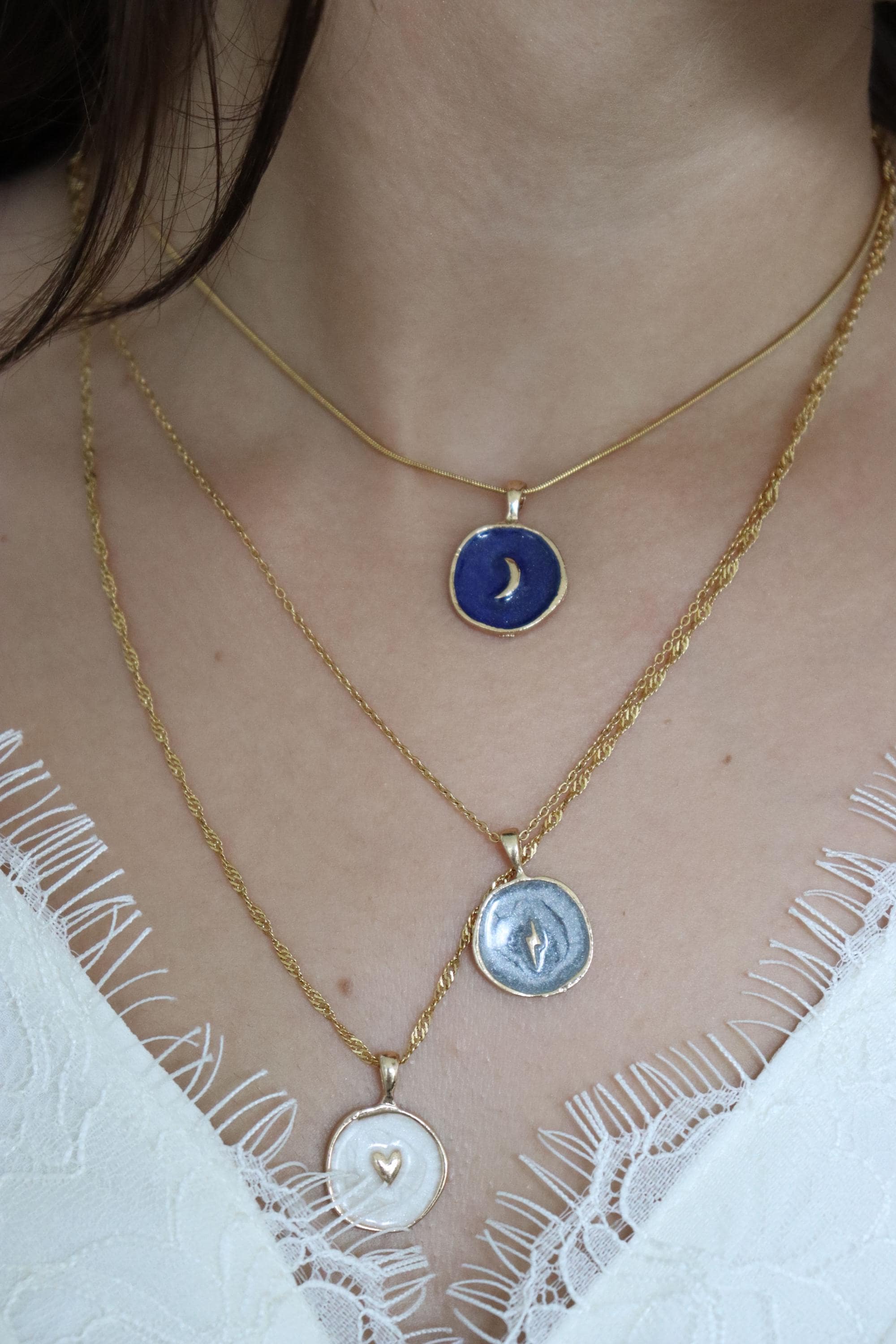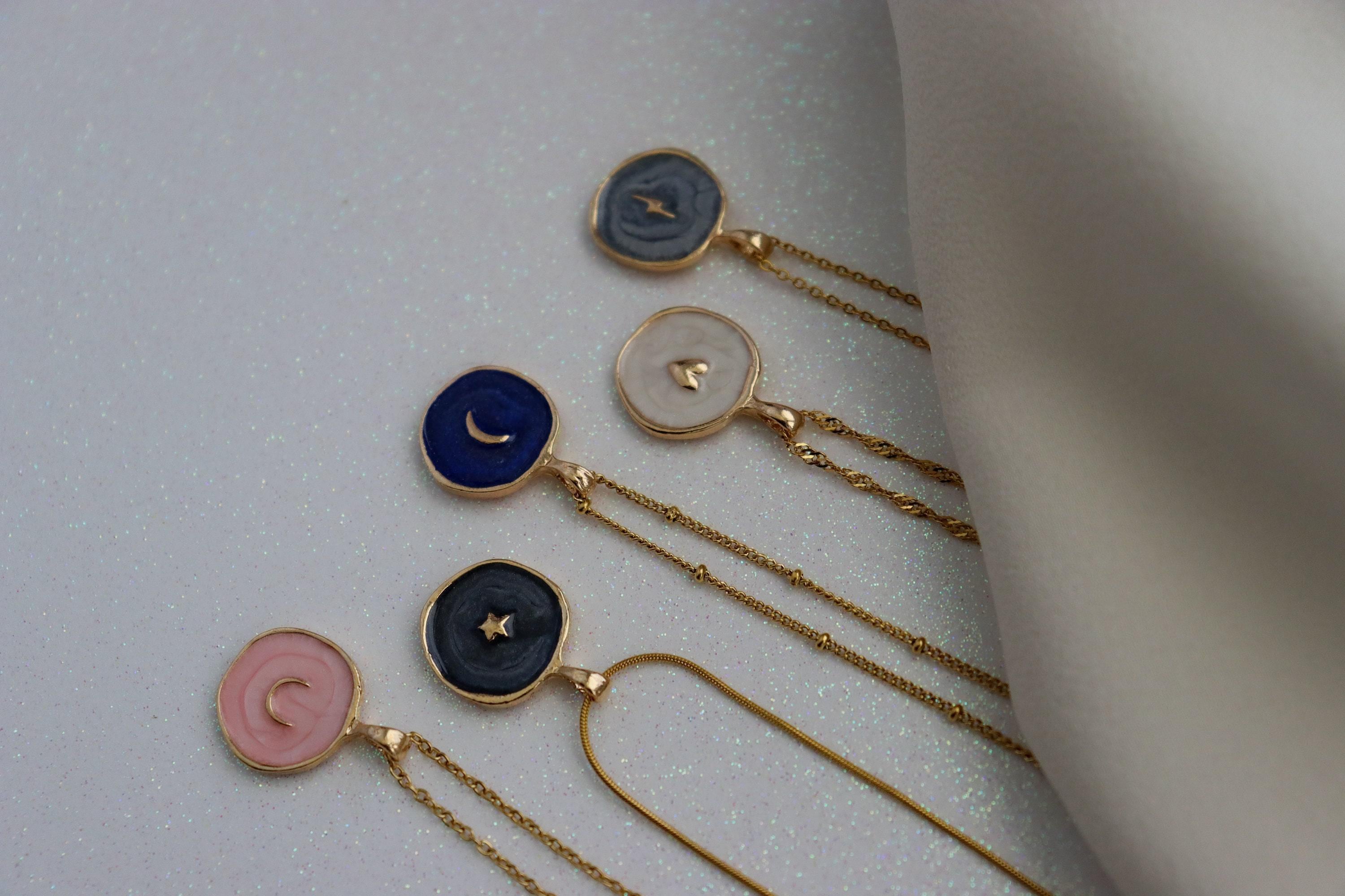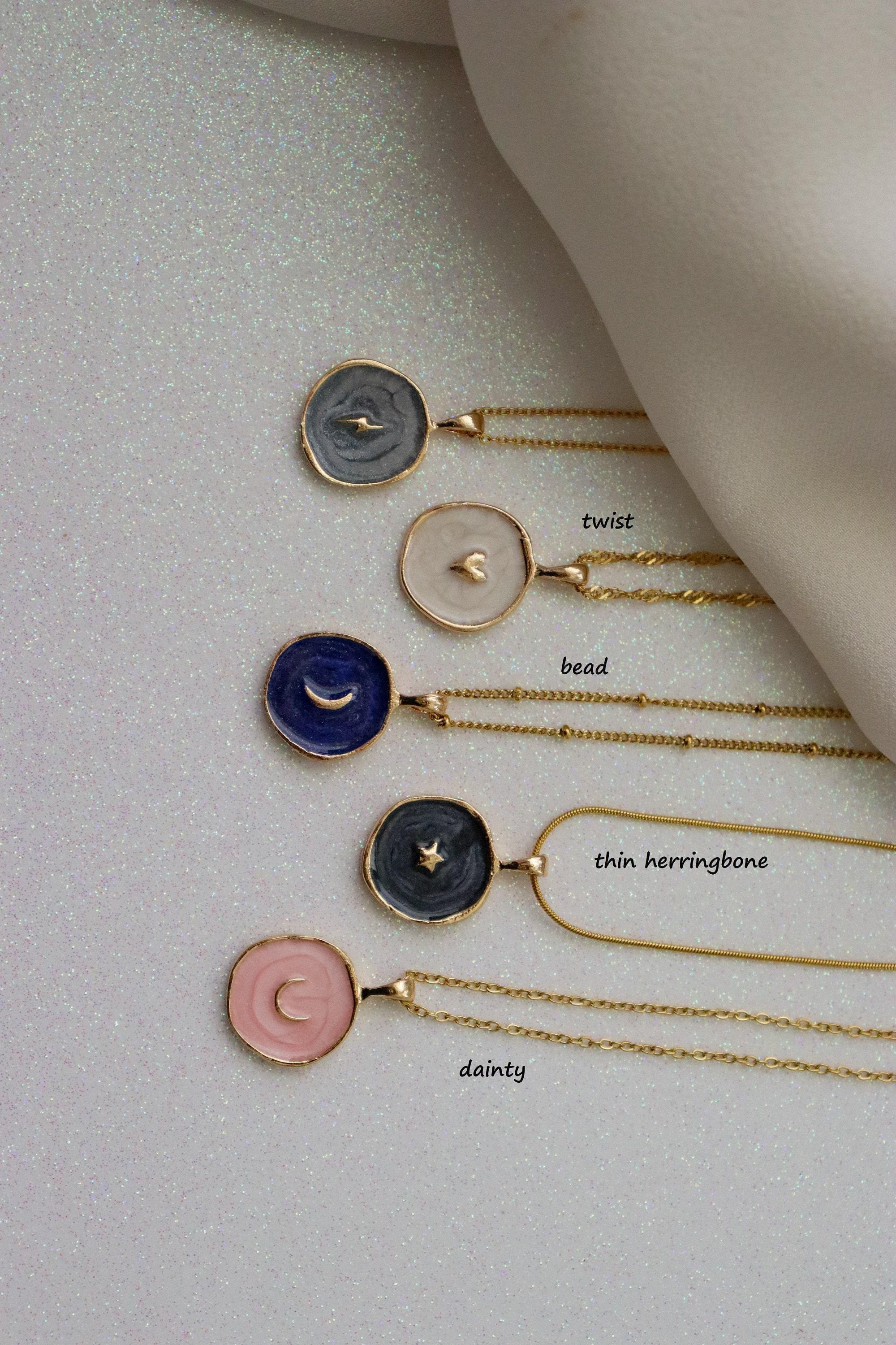18K Gold Color Coin Necklace Heart, Star, Moon Shape Round Pendant Gold Necklace Waterproof Chain Moon Star Necklace