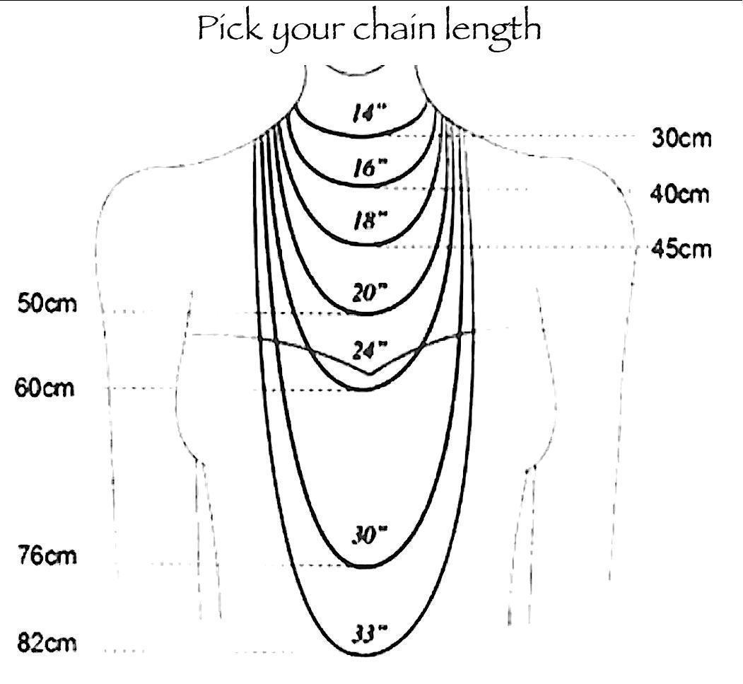 It's crucial to note that the chain lengths shown on our website are offered in inches and include jumper rings and clasps in consideration.