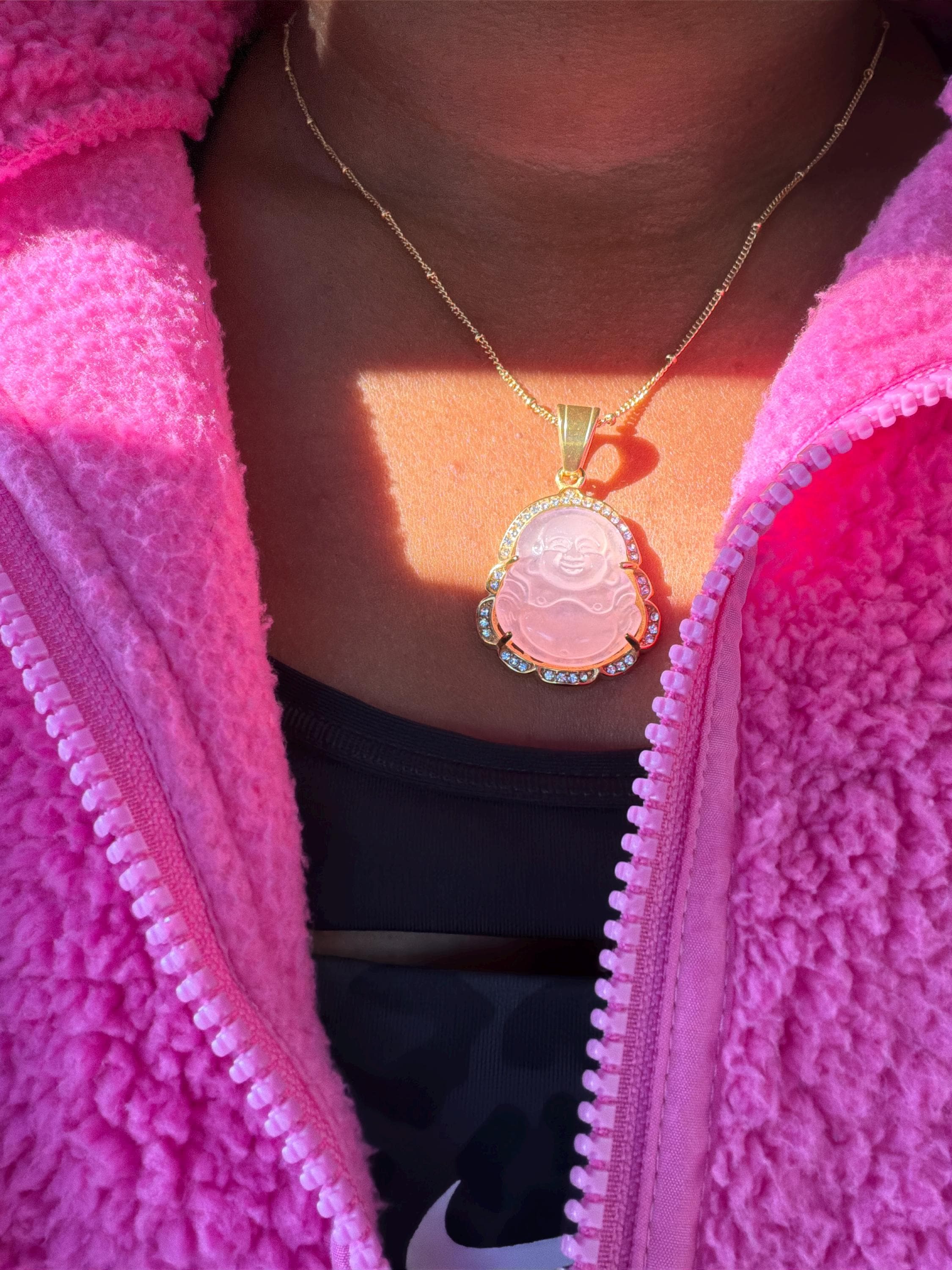 BUDDHA NECKLACE Gold Buddha Necklace, Jade Buddha Laughing Necklace Waterproof Emerald Topaz Black Ruby Pink Buddhism Religious Jewelry Christmas Gift