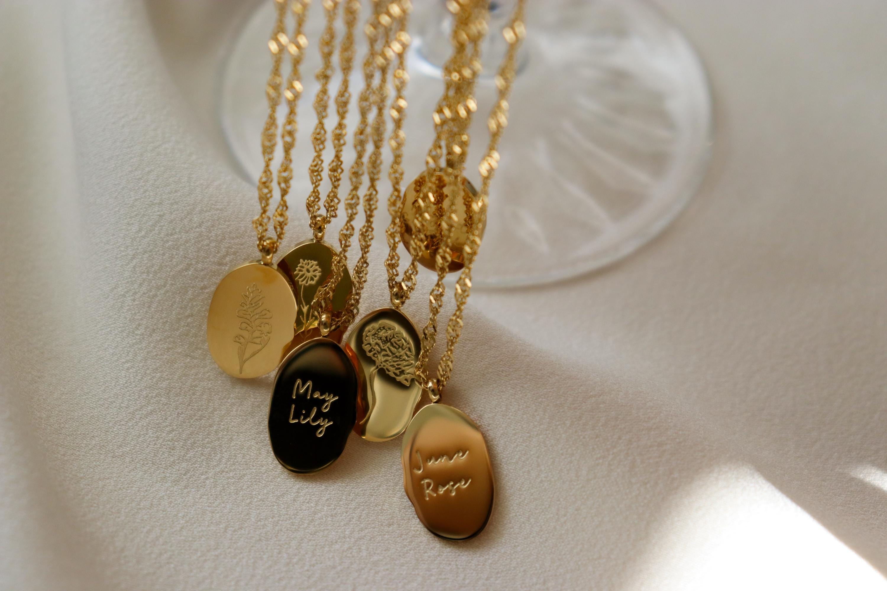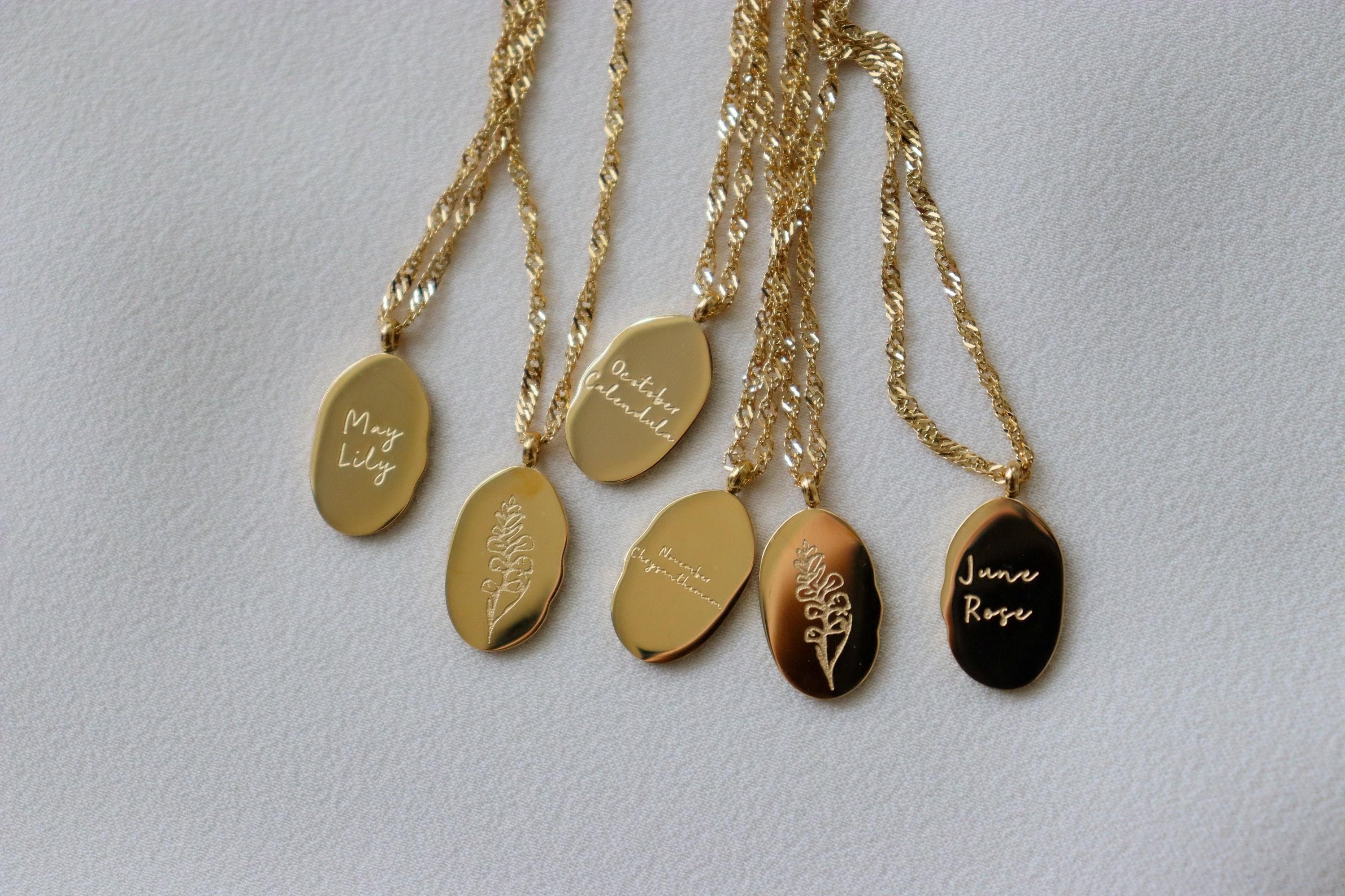 ❗️Month and birth flower names are already engraved on the back of the pendant. Your text will be laser engraved beneath the text. But if you don't want the name of the flower and month on the back, please enter it in the personalization box.