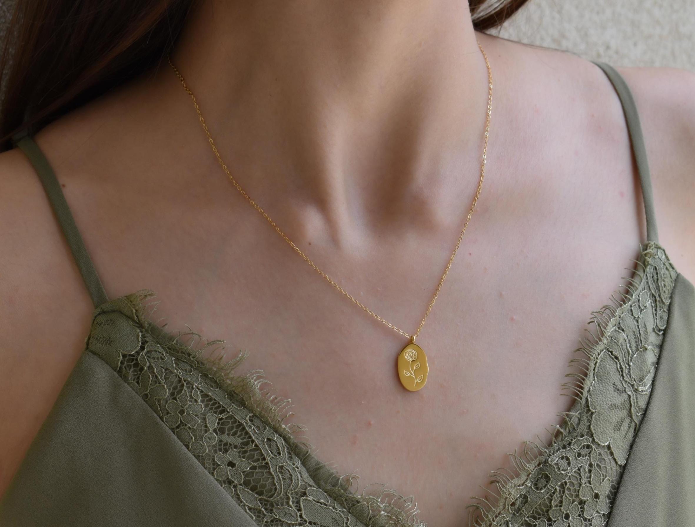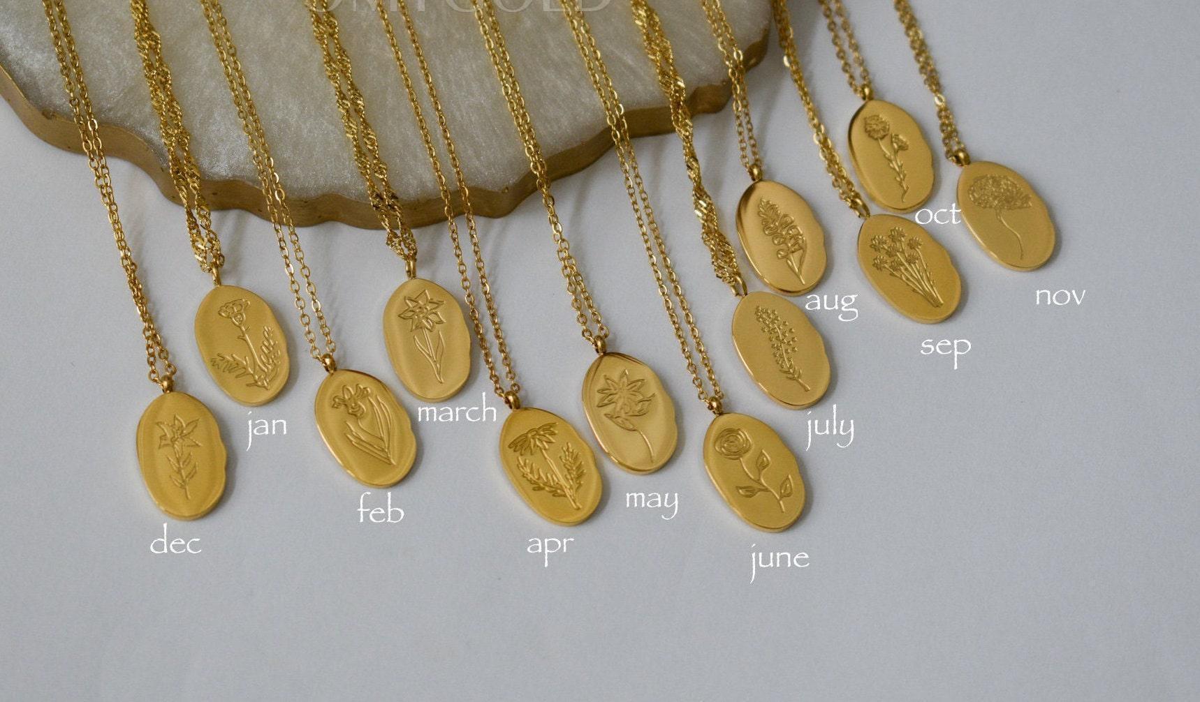 Each necklace features a delicate flower pendant that corresponds to the flower associated with your birth month.