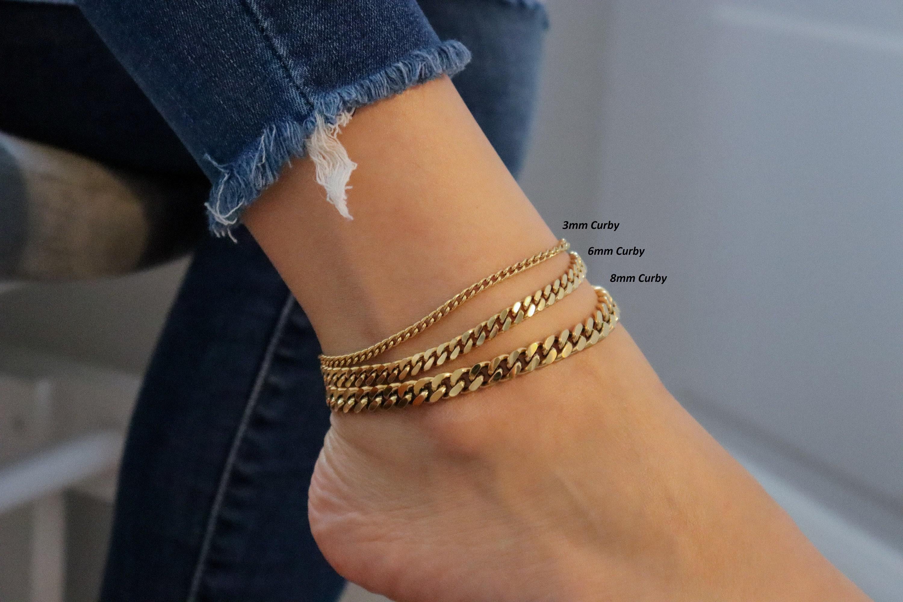GOLD CHAIN ANKLET Gold Filled Anklet ・ Women Anklet Men Anklet Waterproof Non Tarnish Foot Girl Jewelry Layered Chain Anklet Gold Beaded Anklet Christmas Gift