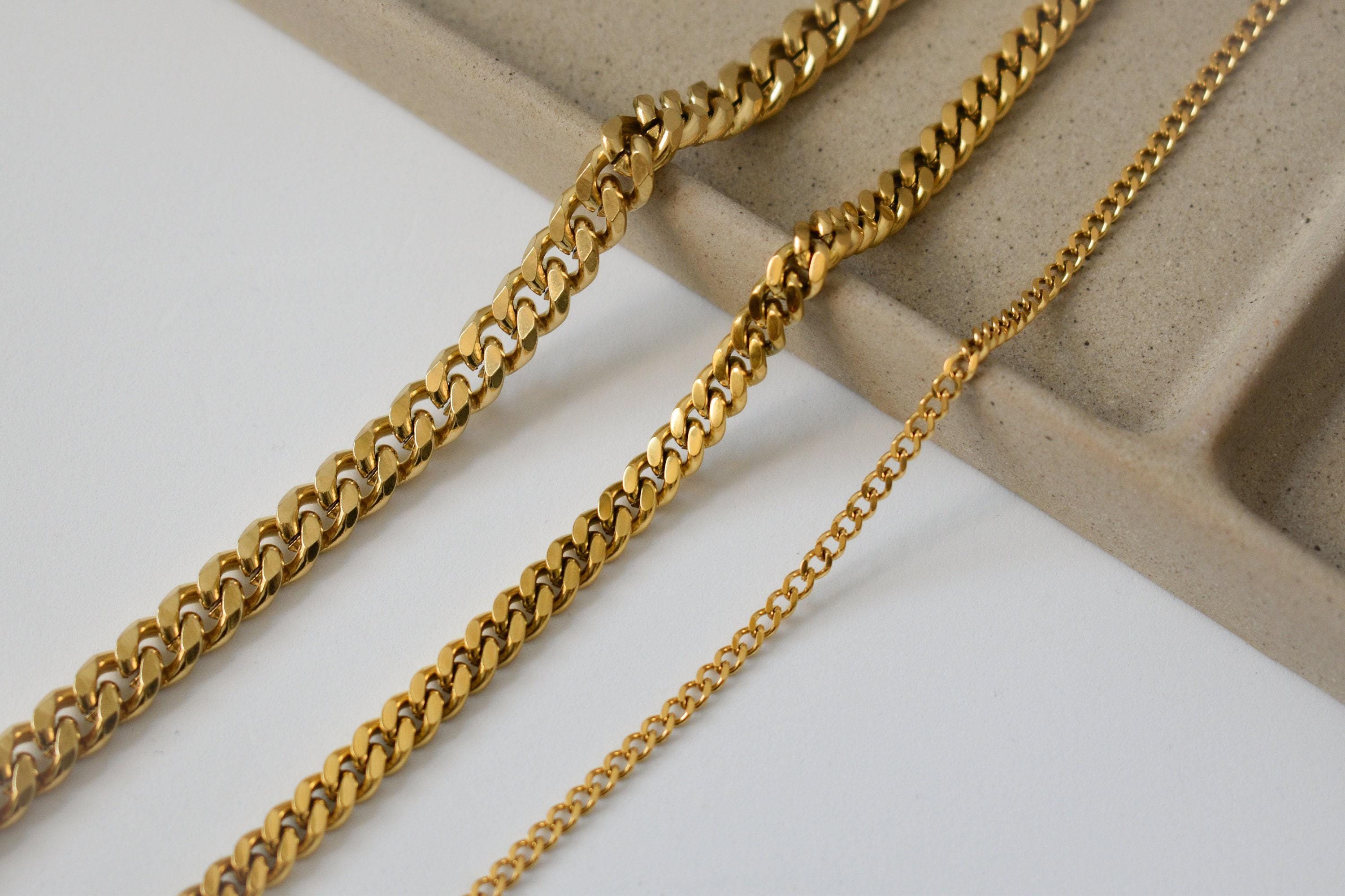 The smaller chain broke after a couple of days of wearing, after getting caught on clothing. but switched the bigger chain to my arm and it hasn't tarnished at all after weeks of constant wearing! great quality, really completes my stack. definitely buy the thicker versions if you wear a lot of fabric and dont take off your jewelry super often.