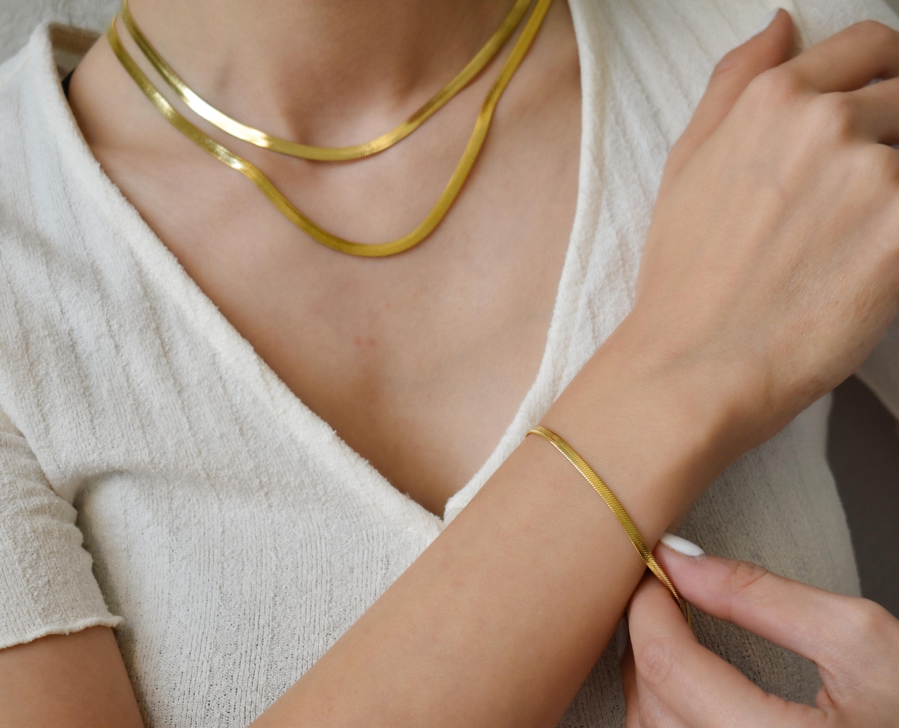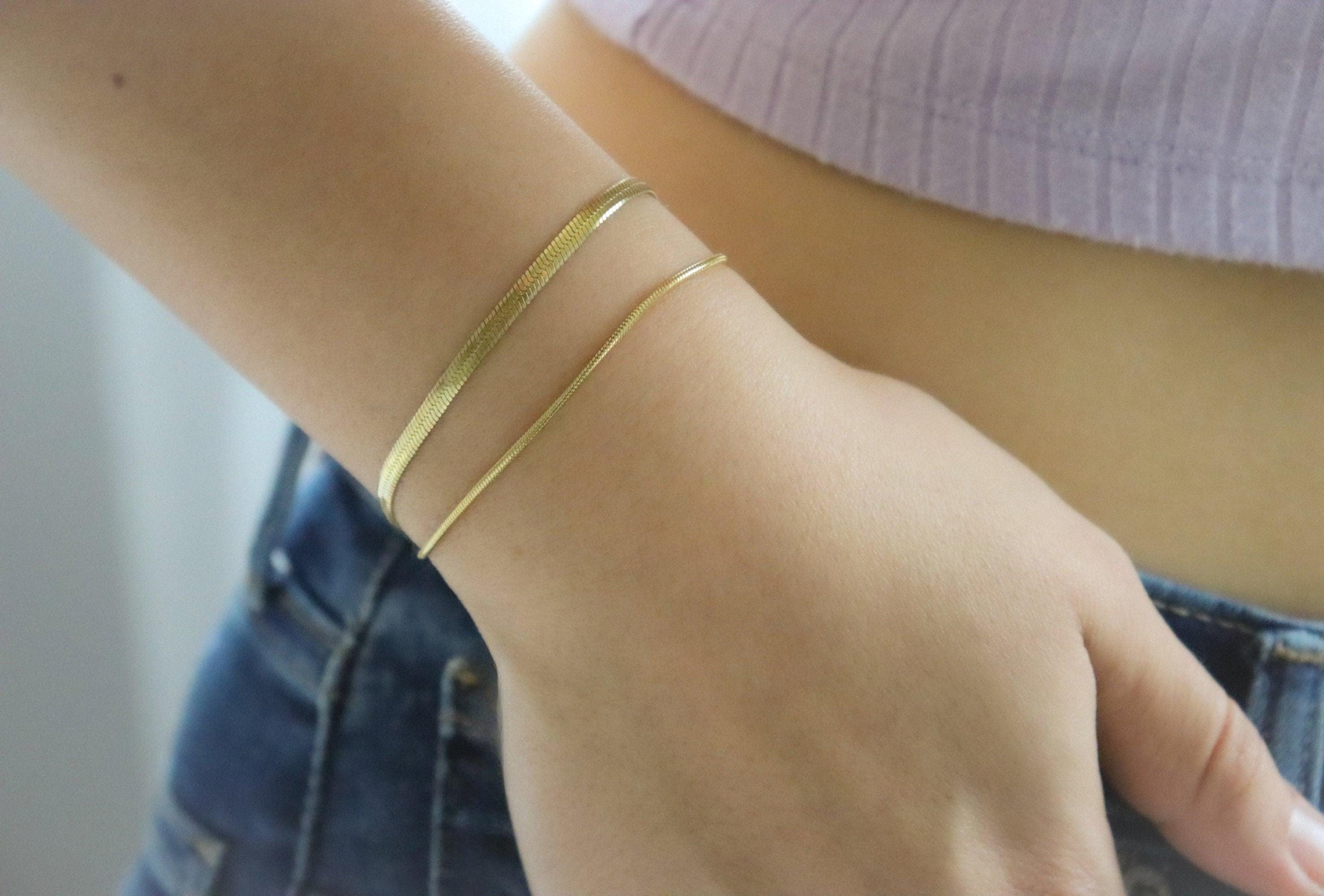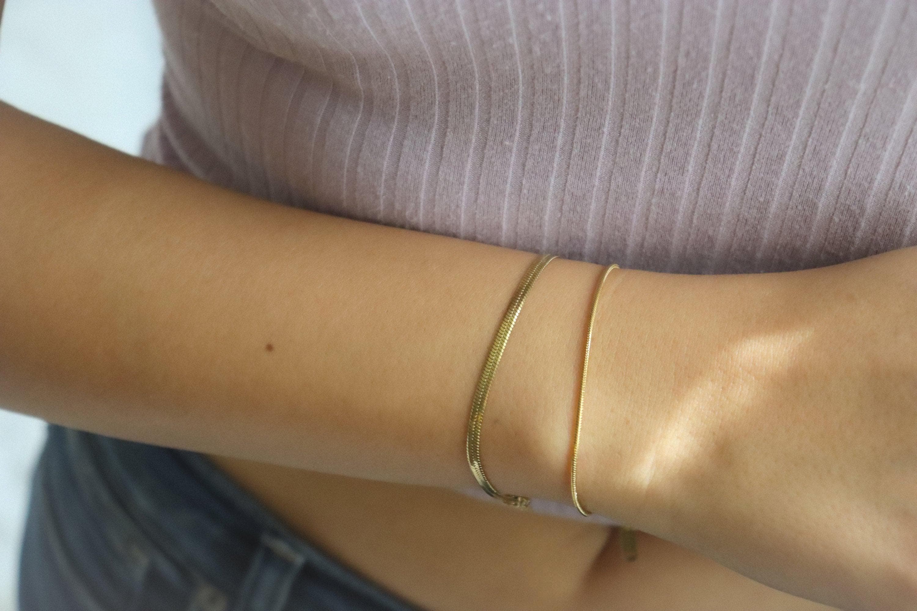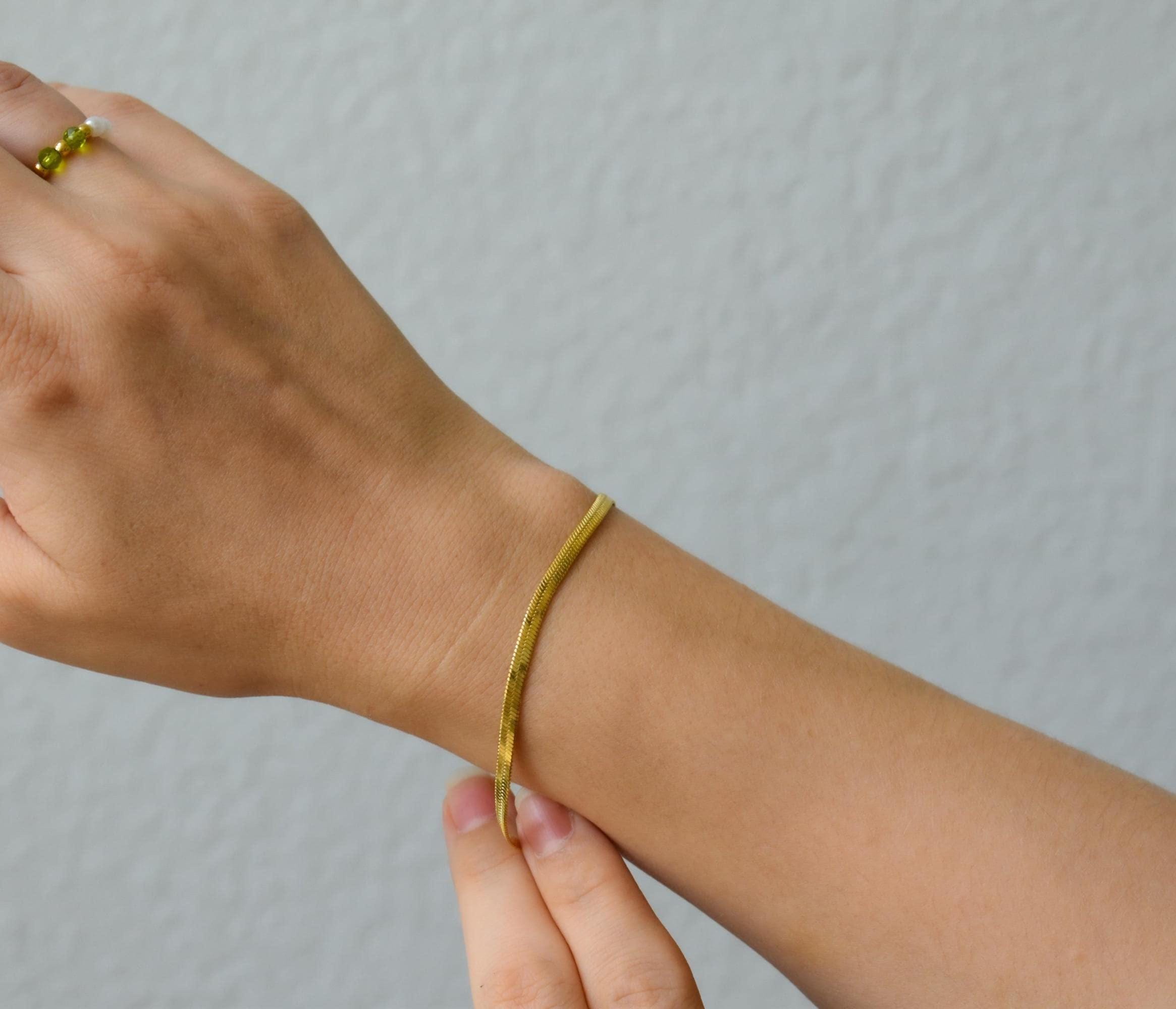 GOLD FILLED BRACELET Paperlink Gold Chain Bracelet Bead Handmade Bracelet Snake Chain Waterproof Jewelry Gift✨