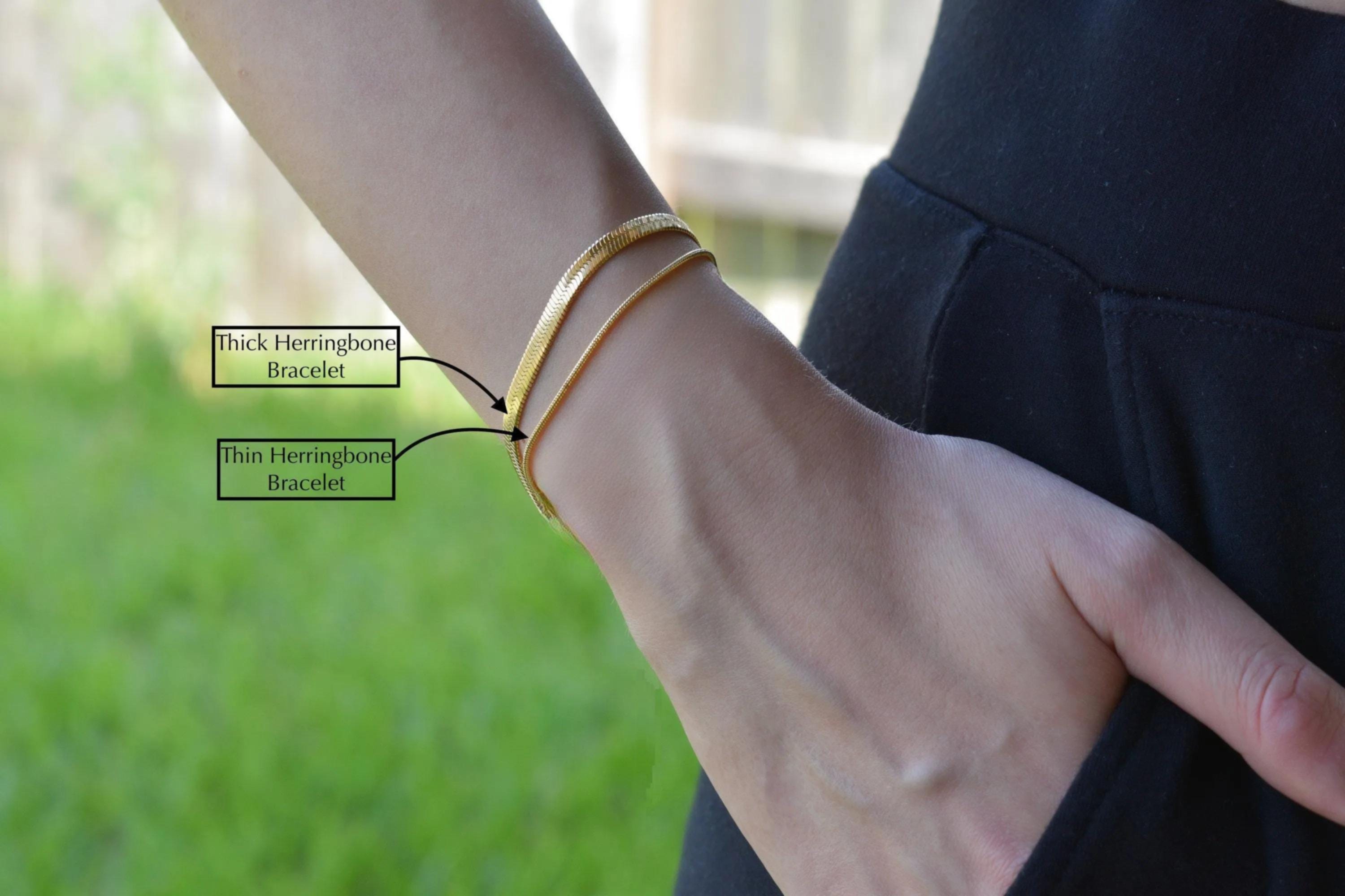 1️⃣ Please pick the chain style from the first drop down menu. We have thin herringbone (1mm thick) and thick herringbone (4mm thick) chain styles.