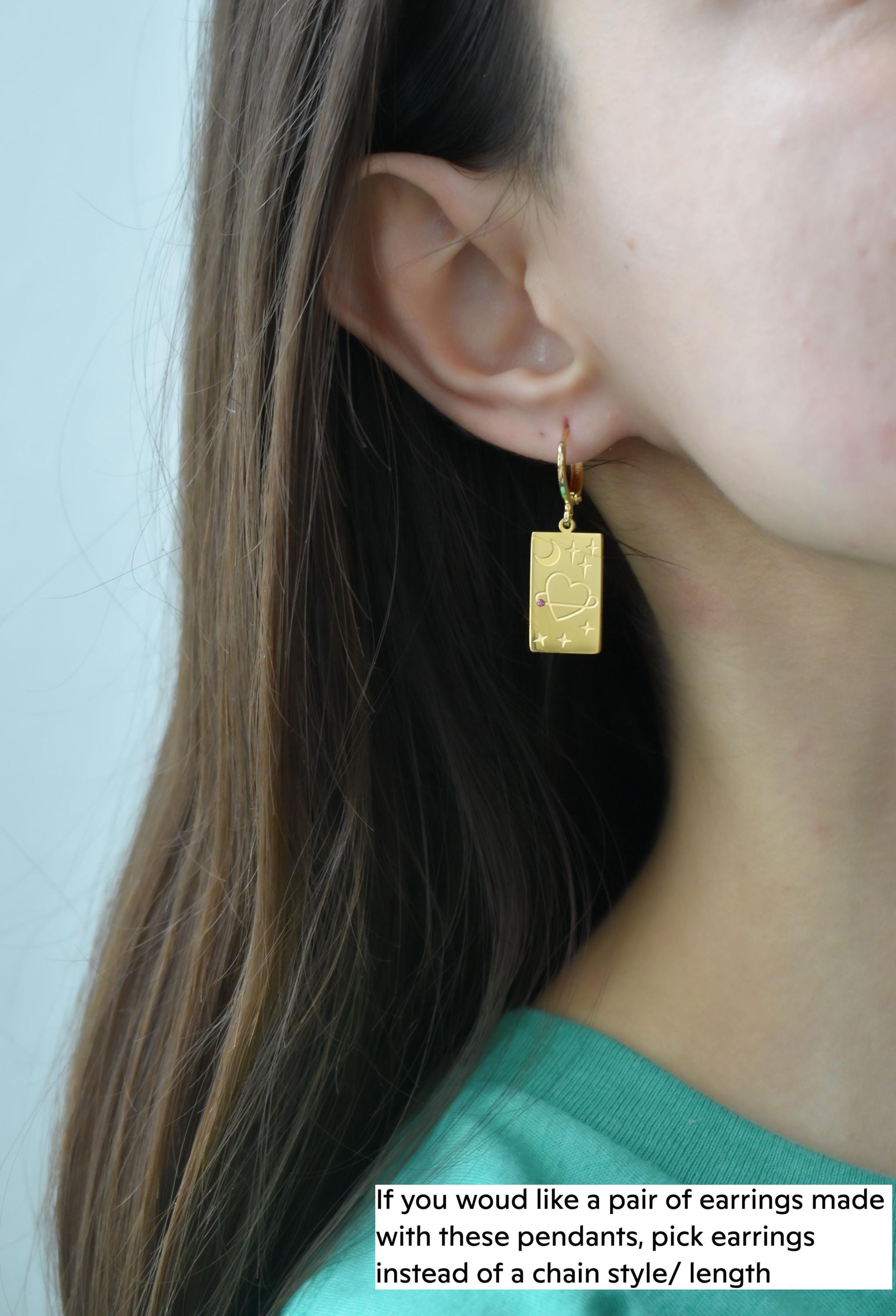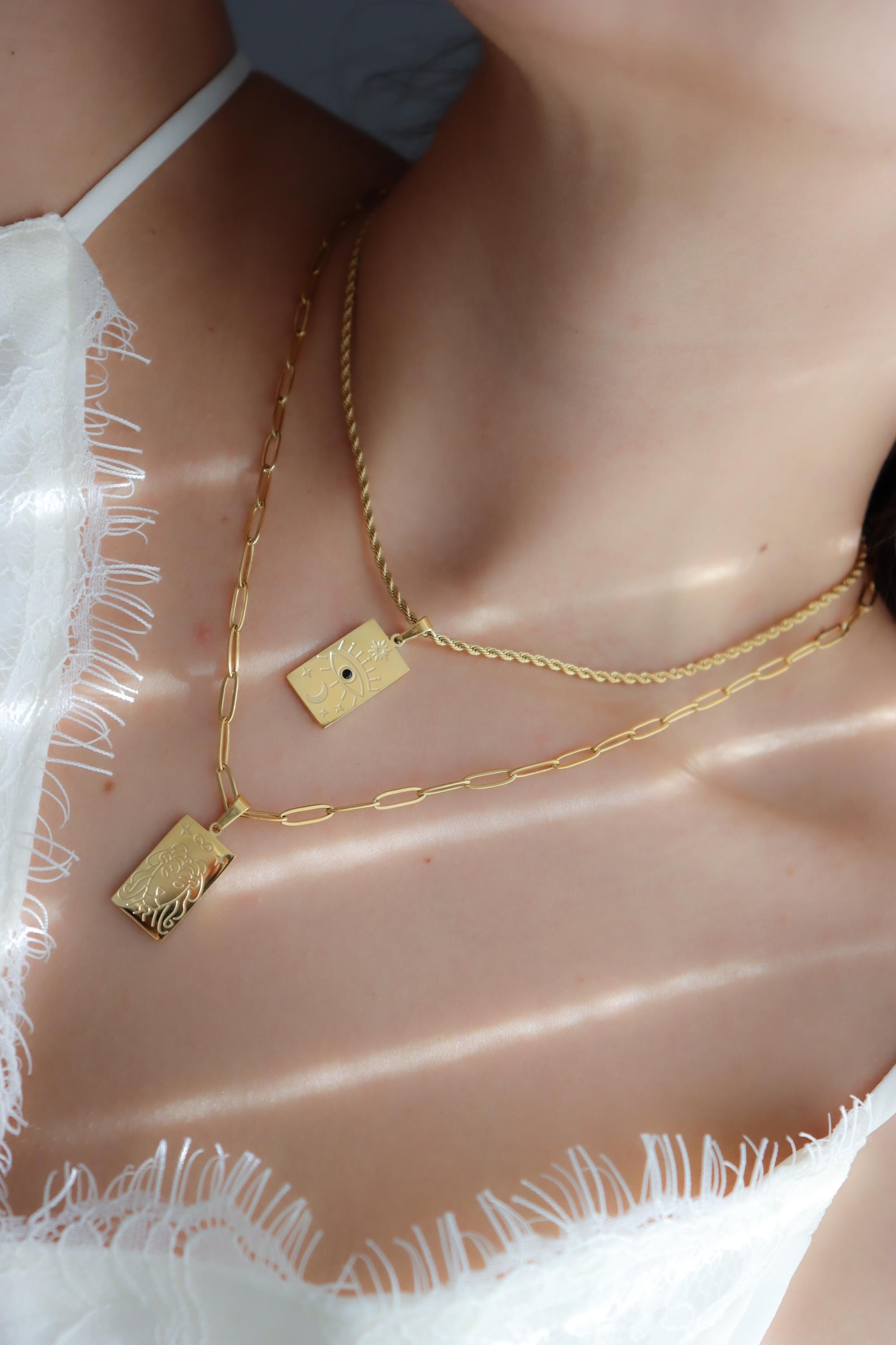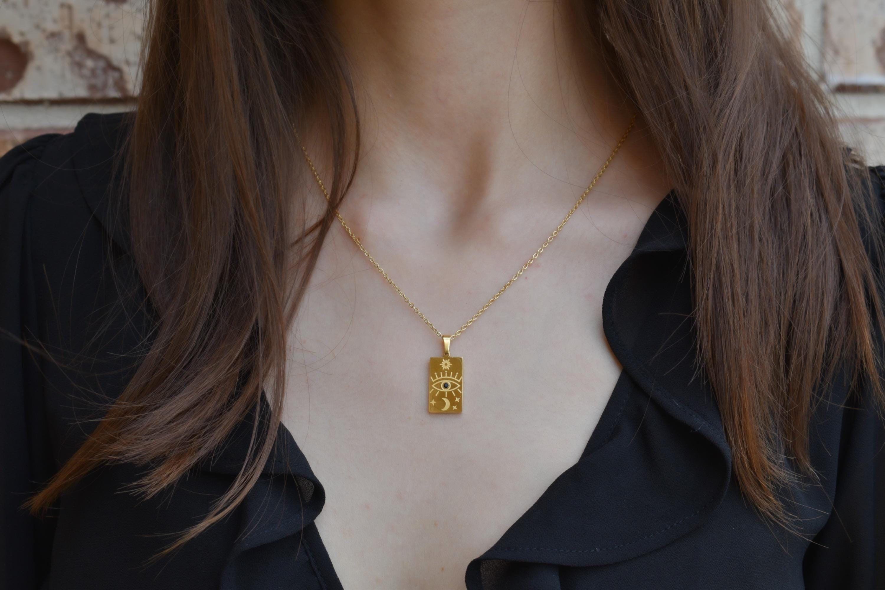 Gold Tarot Square Pendant Necklace Aquarius Heart Sun Evil Eye Leo Zodiac Sign Tarot Card Deck Necklace Waterproof Jewelry Minimalist Gift