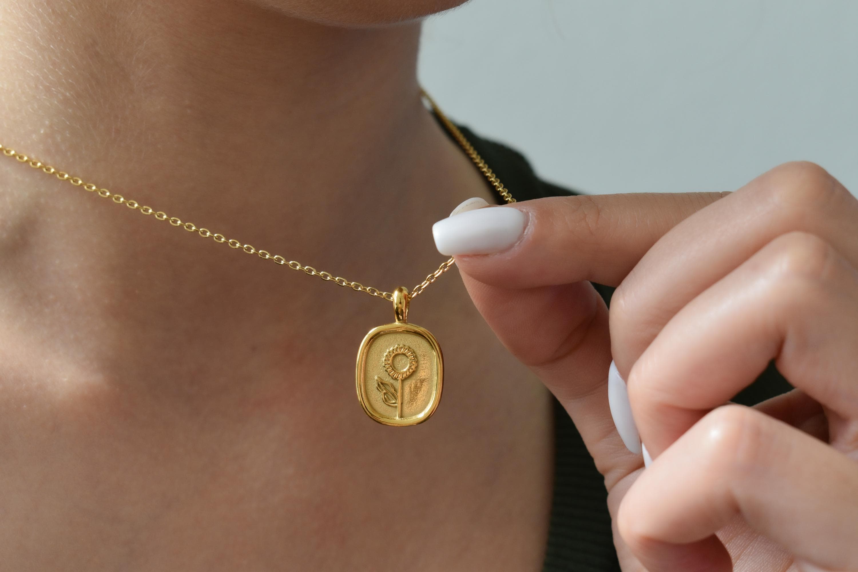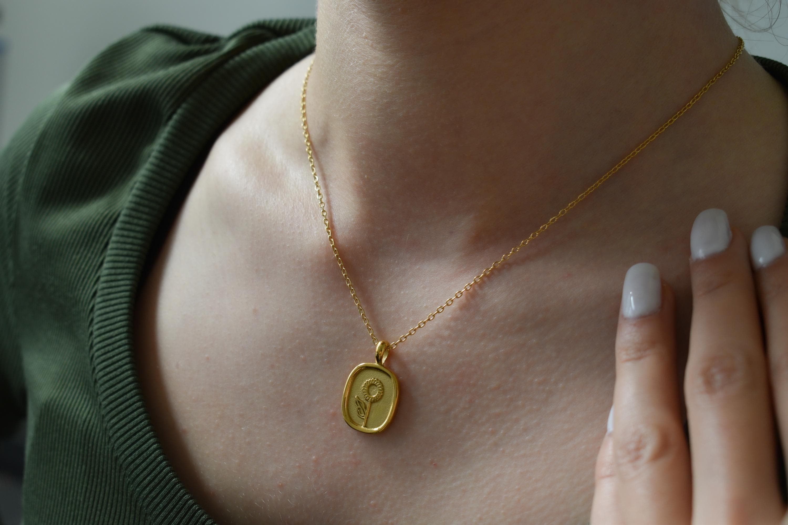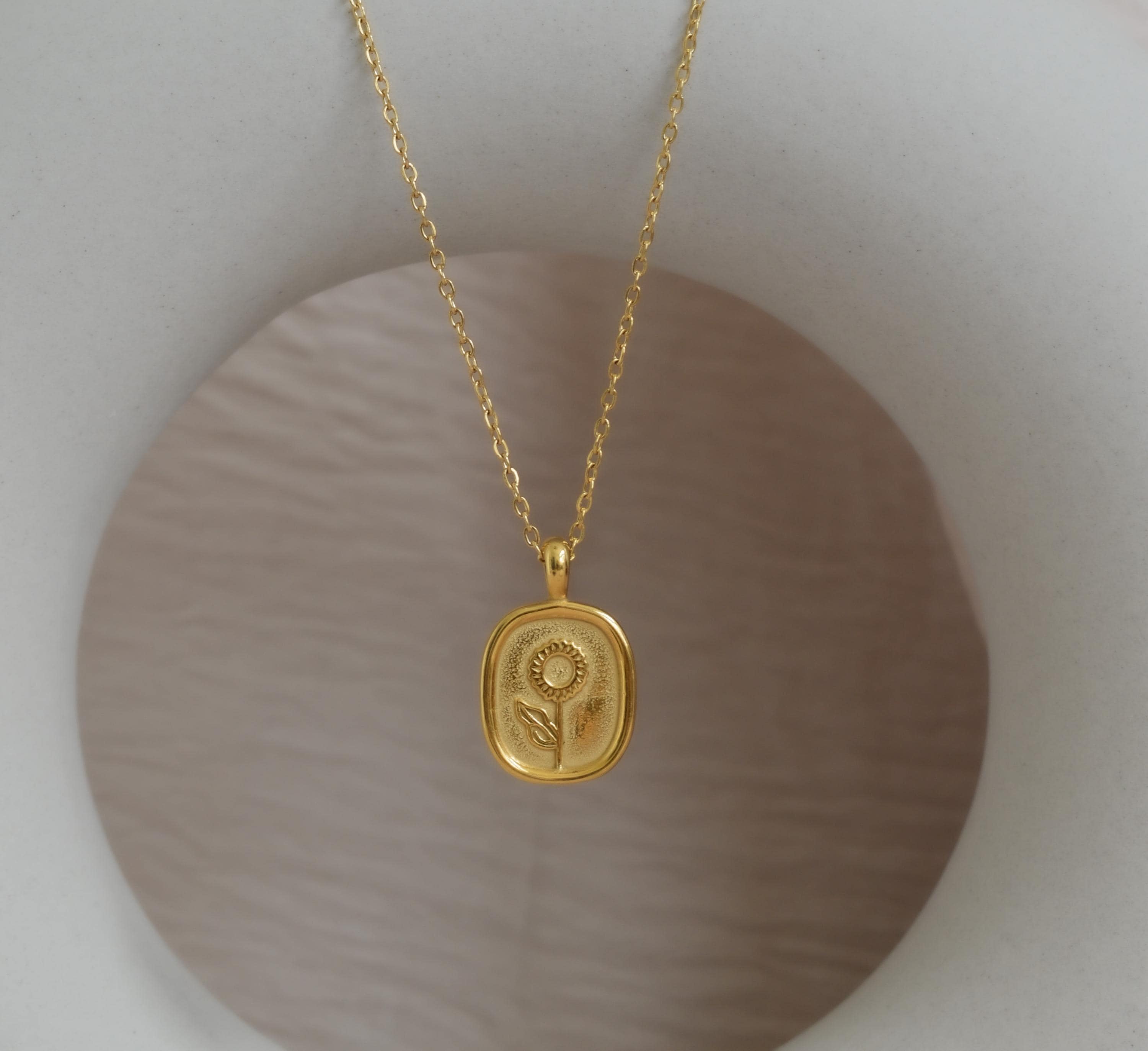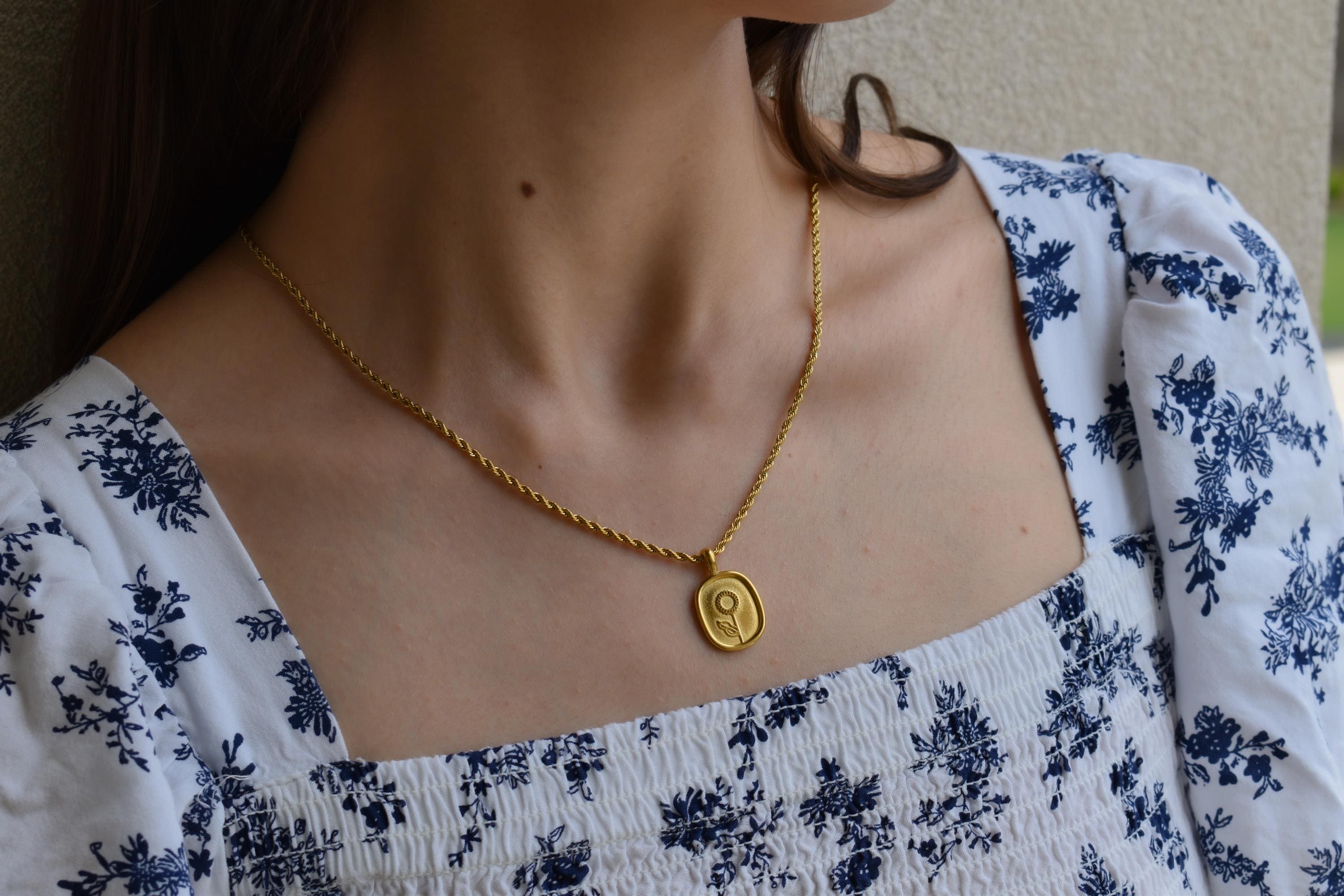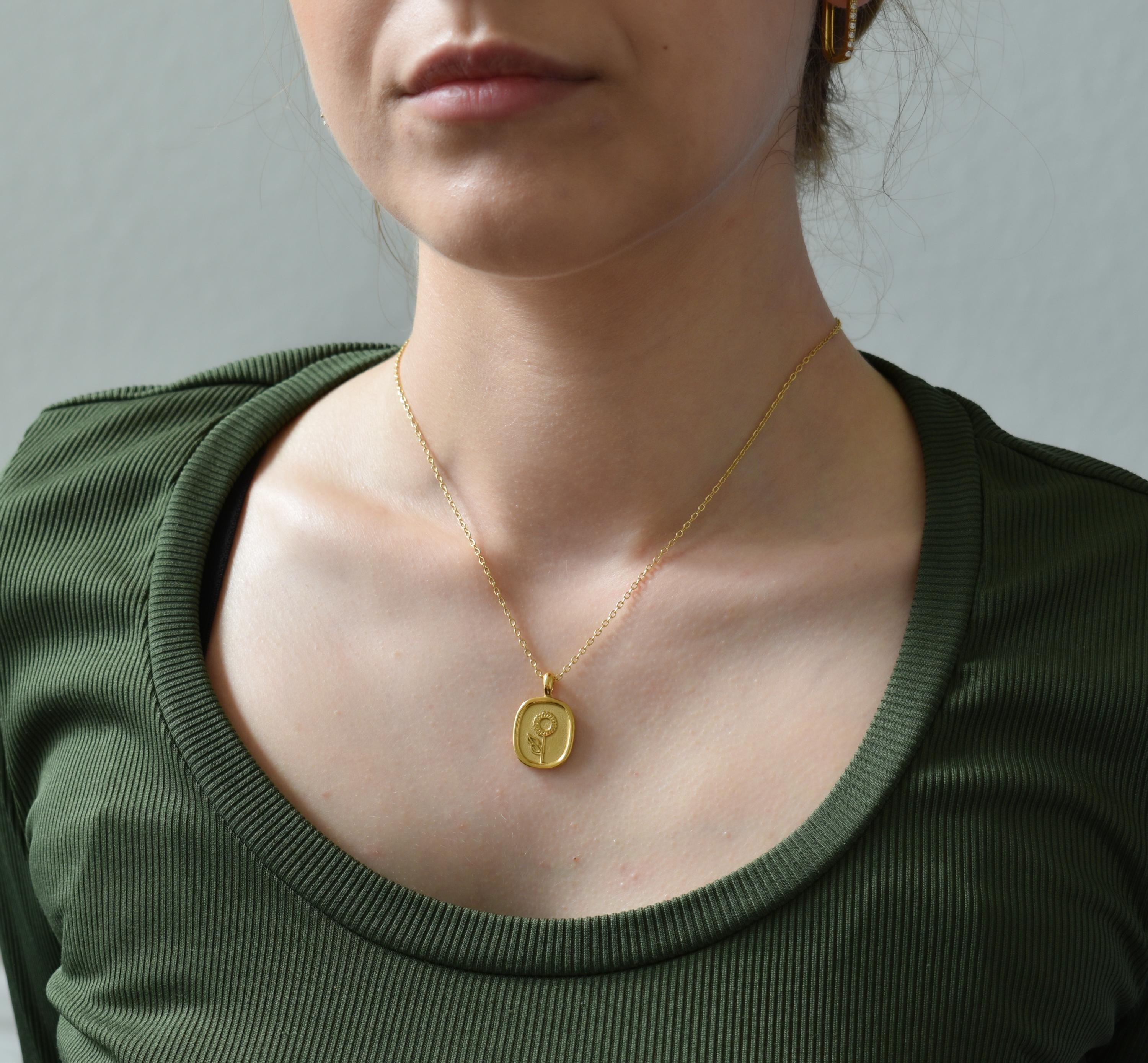🔸You will receive a necklace with Sun flower etched oval coin charm.