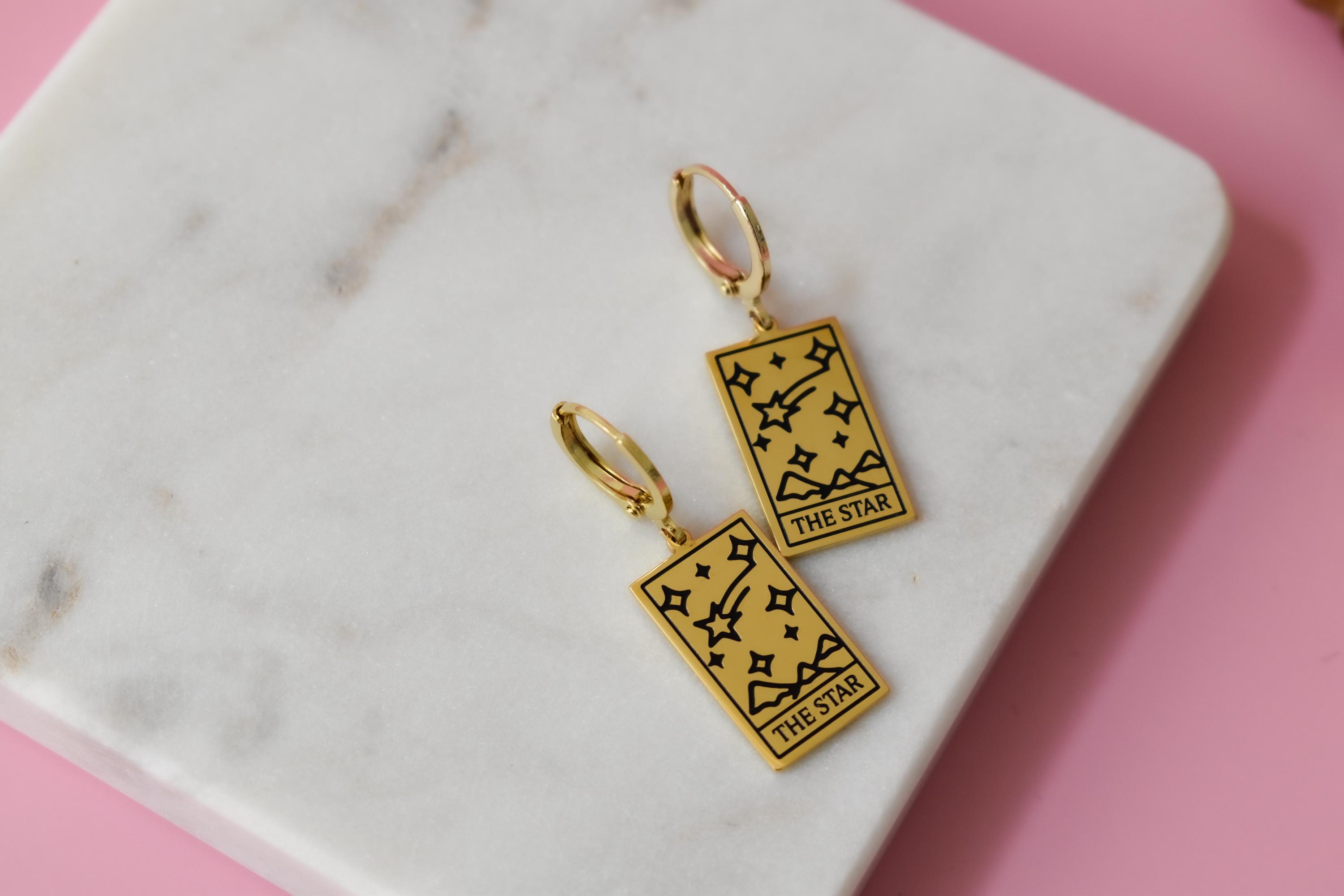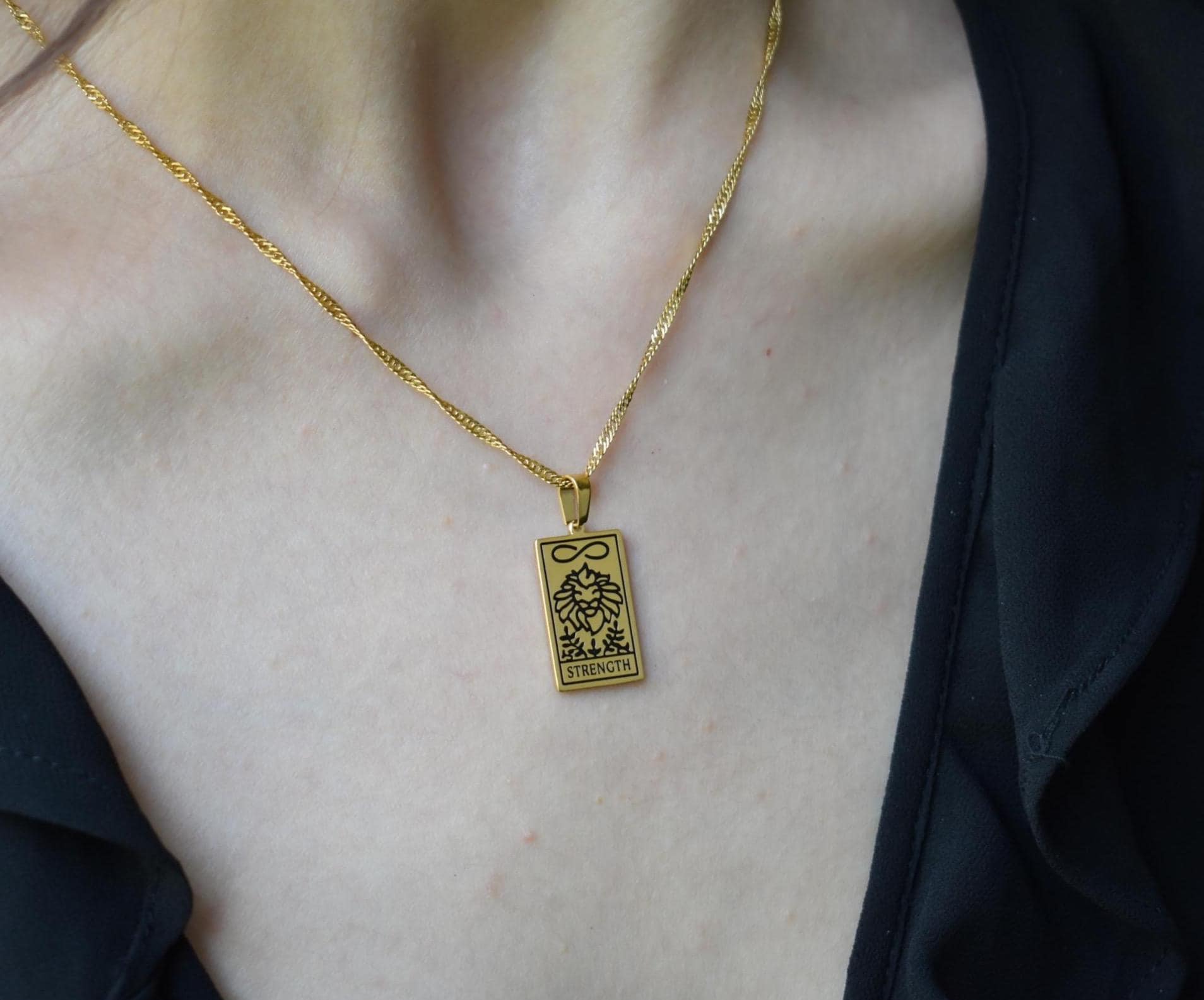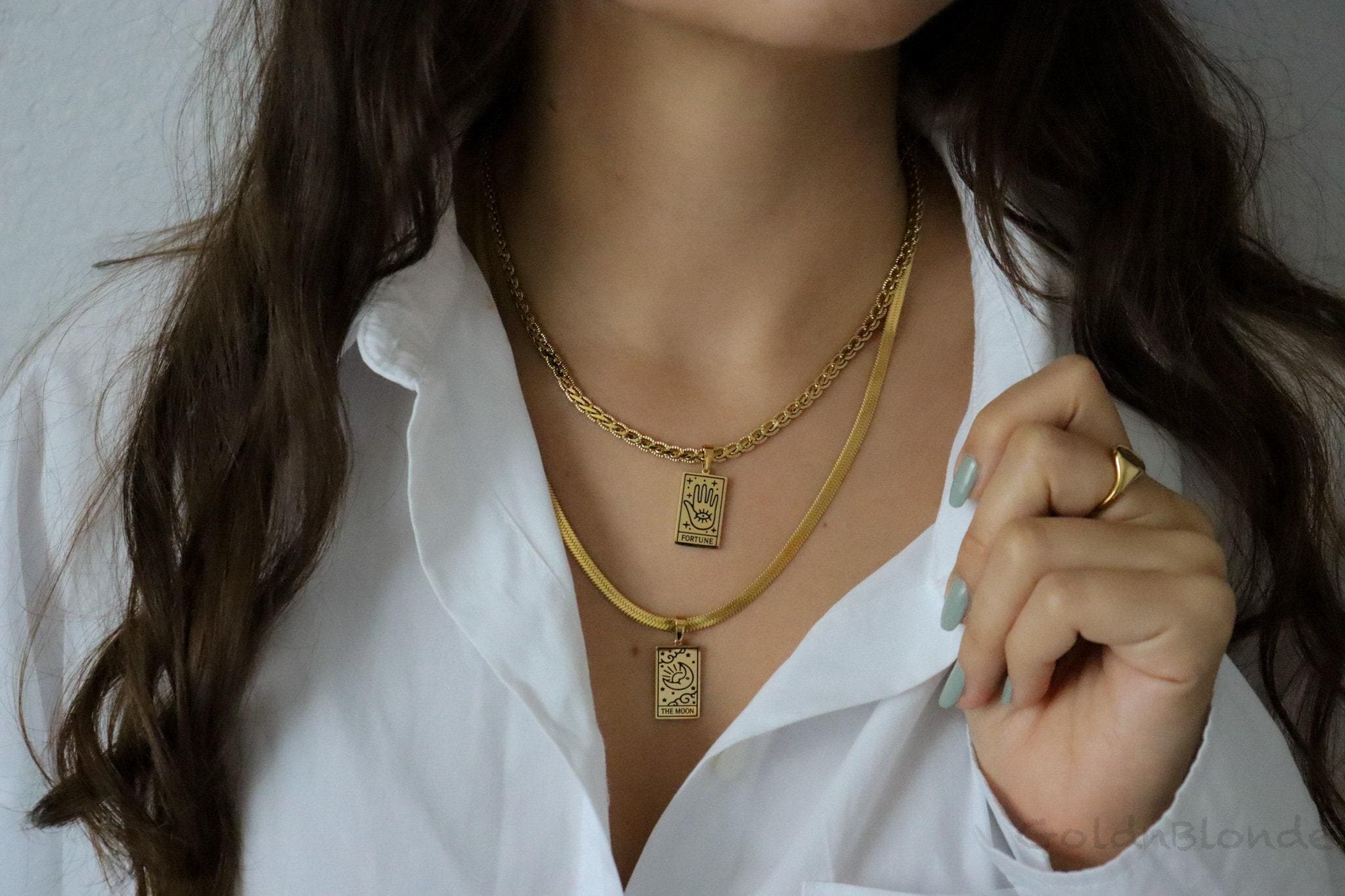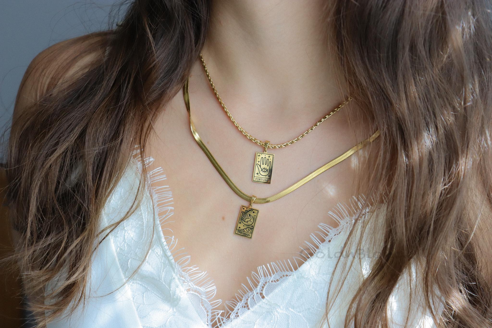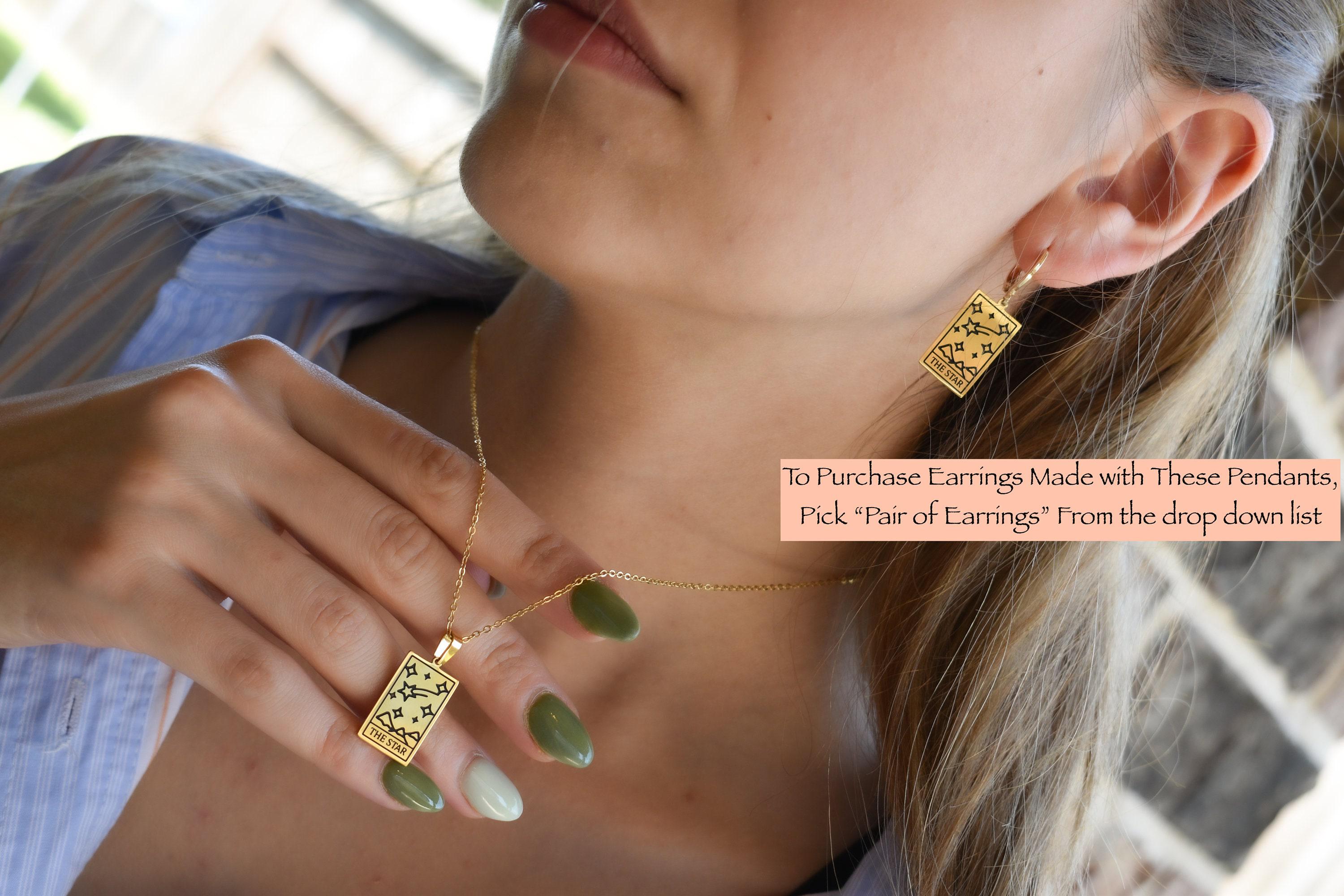 Gold Rectangle Zodiac Sign Tarot Card Necklace Anti Tarnish Tarot Jewelry Sun Fortune Star Moon Heart Mystic Jewelry Gift