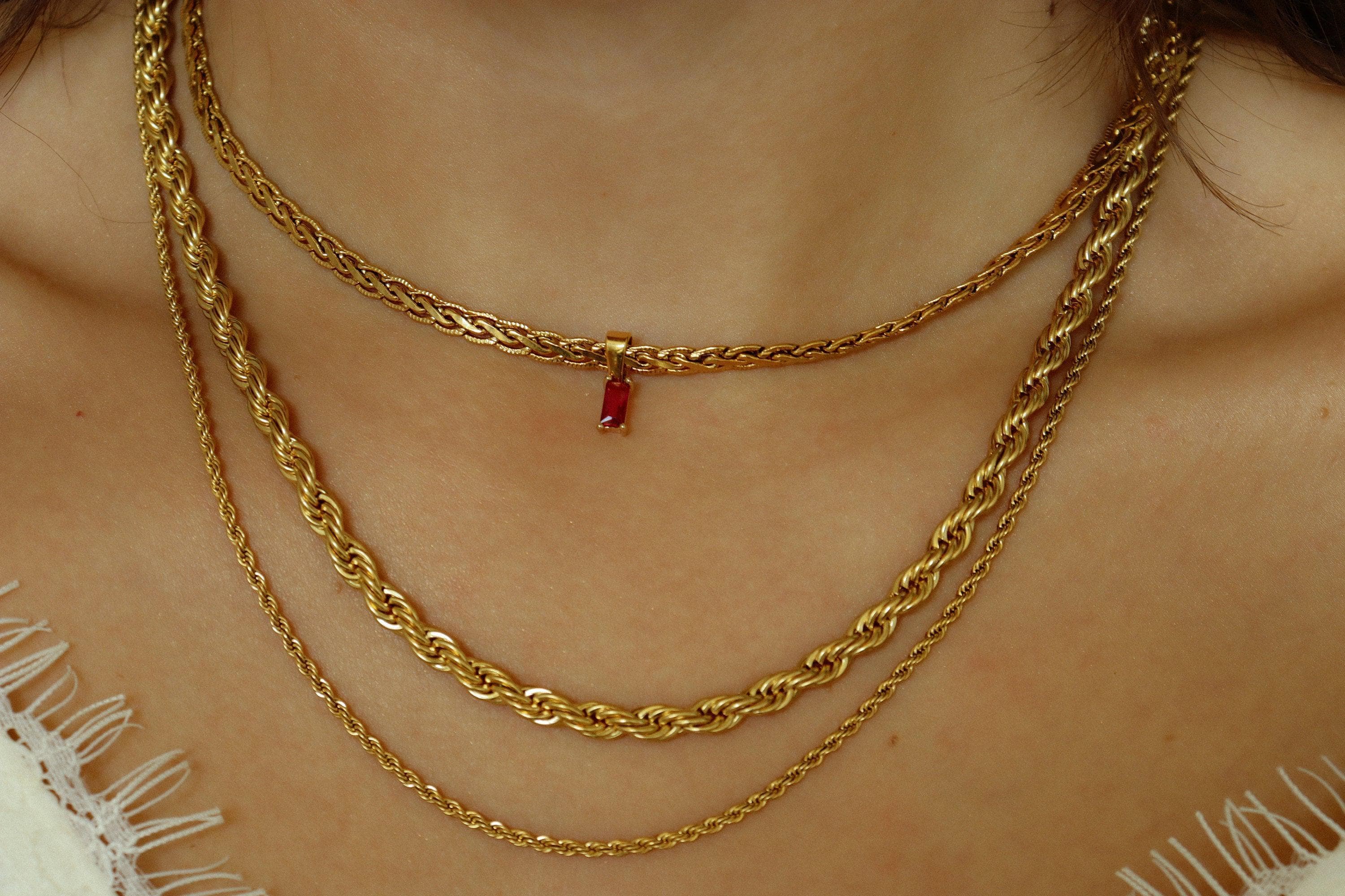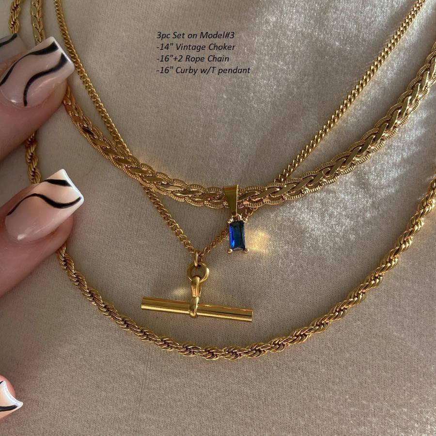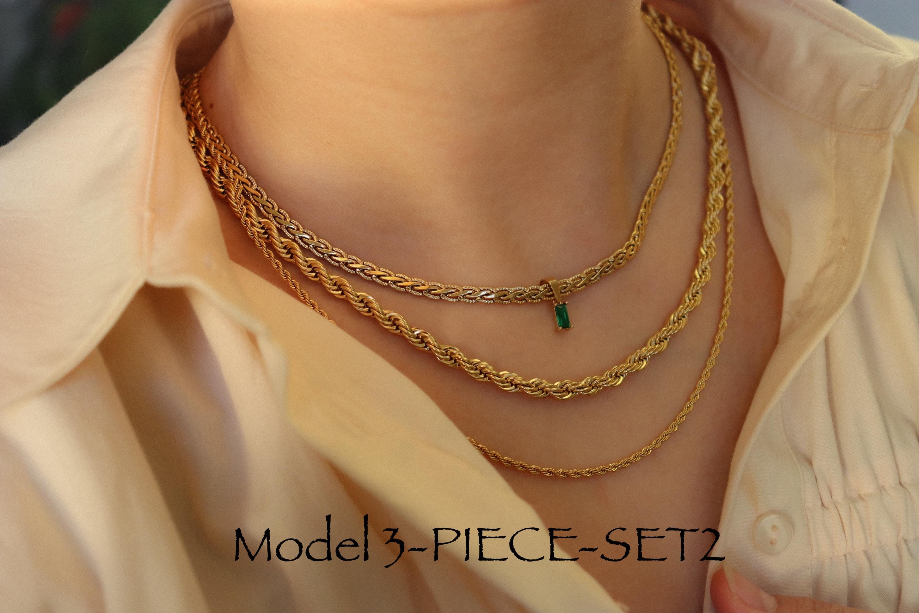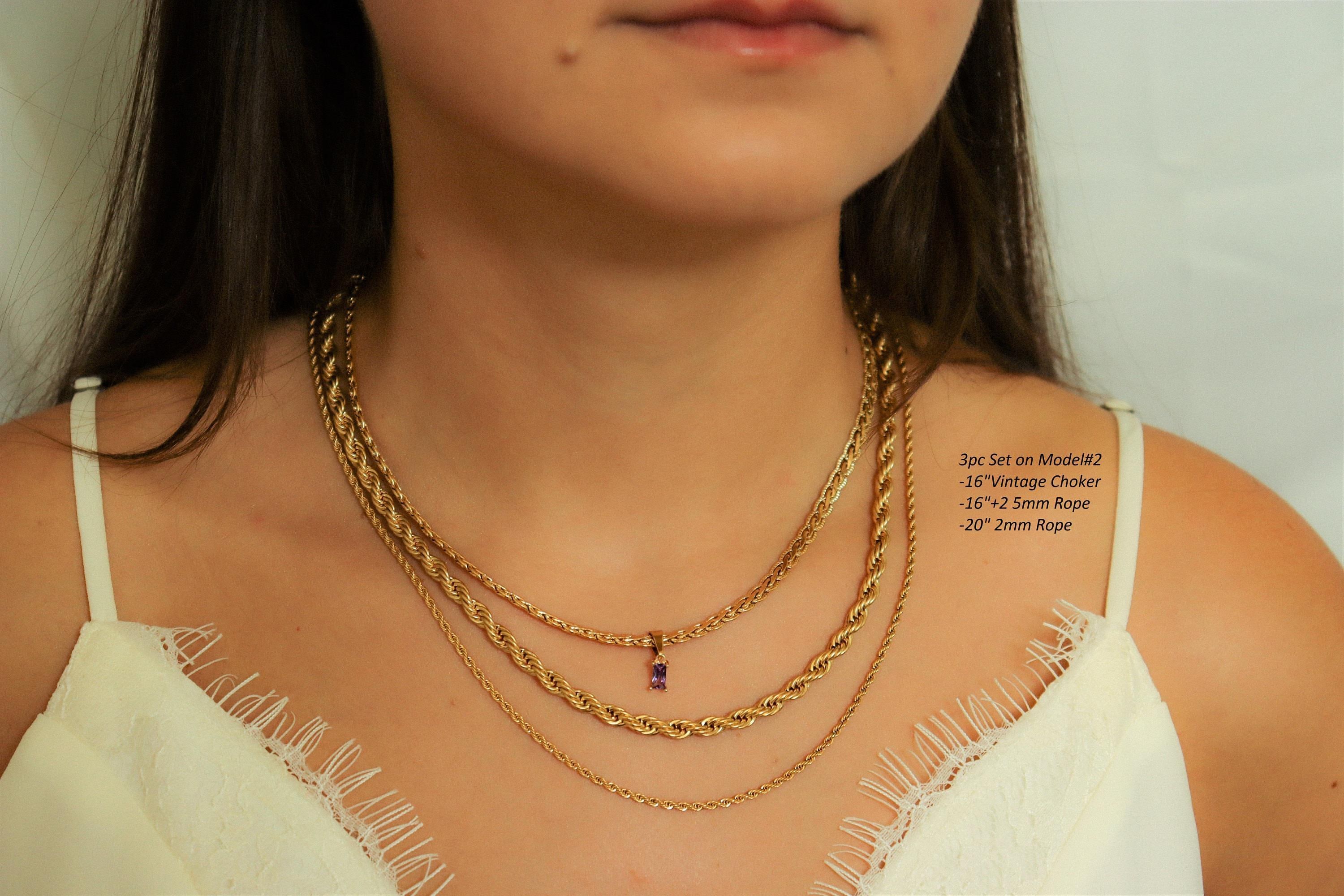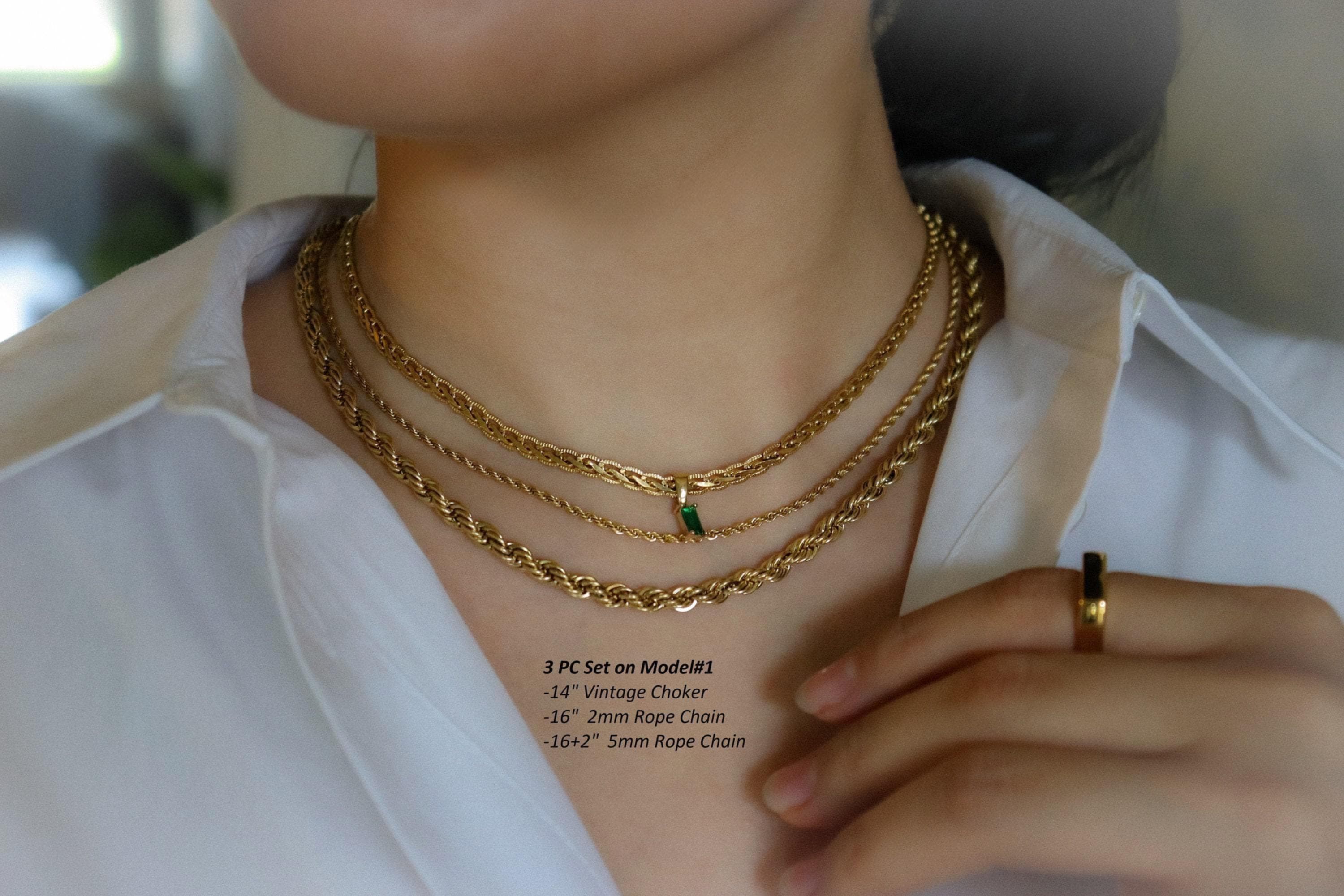 18K GOLD FILLED Vintage Choker Necklace Gold Necklace Zircon Stone Waterproof Jewelry Women Choker Necklace Rope Chain Layered Set