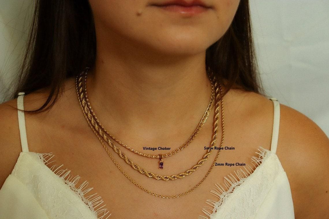 2mm thick and 5mm thick rope style chains that combine very well with the vintage choker chain are also available to purchase.