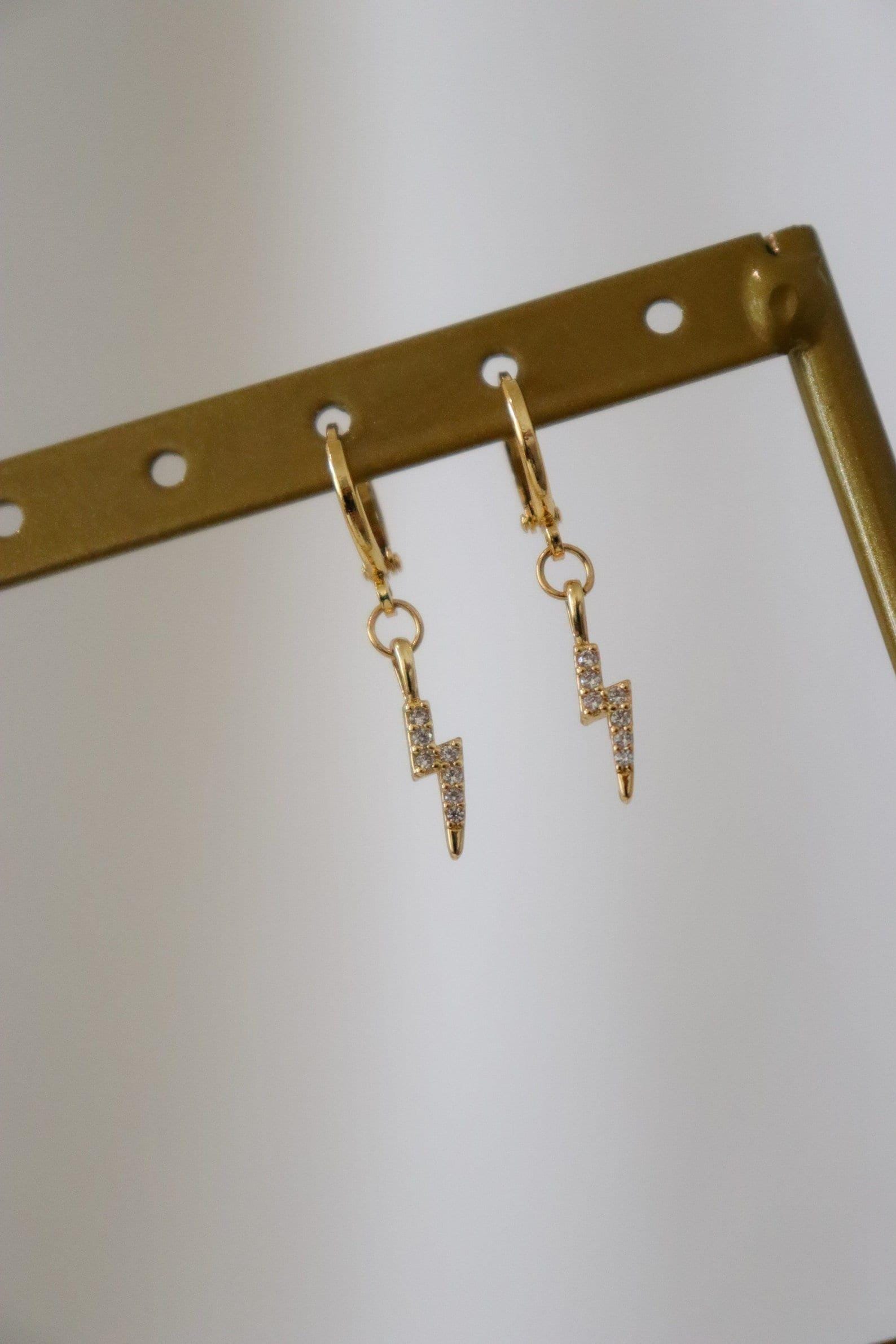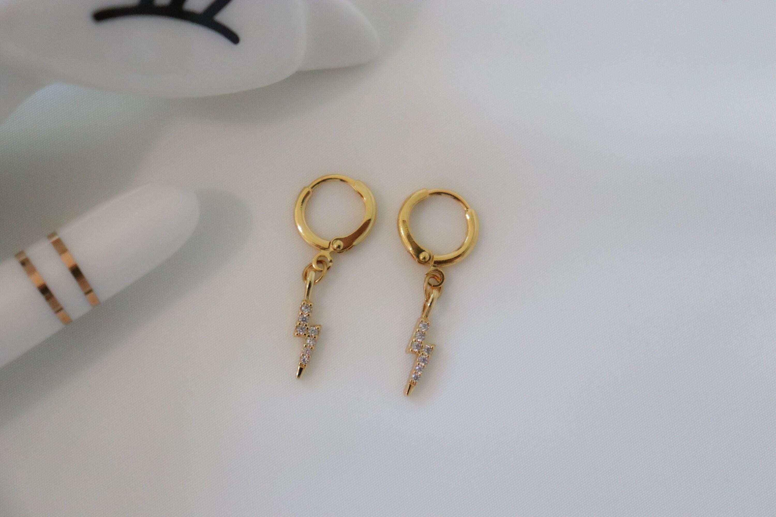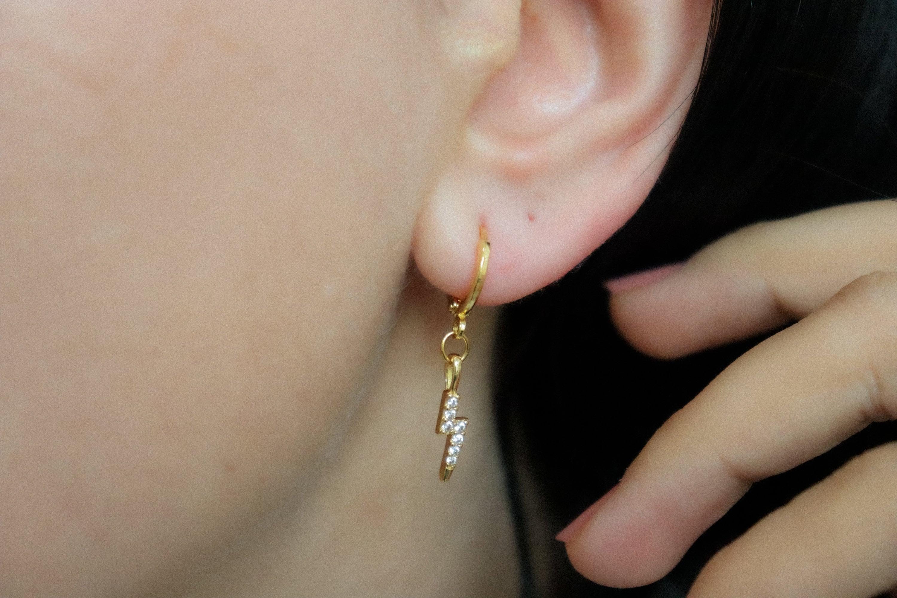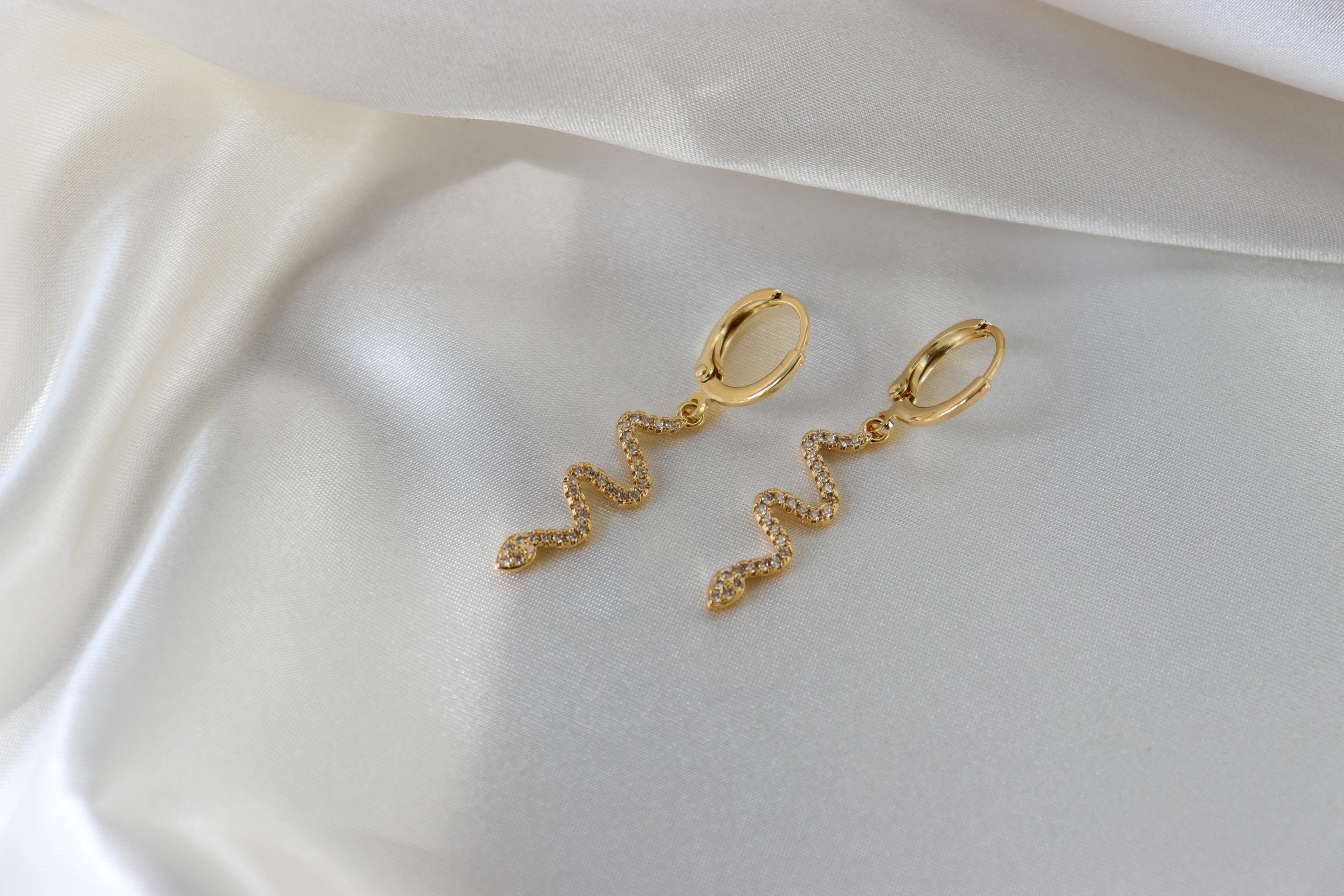 GOLD SNAKE & LIGHTNING PENDANT EARRINGS WATERPROOF JEWELRY ✨ 14K Gold Snake Lightning Hoop Earrings Gold Hoop Earrings Tiny Snake Earrings Reptile Lightning Bolt Earrings Thunder Waterproof Earrings