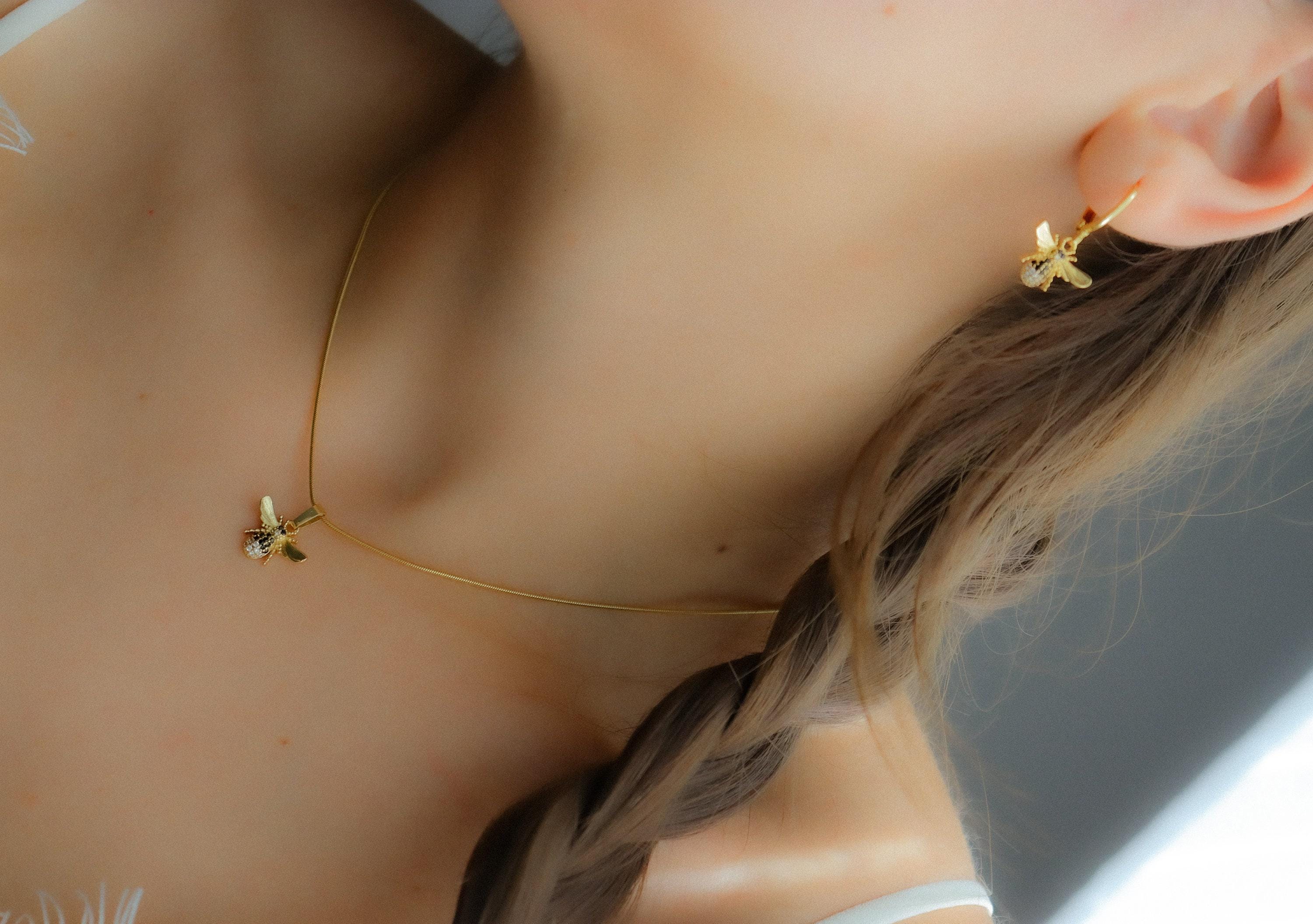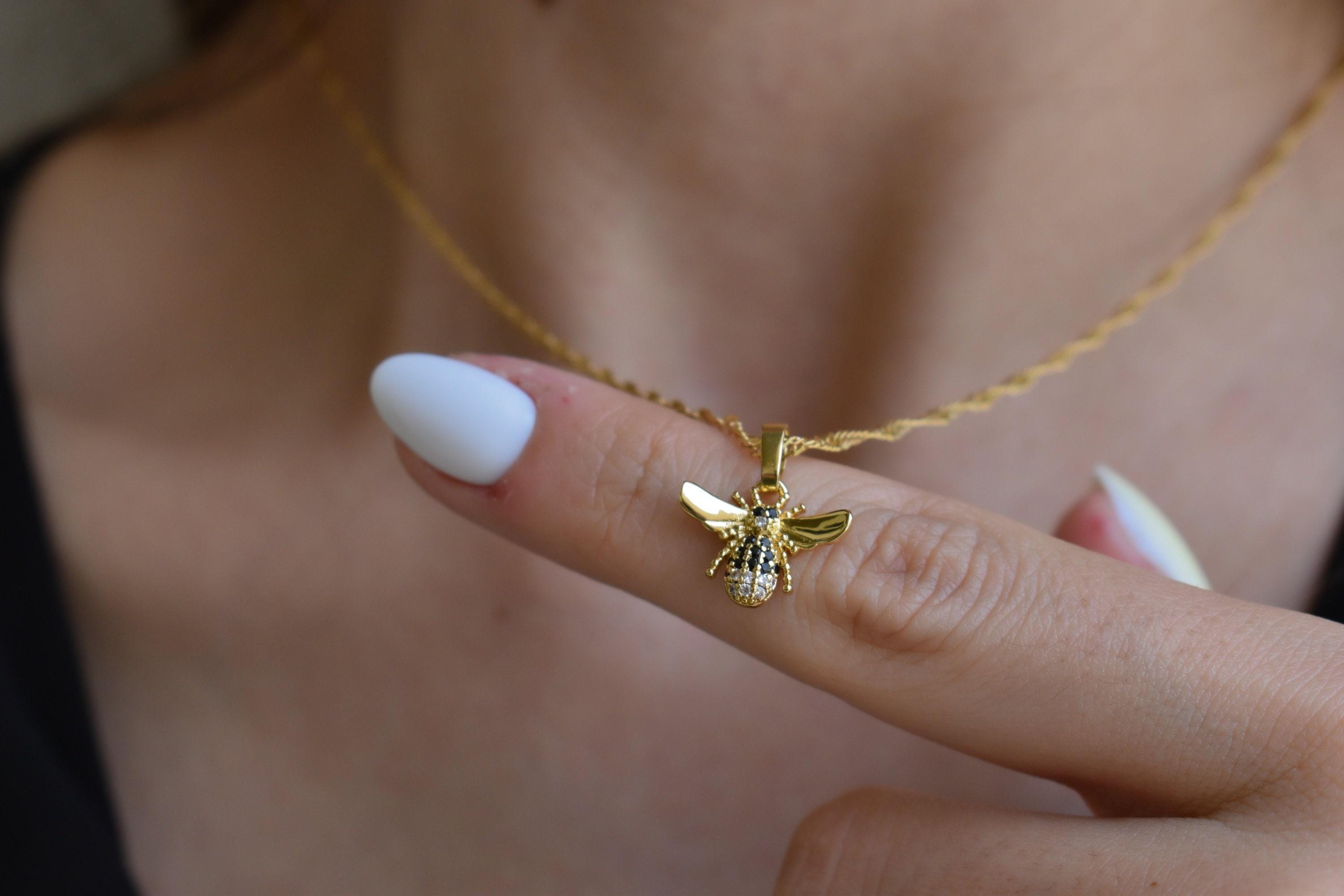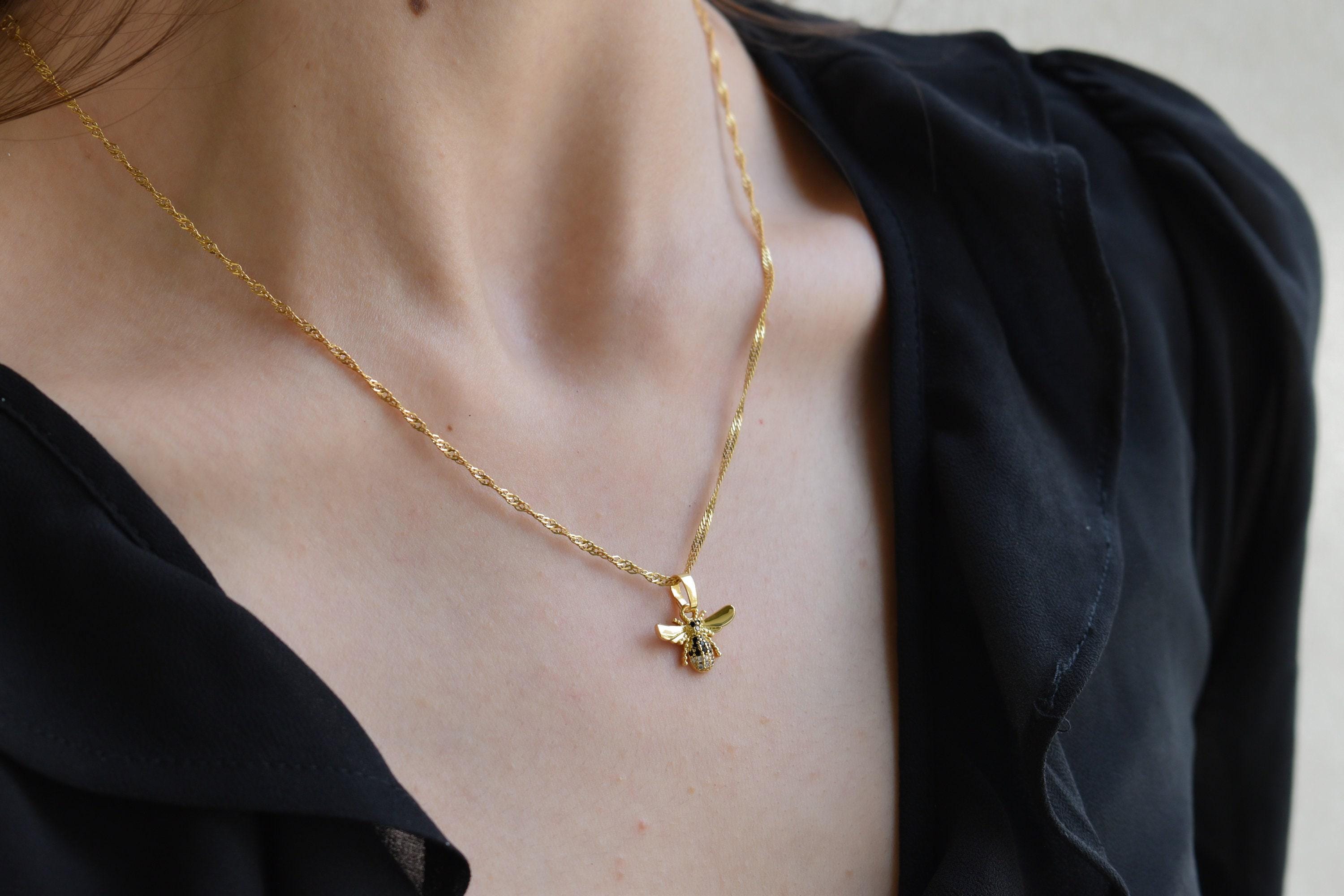 BEE NECKLACE Gold Filled Bee Necklace Vintage Choker Animal Honey Amber Bee Necklace Hoop Set Gold Jewelry Gold Chain Necklace Unique Gift Her BFF Woman