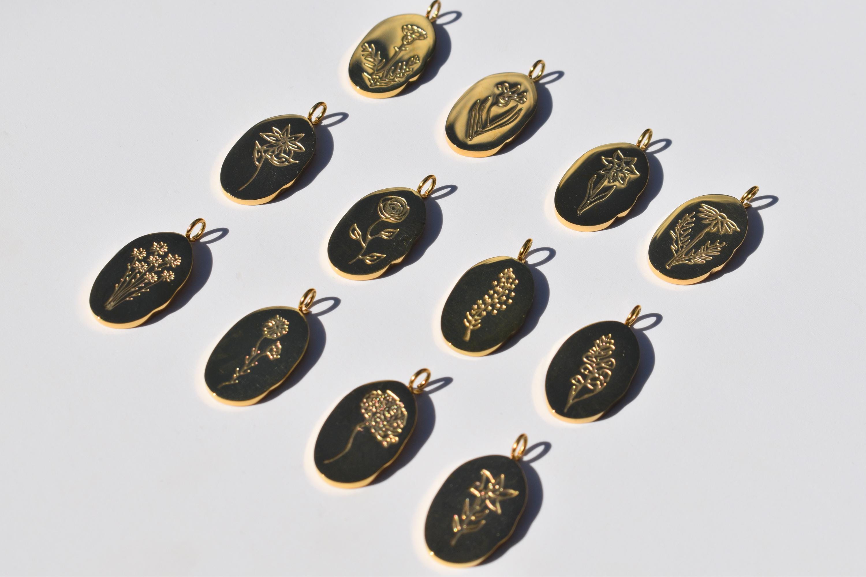 👉Pendants have the name of month and flower etched on the back. If you don't want the name of month and flower on the back side, please write us at personalization box.