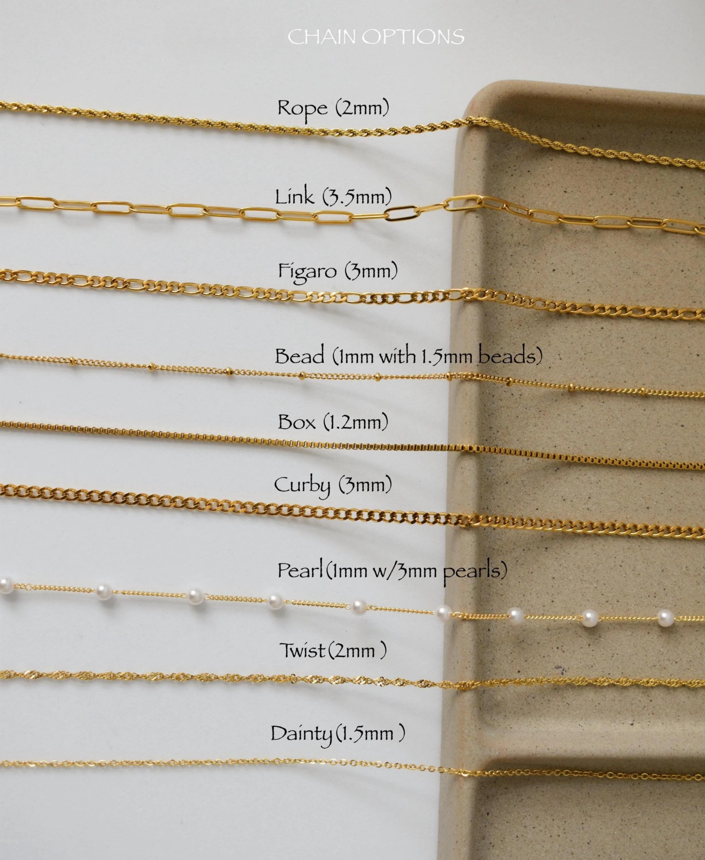 ❣️Its beautiful golden chain comes in a variety of styles, including Bead, Box, Curby, Dainty, Figaro, Link, Rope, Twist, Pearl, and Herringbone - ensuring that there's a style for every taste and occasion.
