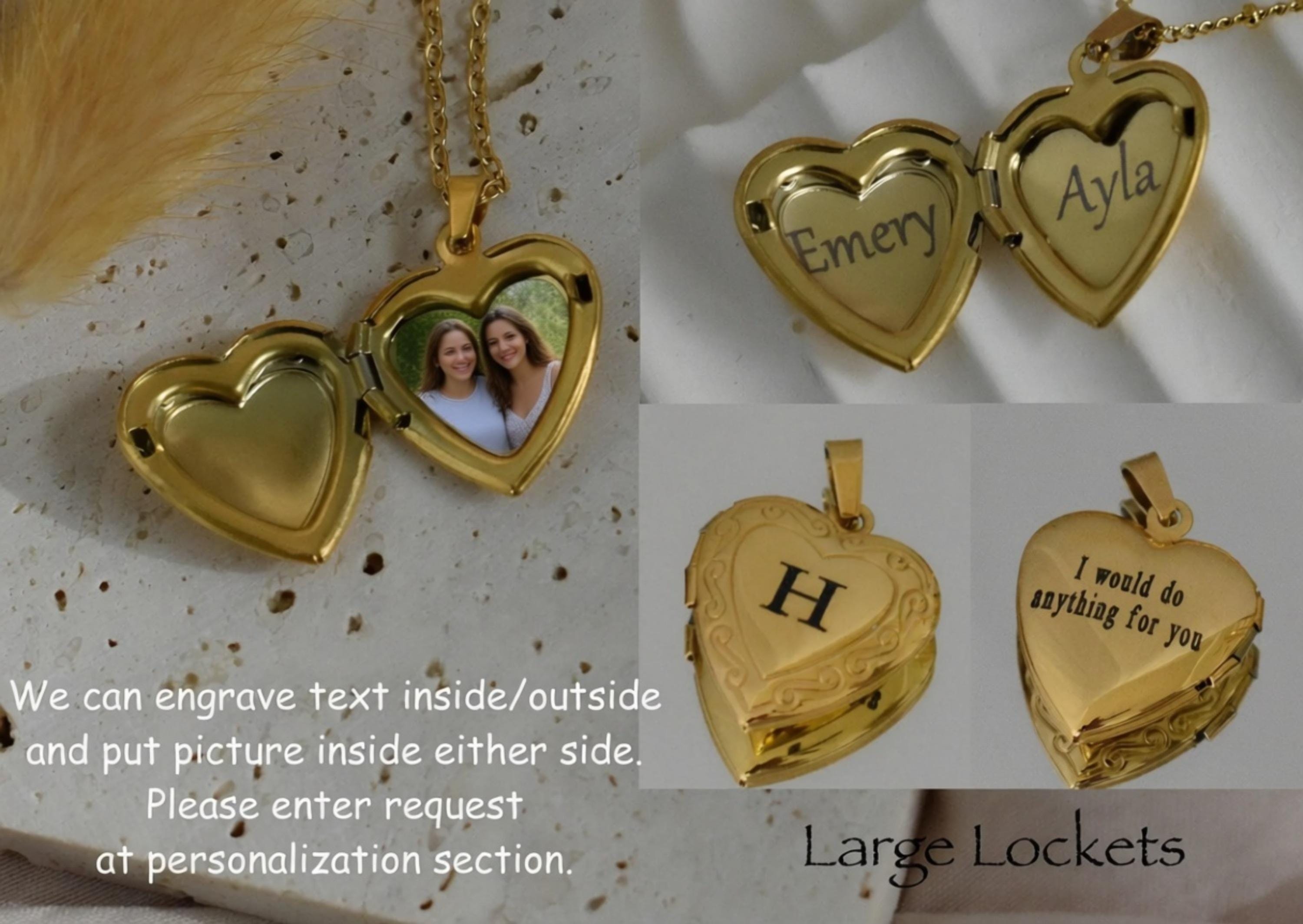 If you want a picture added, Send us Pictures on Etsy Messages after purchasing. We can print and cut it for free. Large lockets are best for adding up to two pictures on either side of the locket's inside.