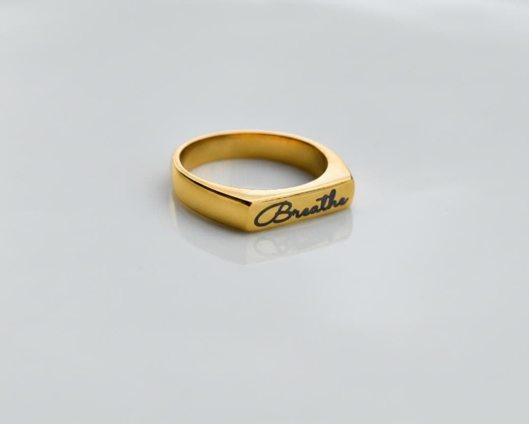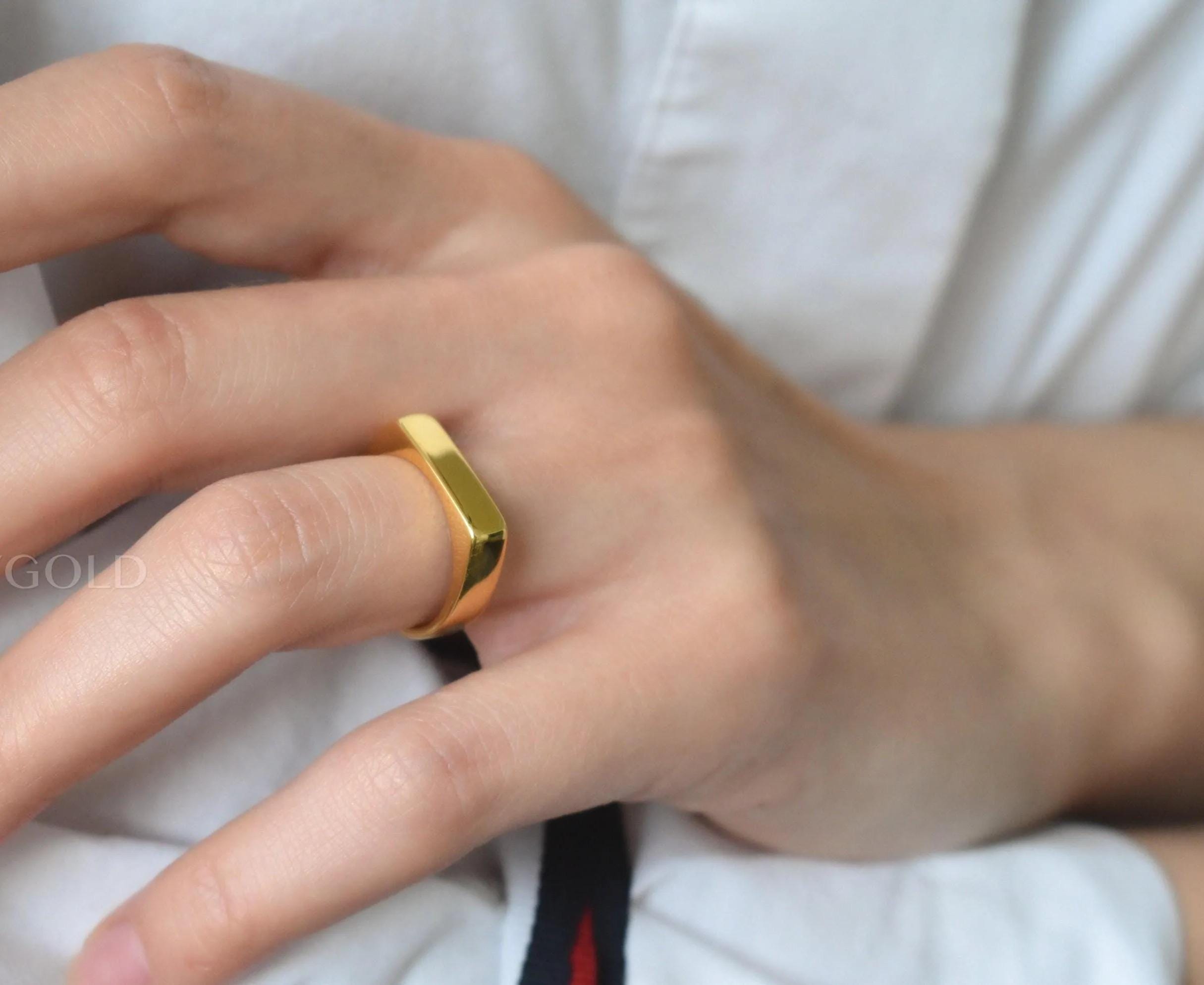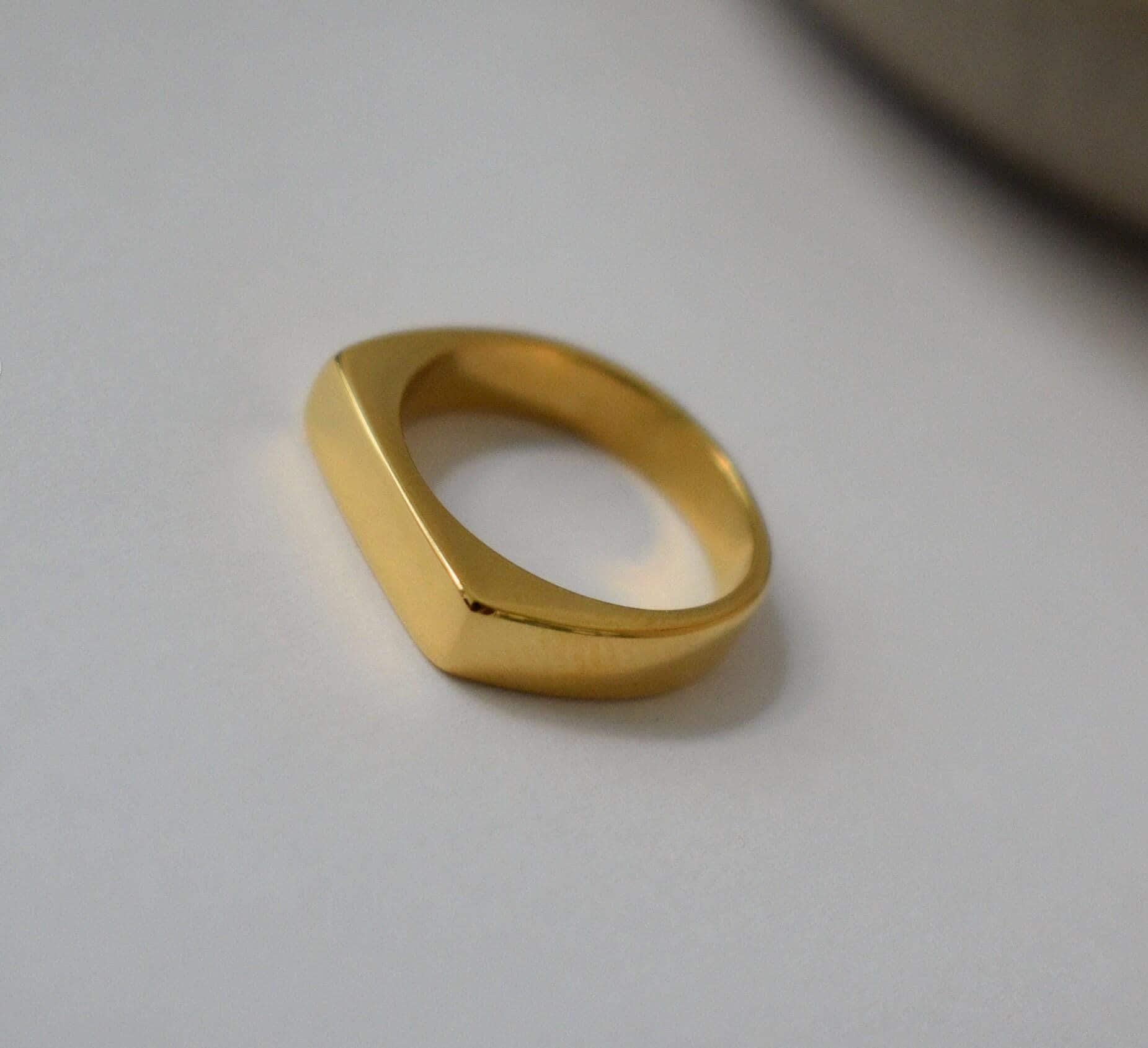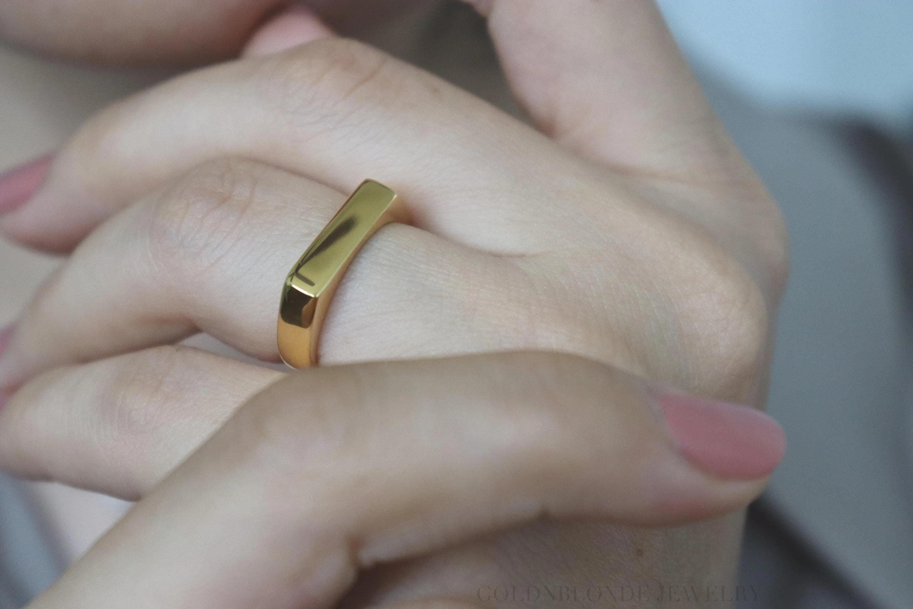 18K GOLD OVER STAINLESS STEEL STYLE RINGS FLAT ID BAR STACKABLE RINGS