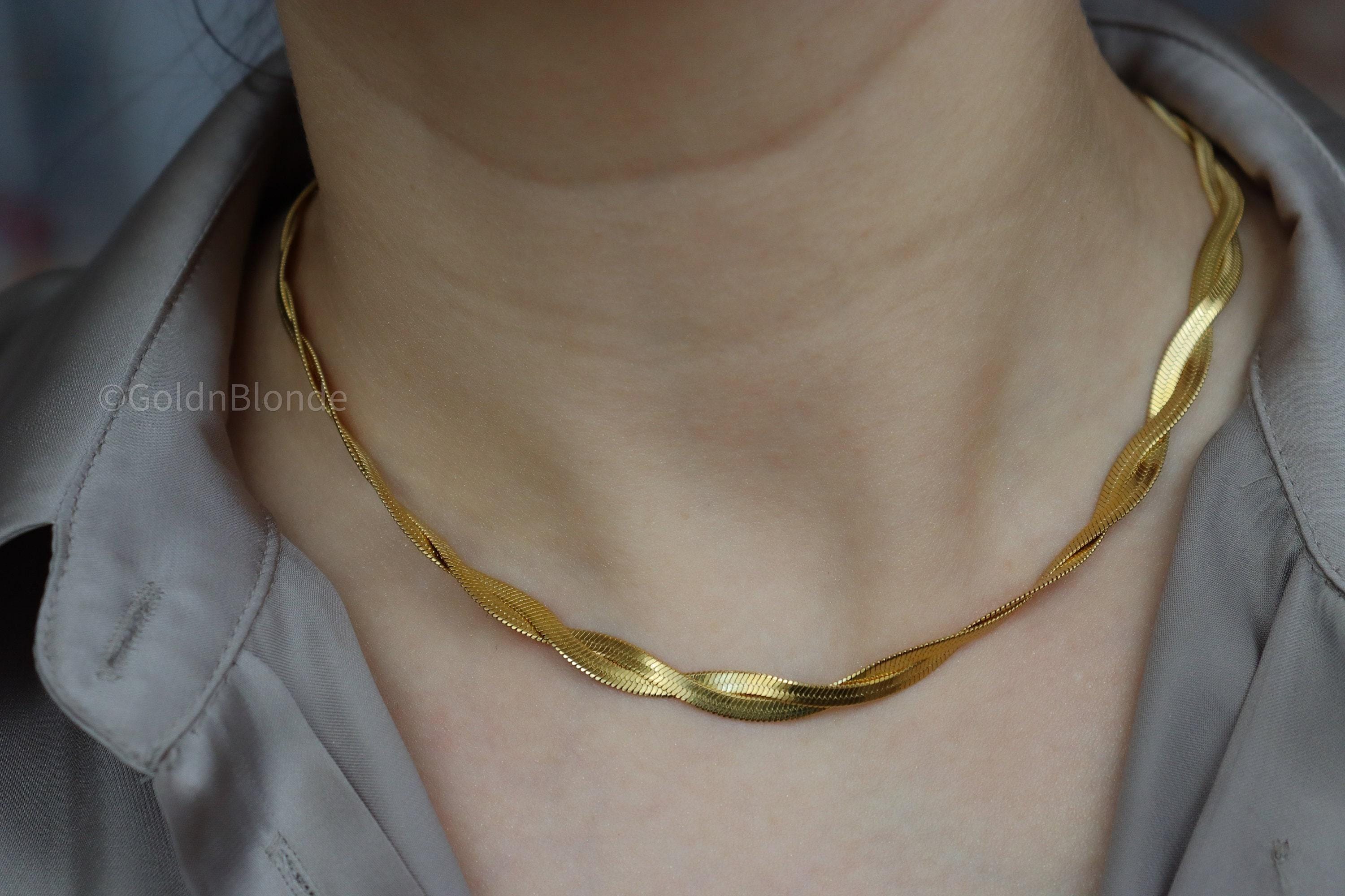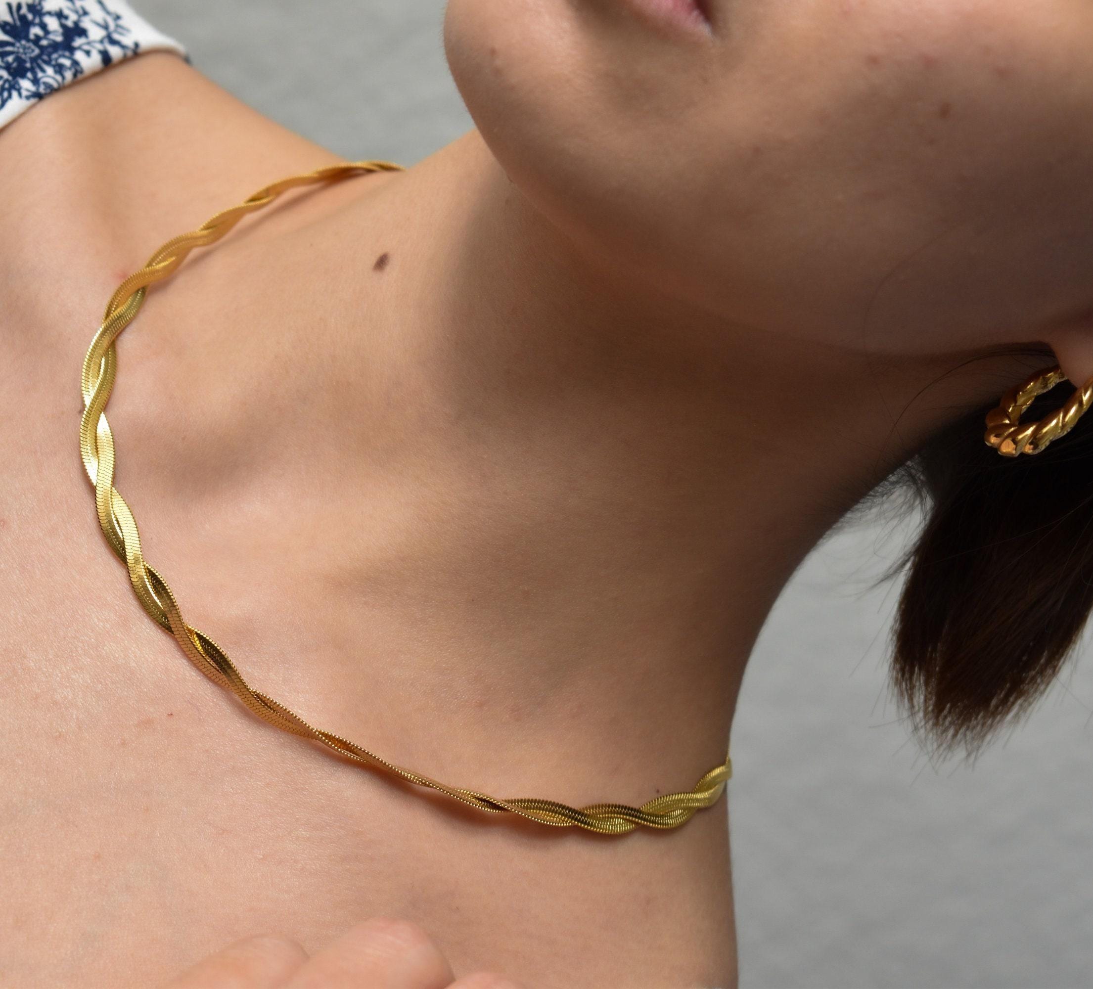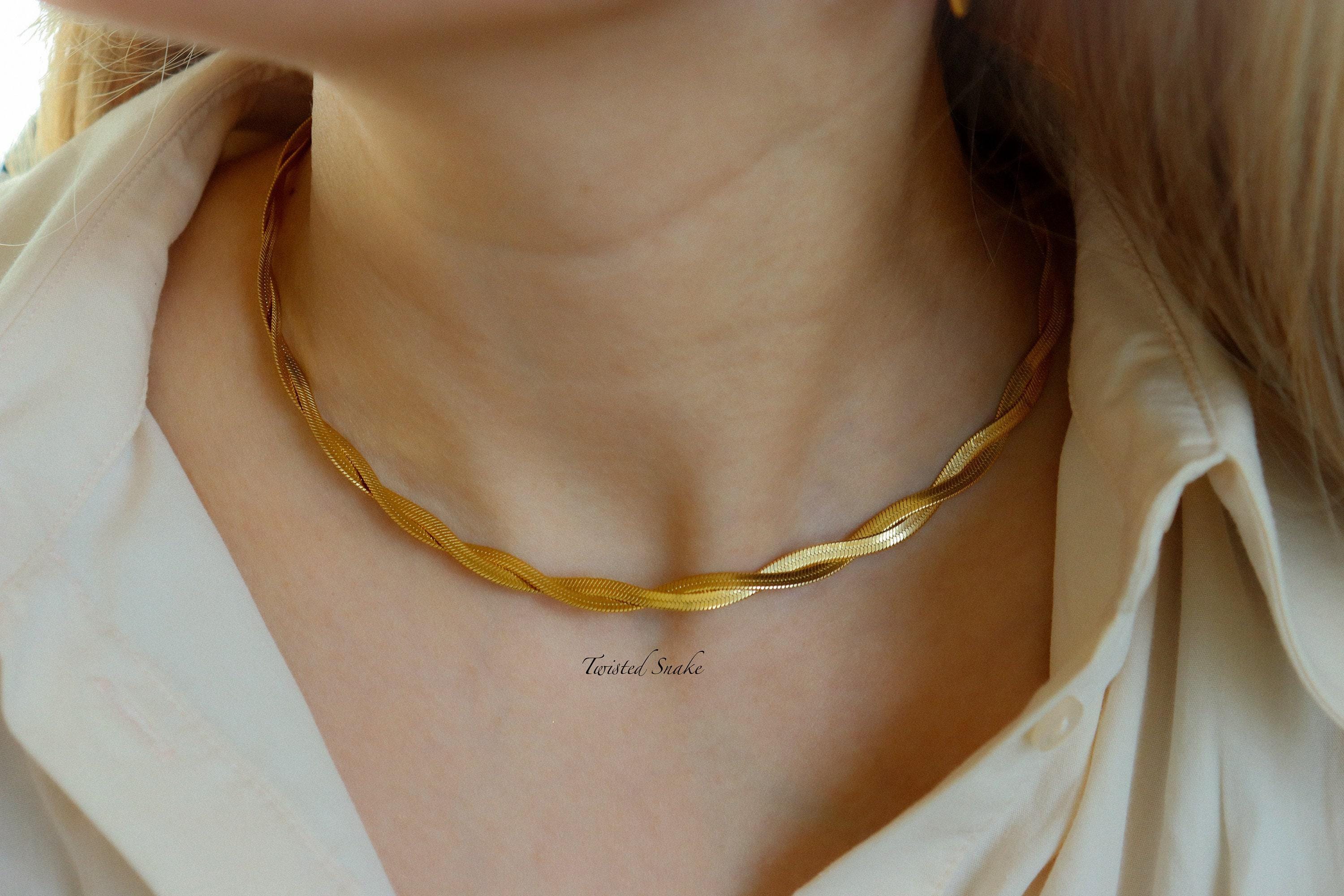 GOLD TWISTED DOUBLE HERRINGBONE SNAKE CHAIN NECKLACE WATERPROOF JEWELRY✨