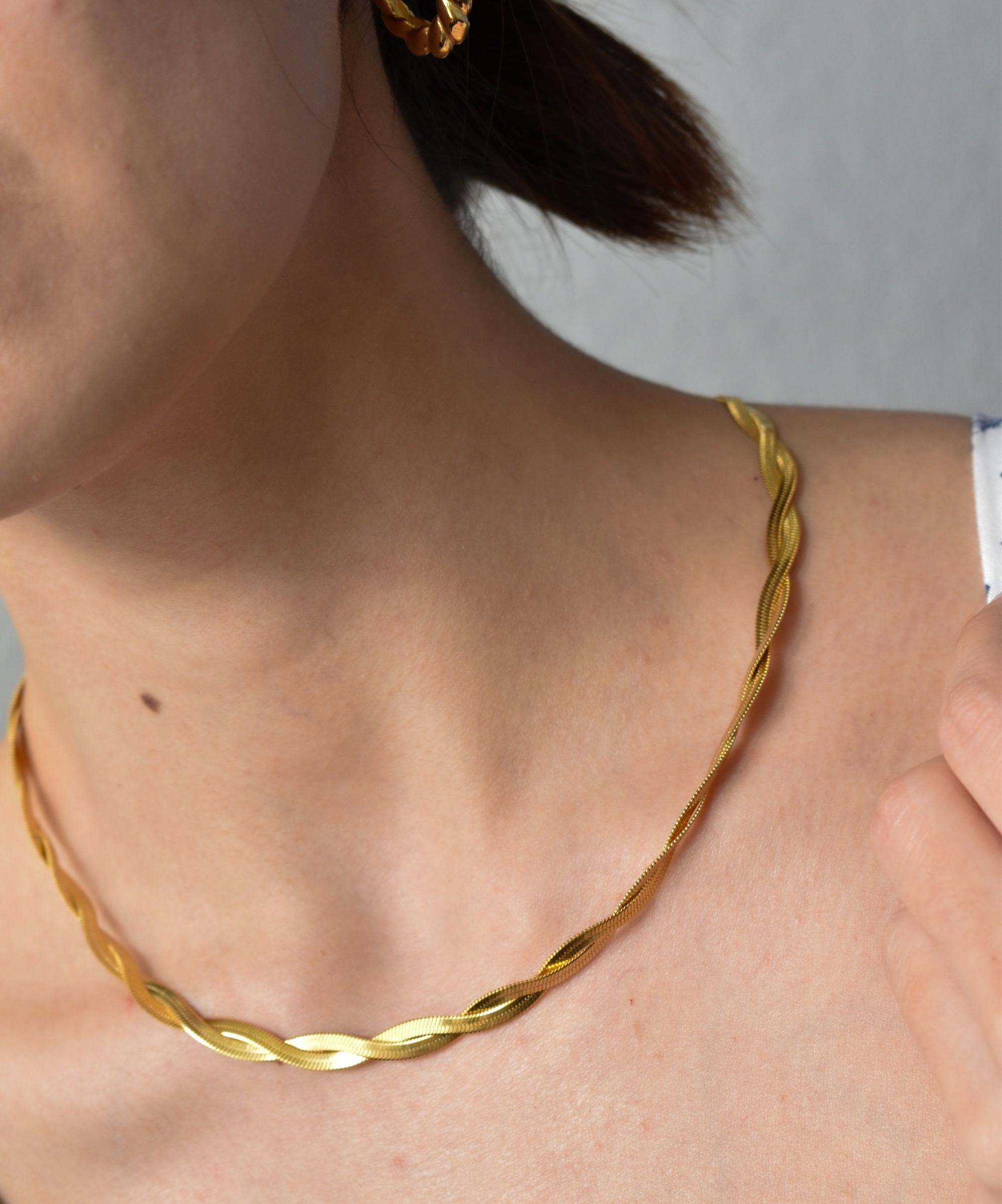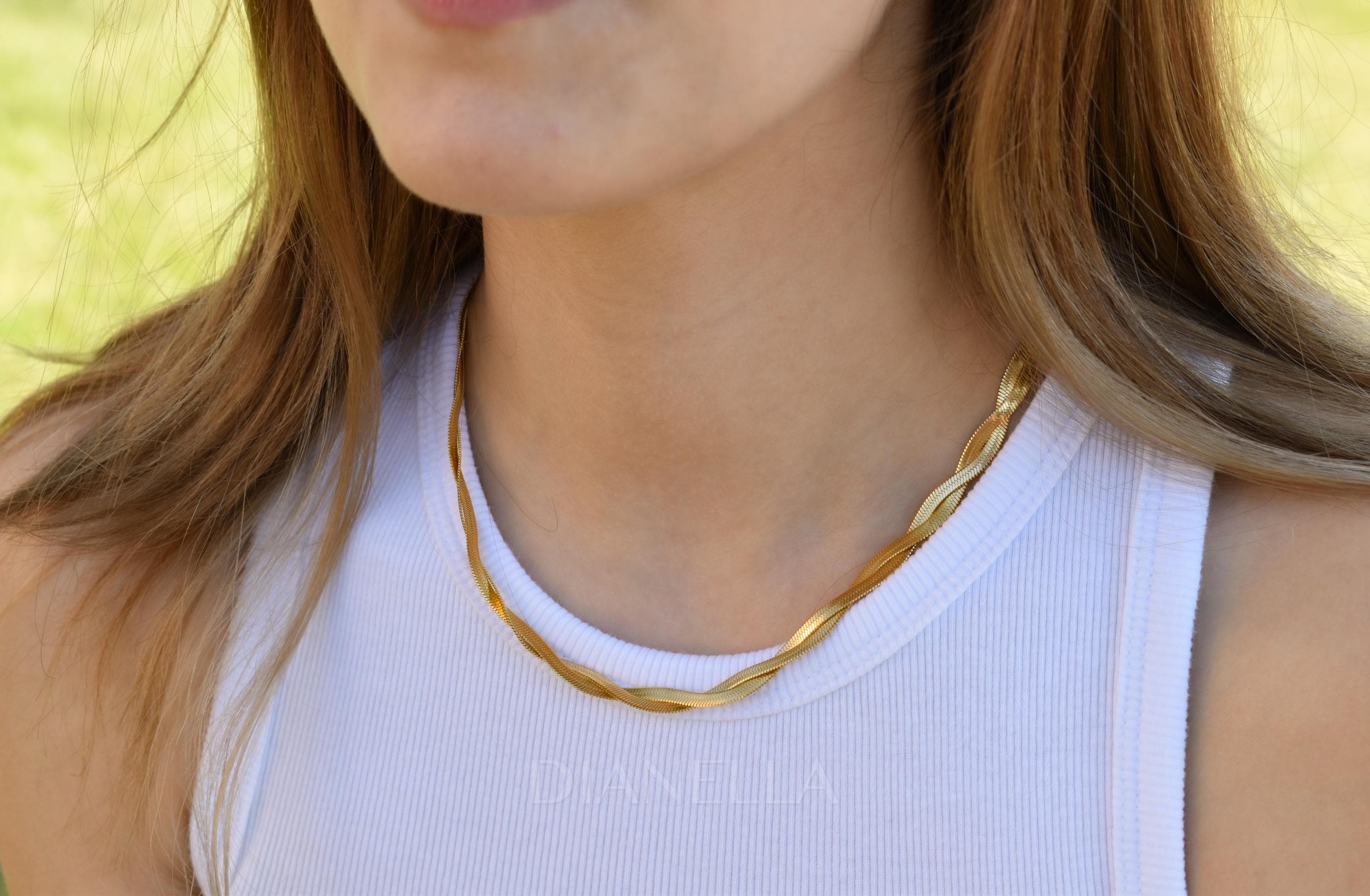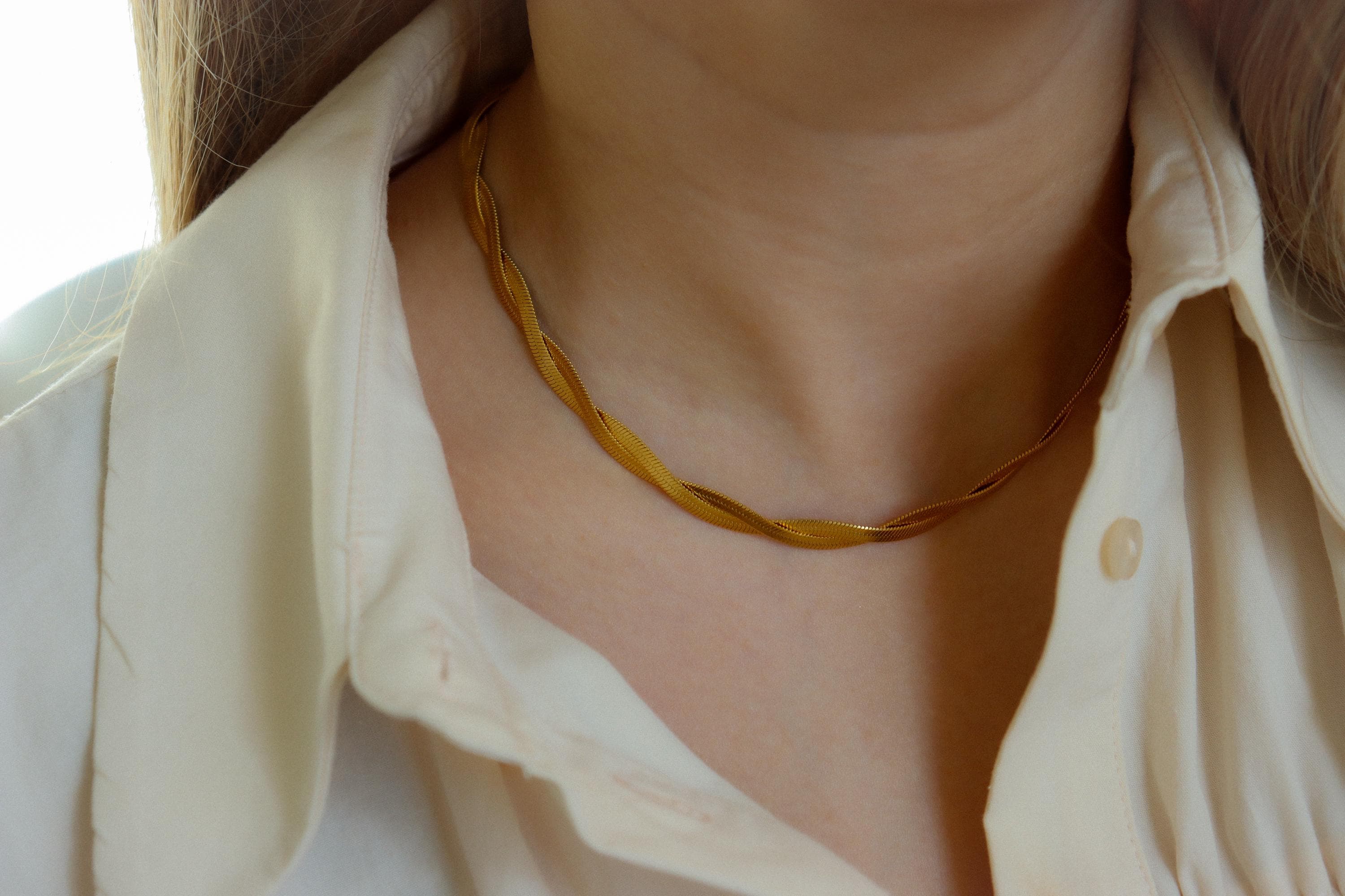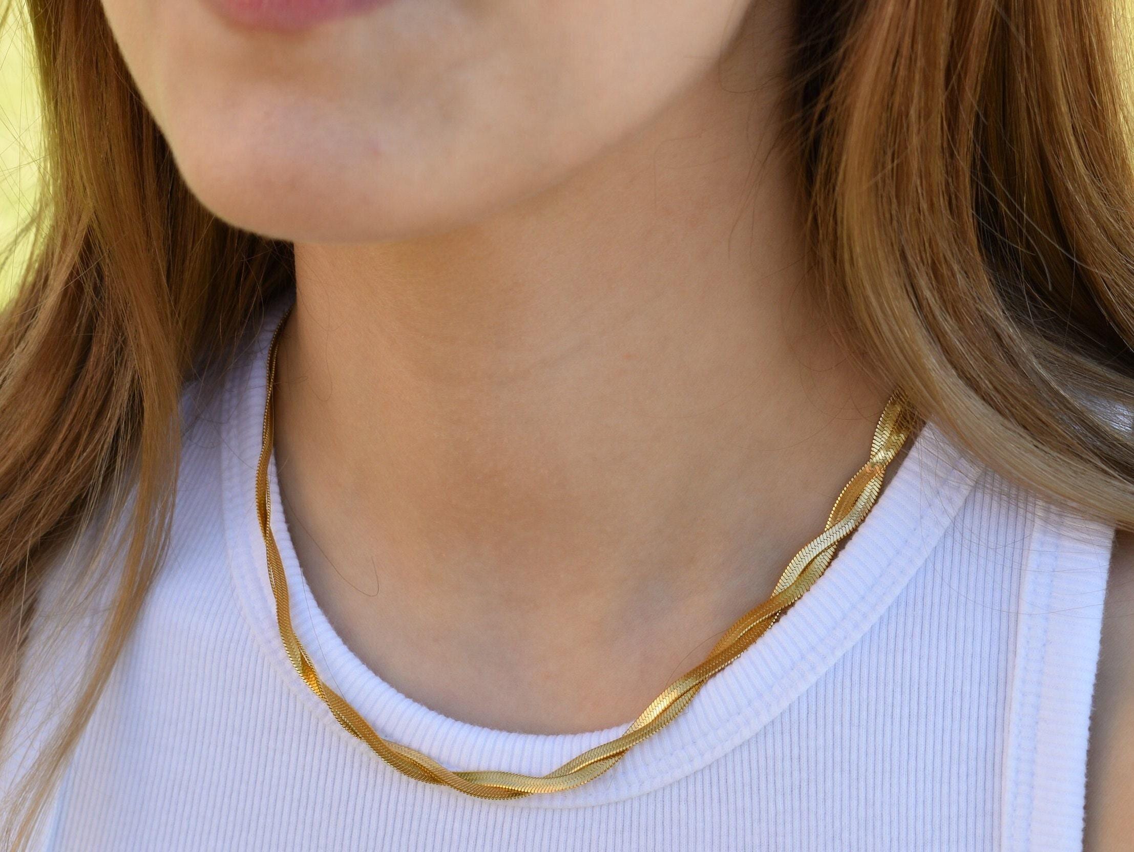 GOLD TWISTED DOUBLE HERRINGBONE SNAKE CHAIN NECKLACE WATERPROOF JEWELRY✨