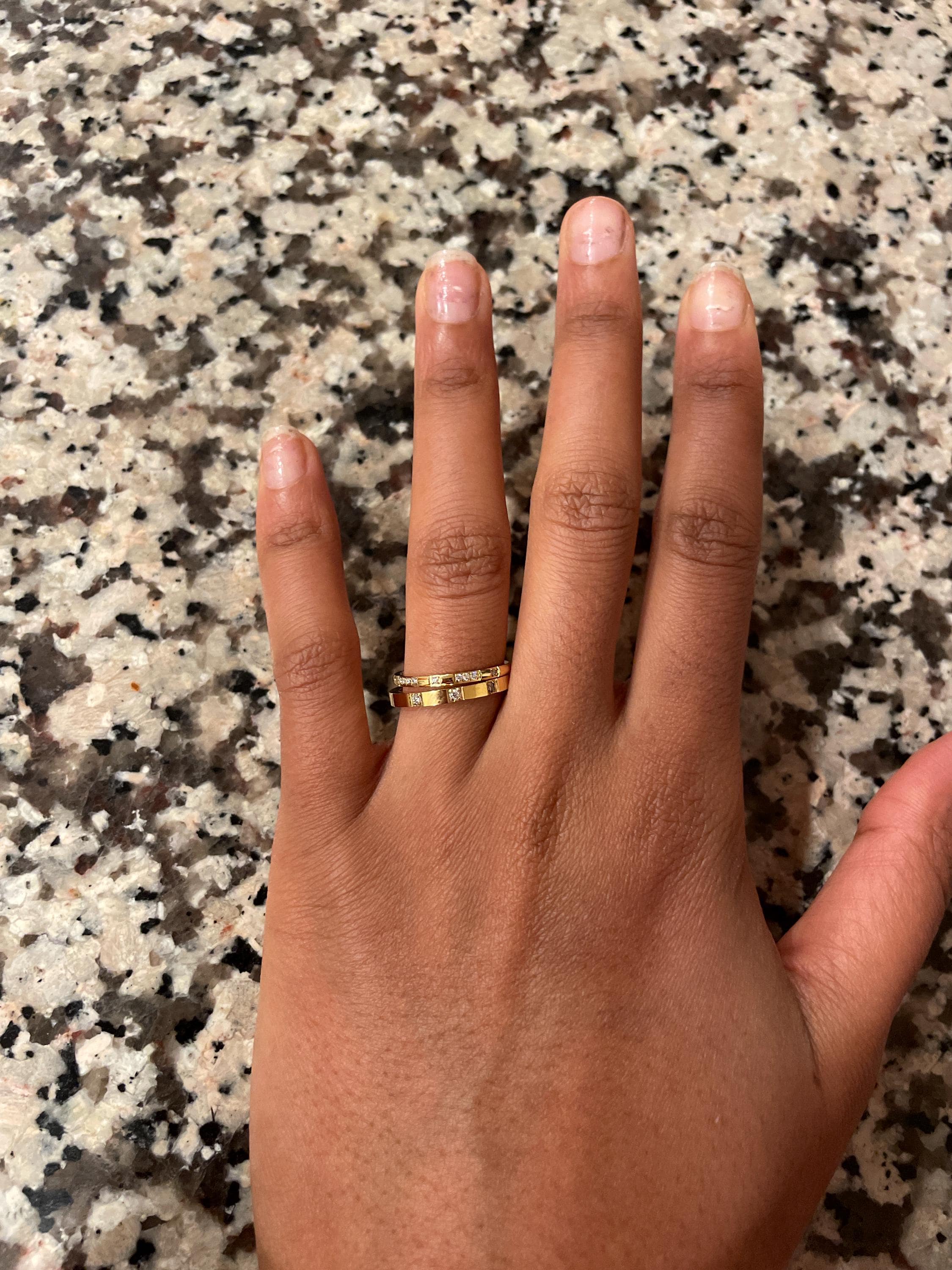 The rings are just as beautiful as I imagined and hoped when I saw them pictured online. And they stack nicely with another ring I already own. The seller is prompt and sent a very thoughtful extra item of gratitude for supporting their business.