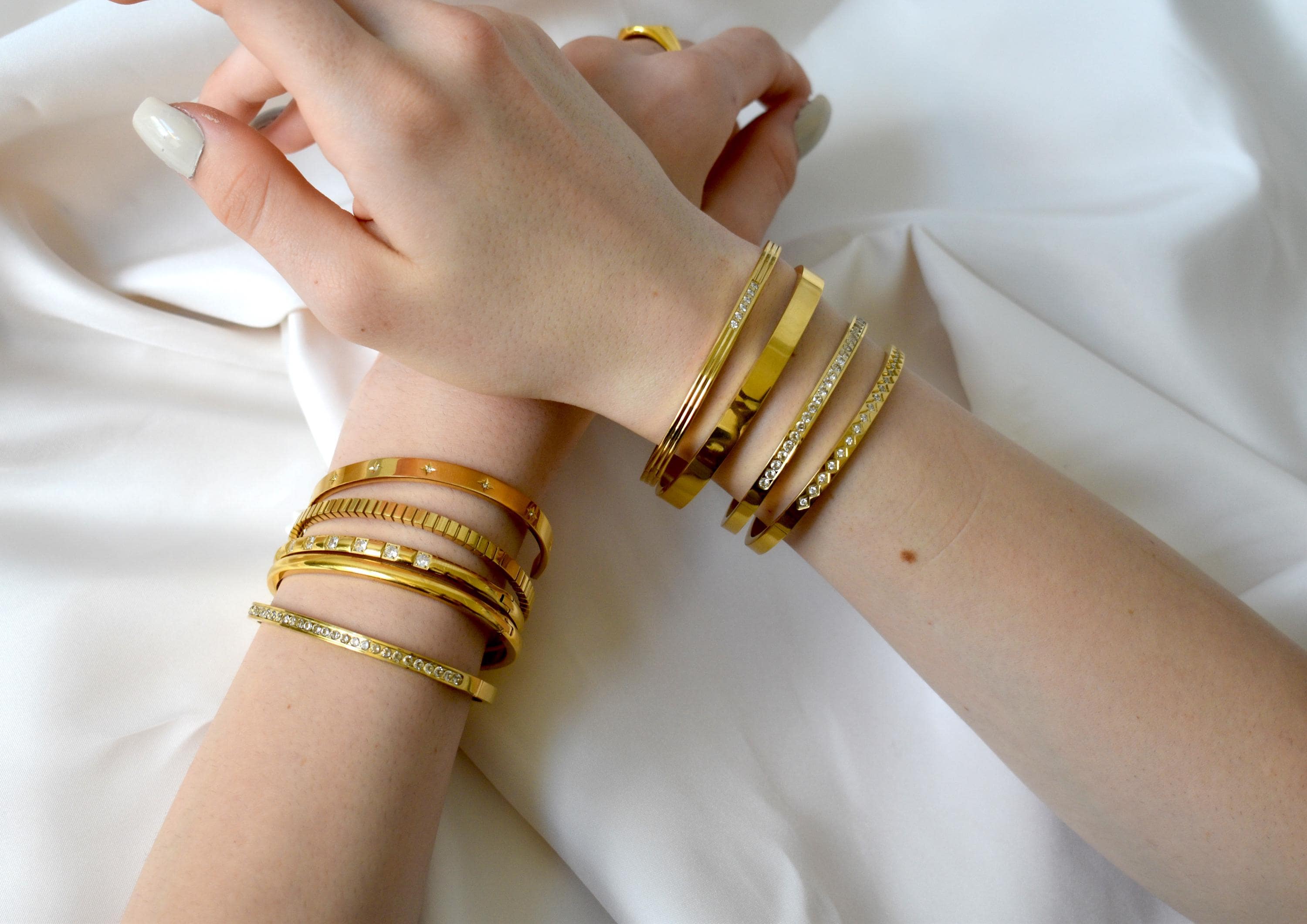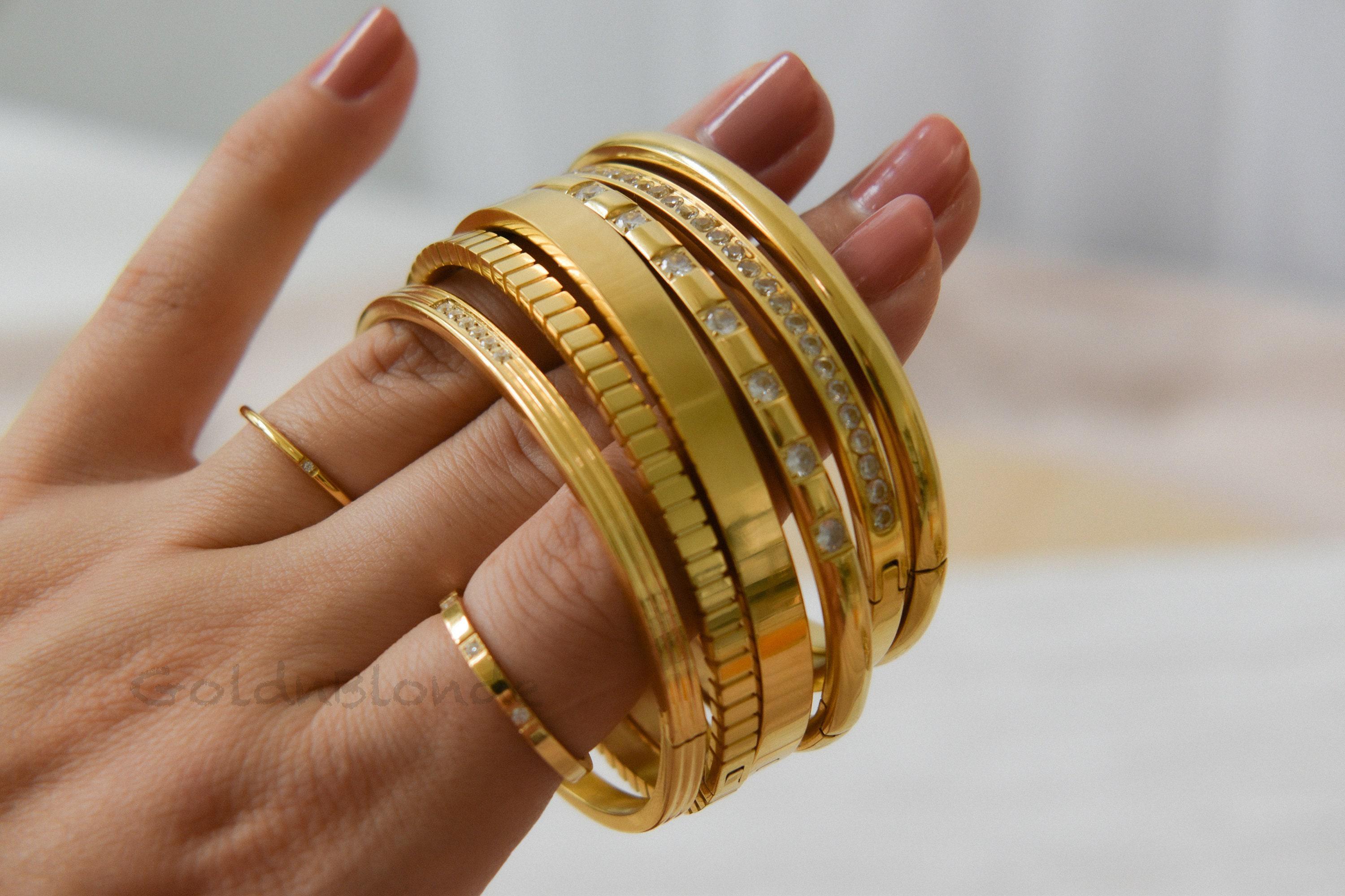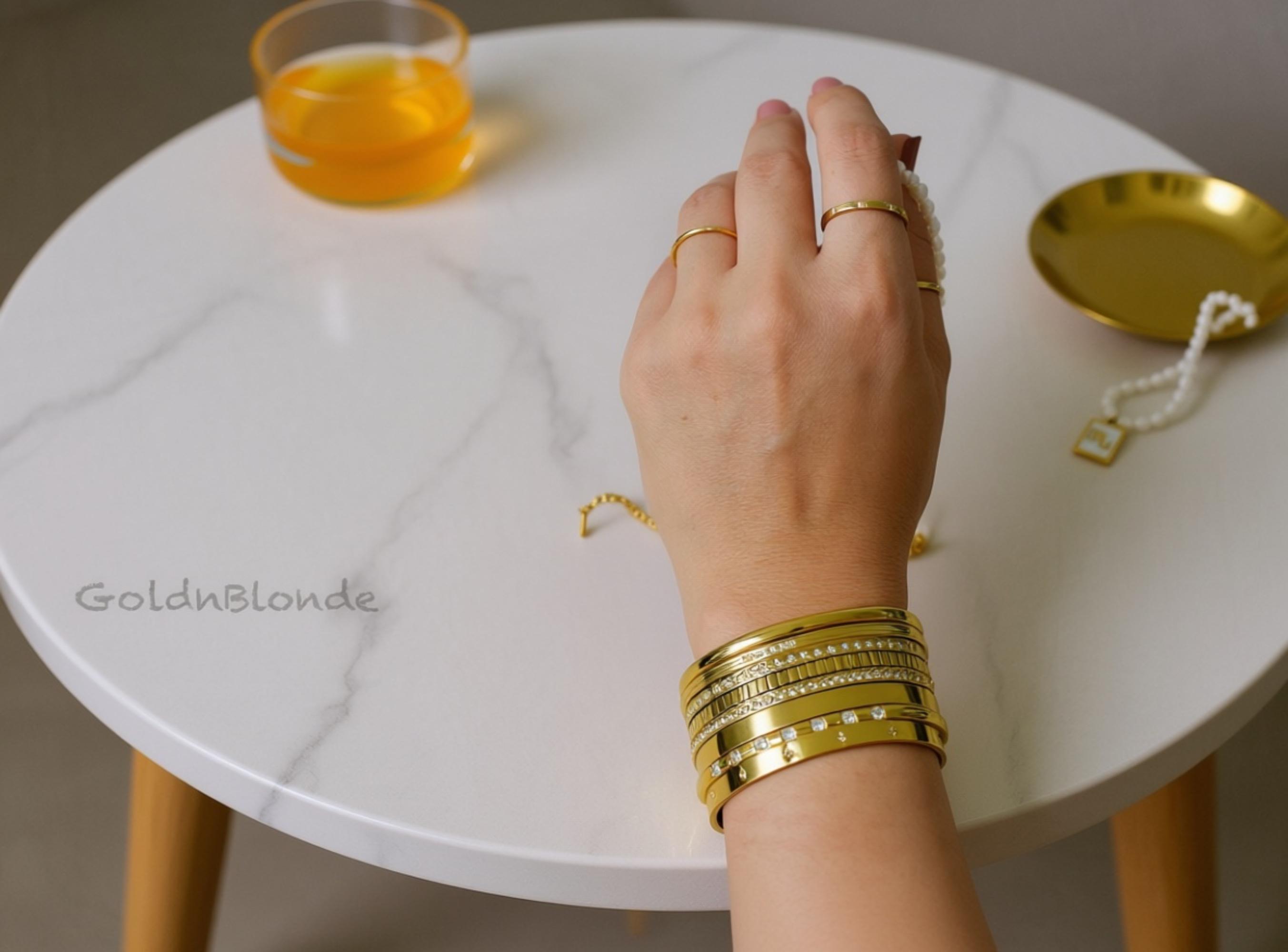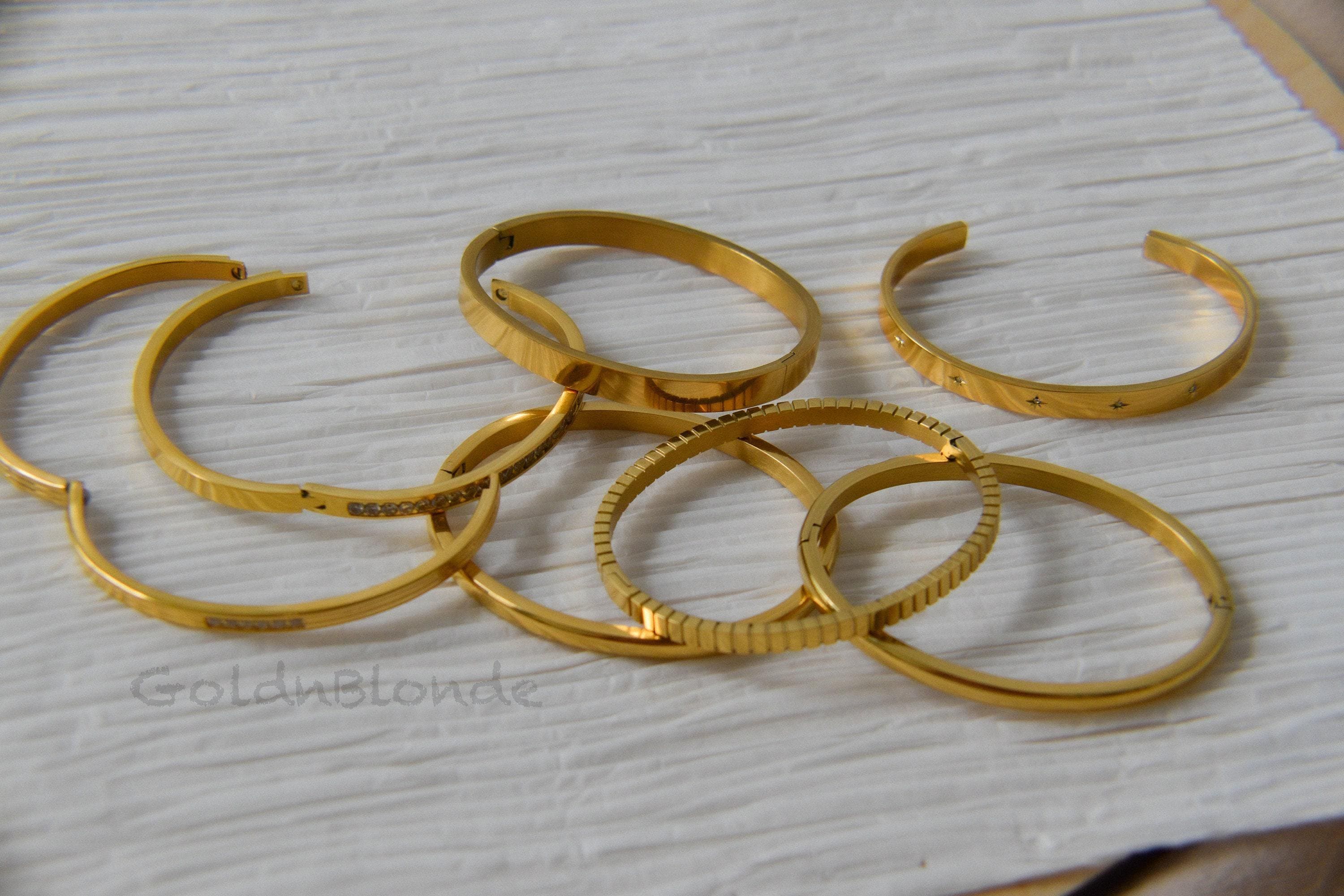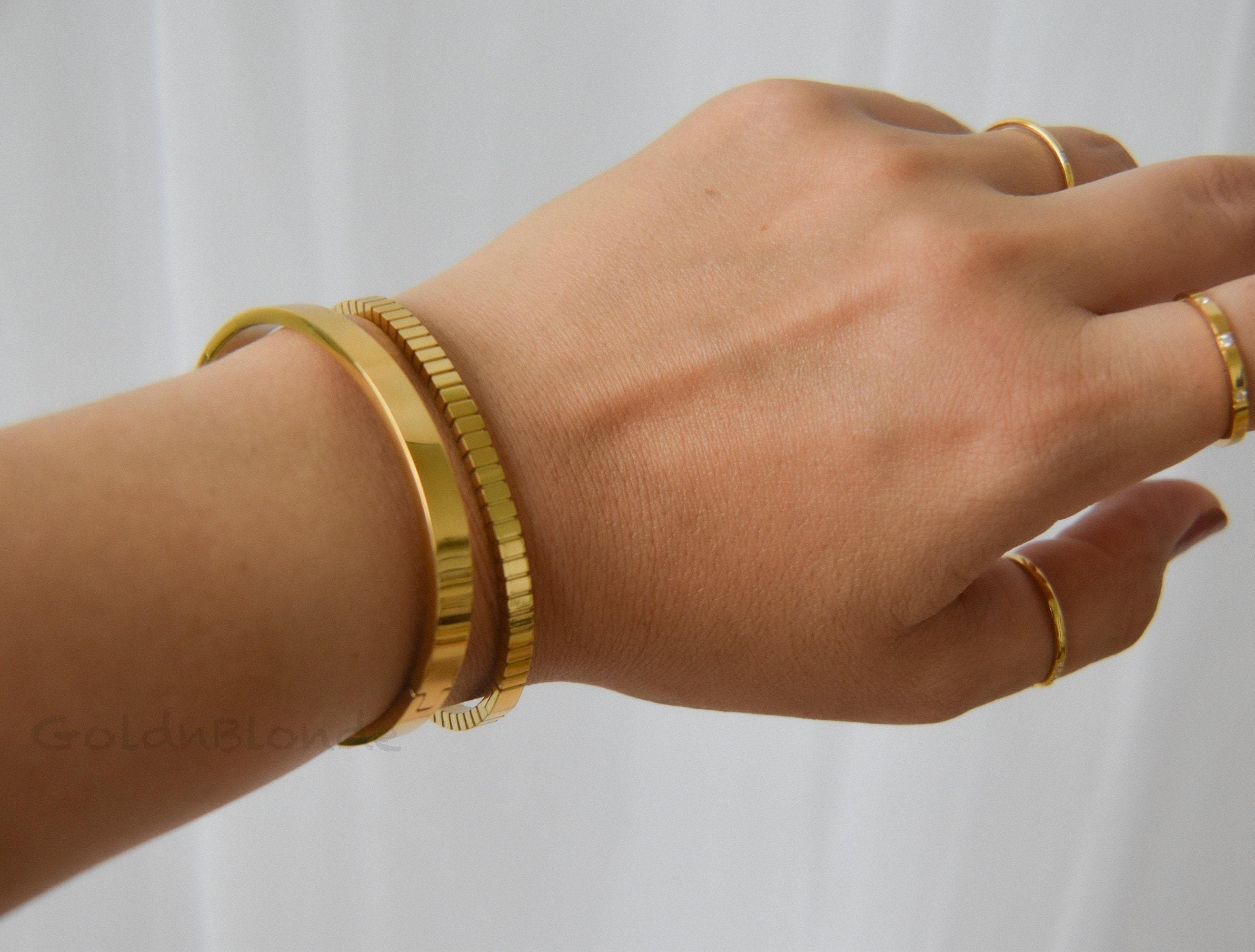 ✨These Elegant bracelets are made of 18K gold filled over Stainless Steel. This high tech gold coated stainless jewelry won't change color. Our jewelry is made to last, anti-tarnish, has unparalleled durability than a regular gold-plated material, perfect for everyday wear.