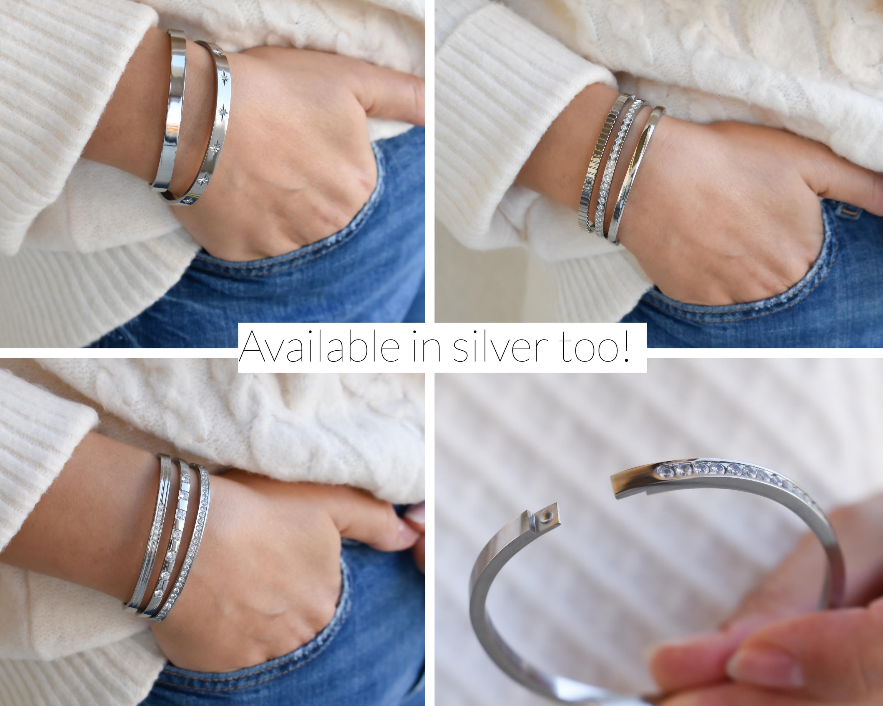 18K Gold Filled Bangle Cuff Diamond Bracelet Crystal Zircon Laid Bracelet Set Gift For Her Minimalist Jewelry WATERPROOF Bracelets