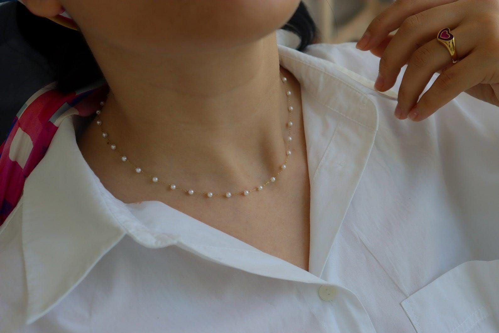 18K Gold PVD Electroplated Stainless Steel Waterproof Handmade Pearl Freshwater Chain Link Necklace for Women Gold Necklace Very Minimalist Elegant Dainty Chain Gift
