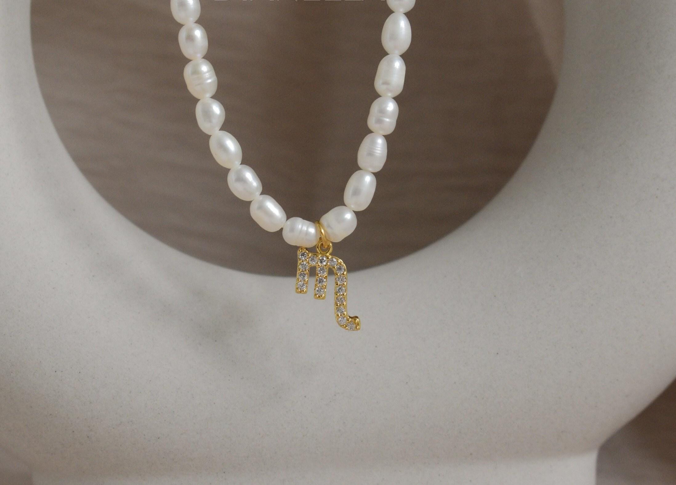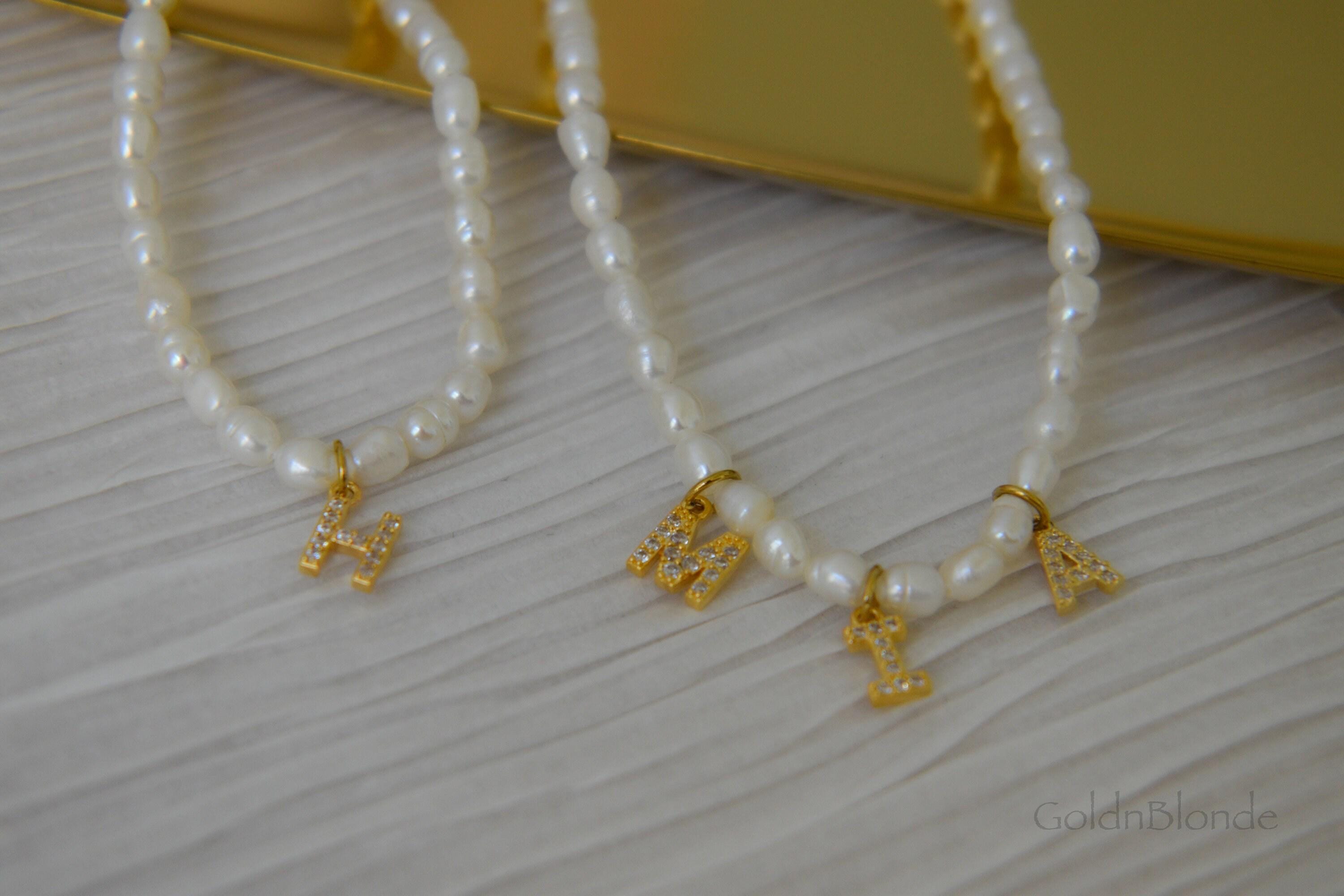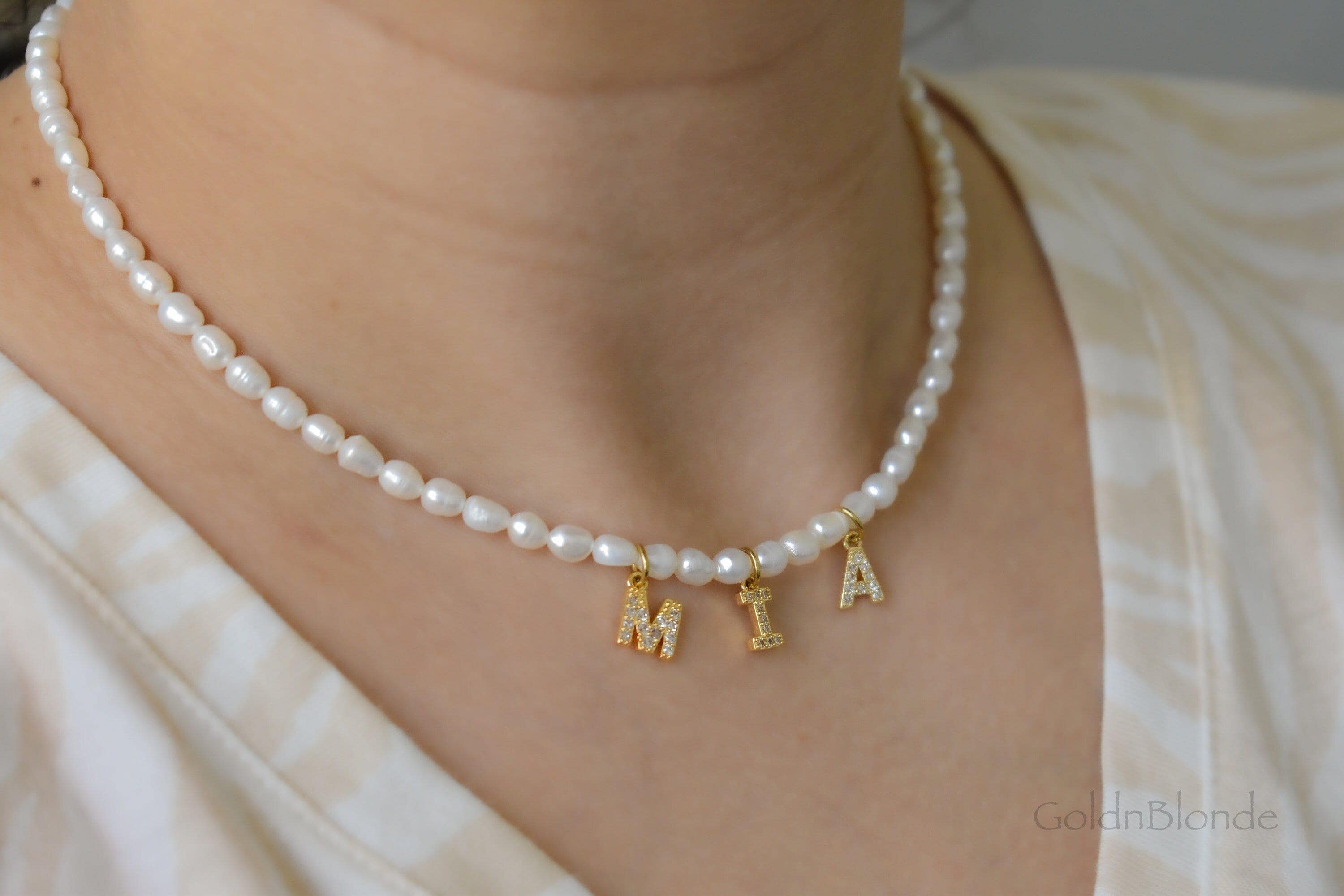 ✨Gold Mother of Pearl Letter Initial Necklace Pearl Choker Necklace Gold Anti Tarnish Jewelry Waterproof Necklace ✨