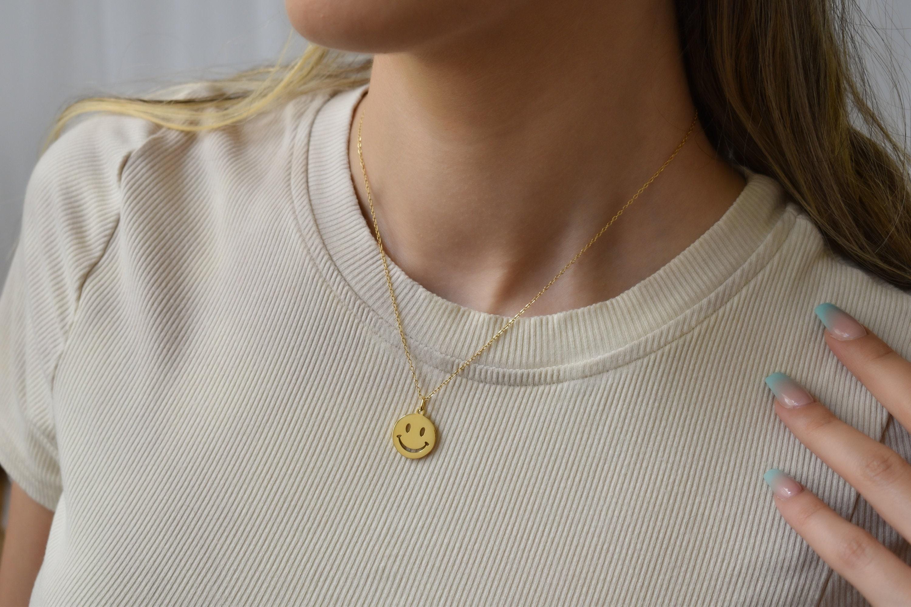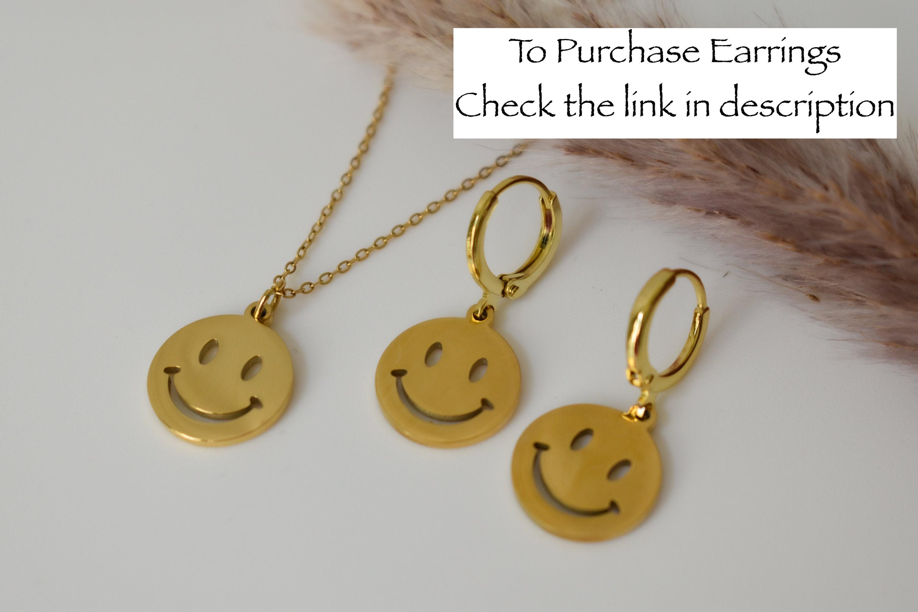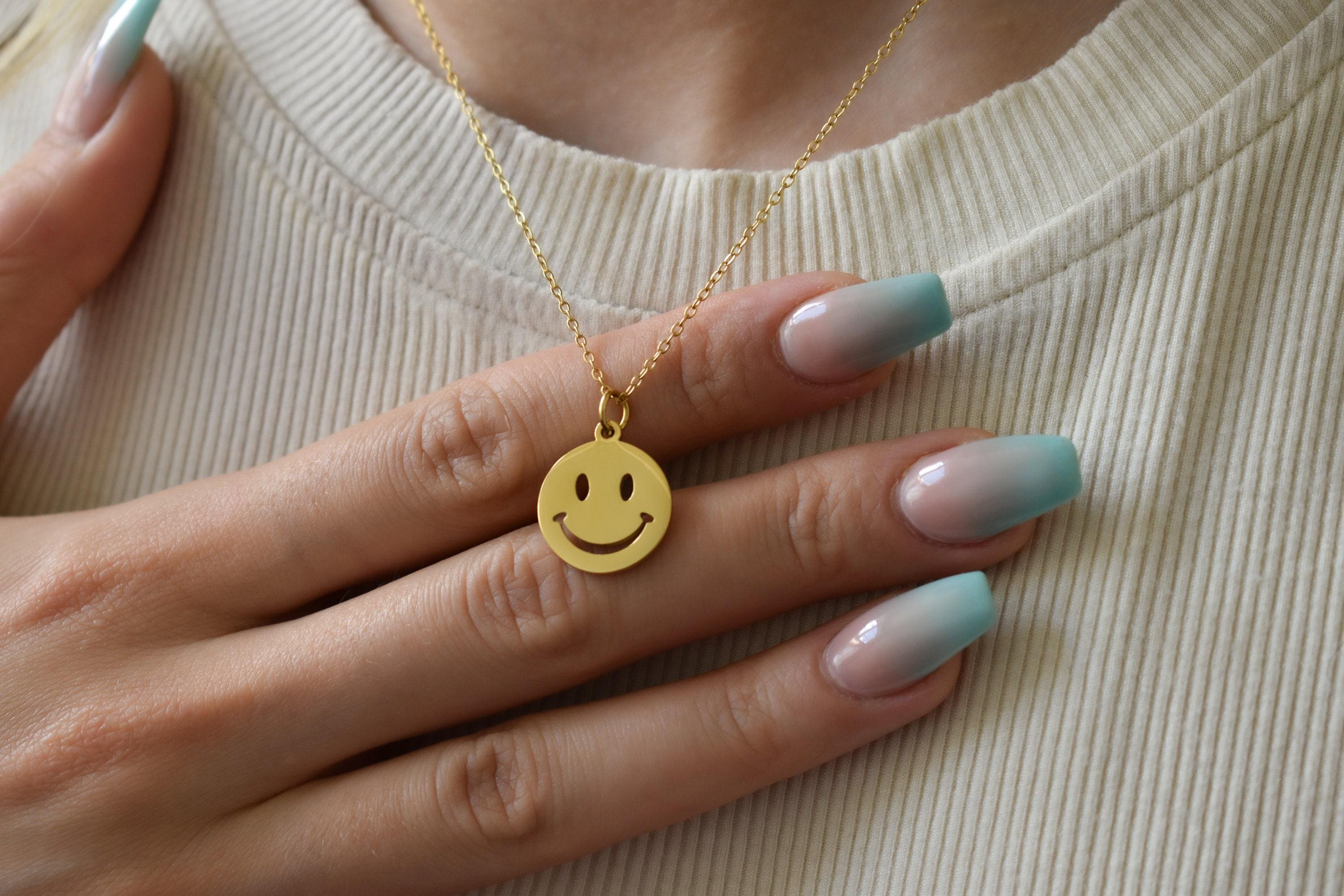 Gold Smiley Face Necklace Gold Jewelry Emoji Zircon Stone Crystal Gemstone Waterproof Jewelry Anti Tarnish Gift for Daughter Mom Her Friend✨