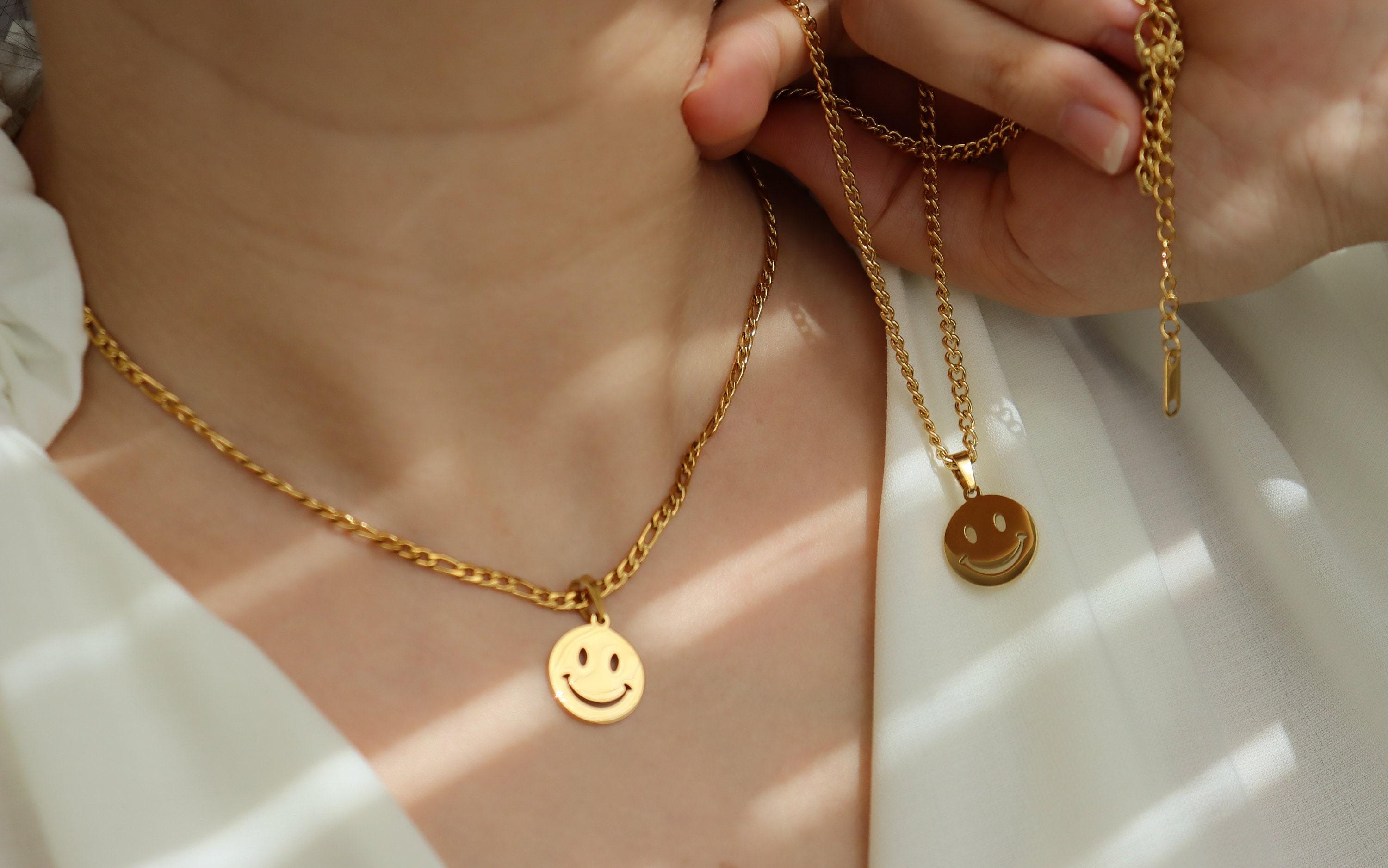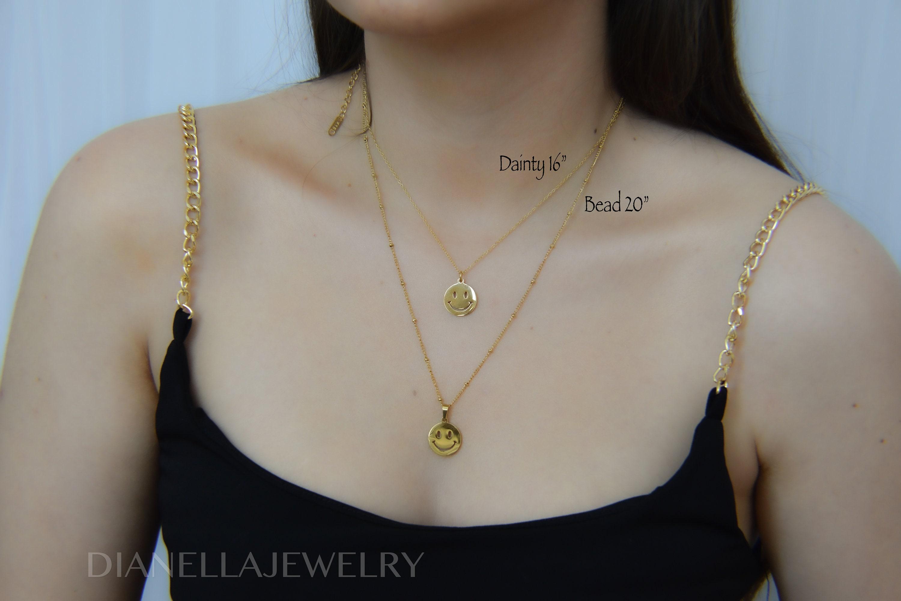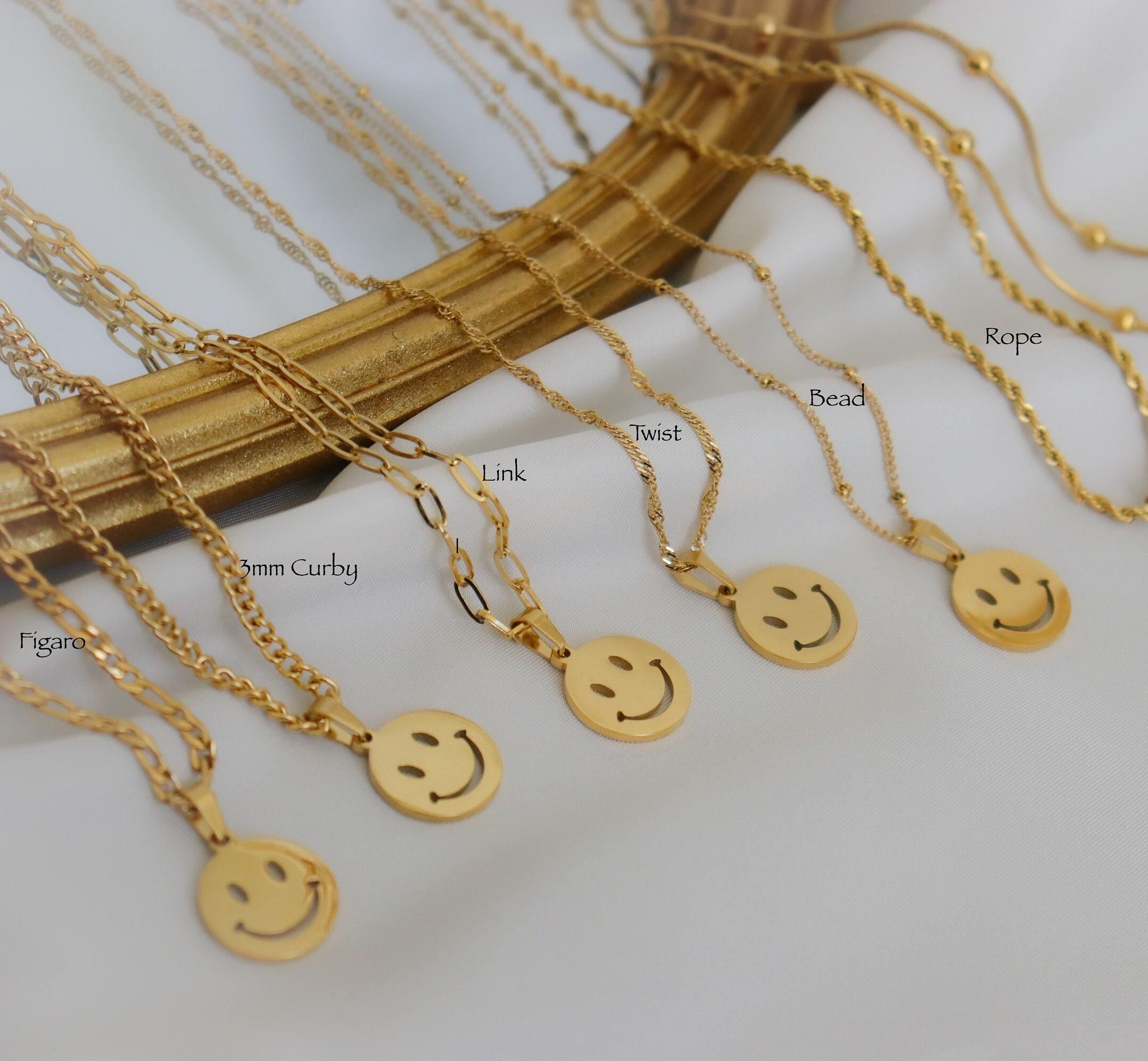 Gold Smiley Face Necklace Gold Jewelry Emoji Zircon Stone Crystal Gemstone Waterproof Jewelry Anti Tarnish Gift for Daughter Mom Her Friend✨