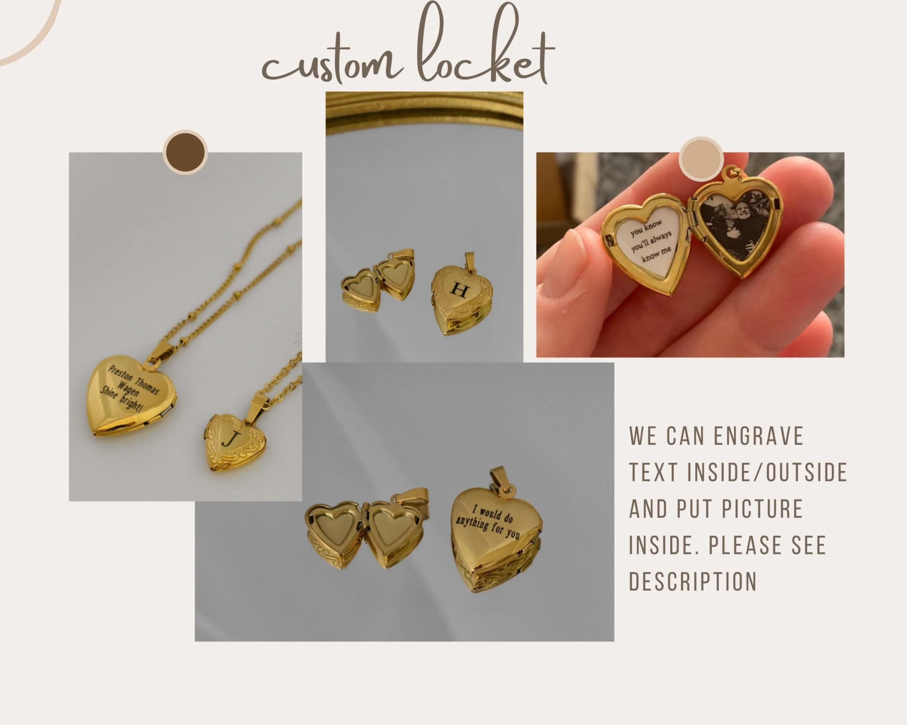 If you want a picture added, Send us Pictures on Etsy Messages after purchasing. We can print and cut it for free. Large lockets are best for adding up to two pictures on either side of the locket's inside.