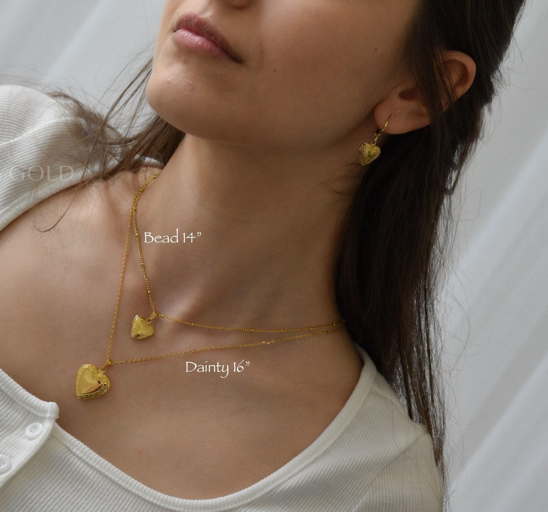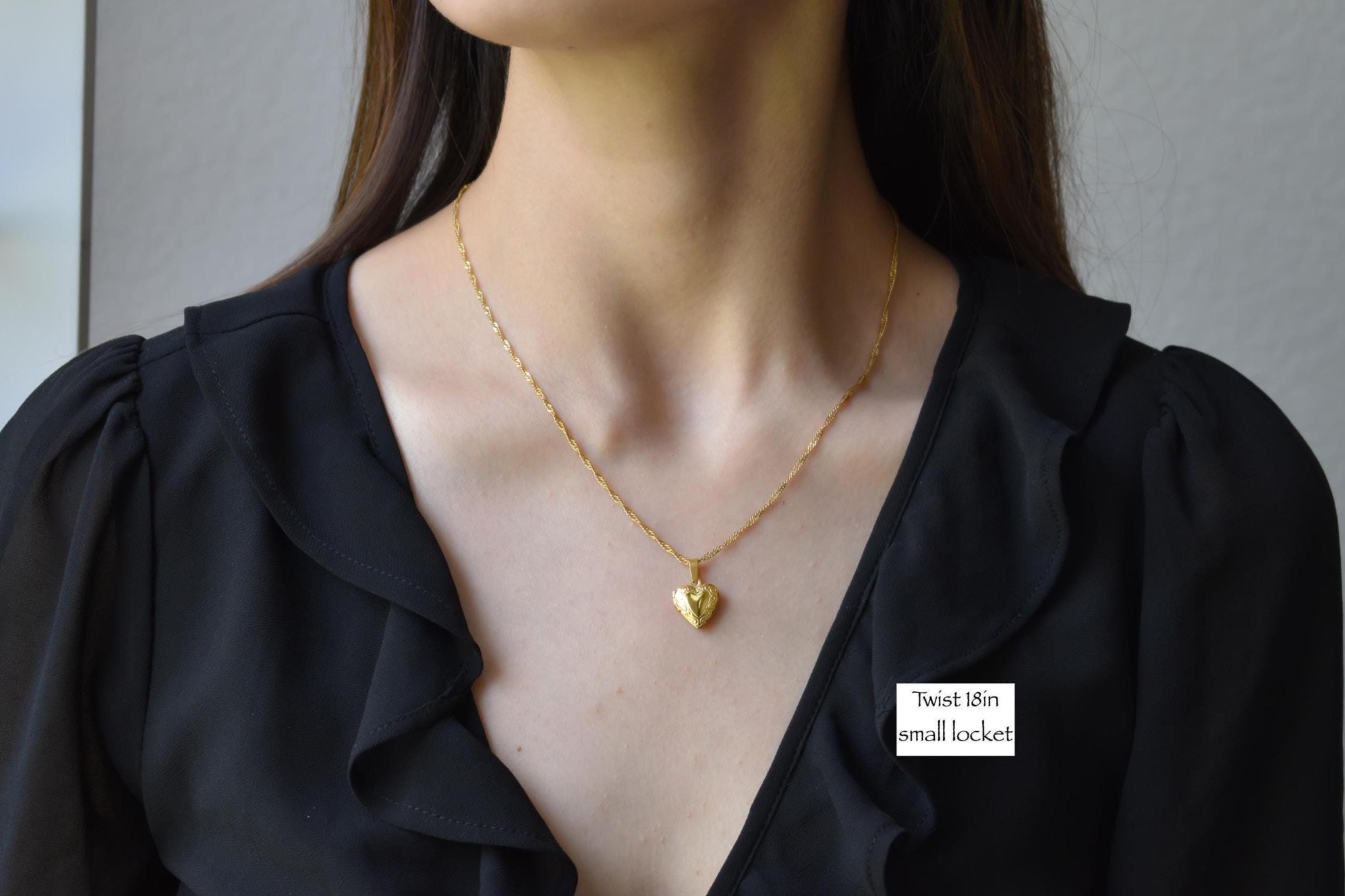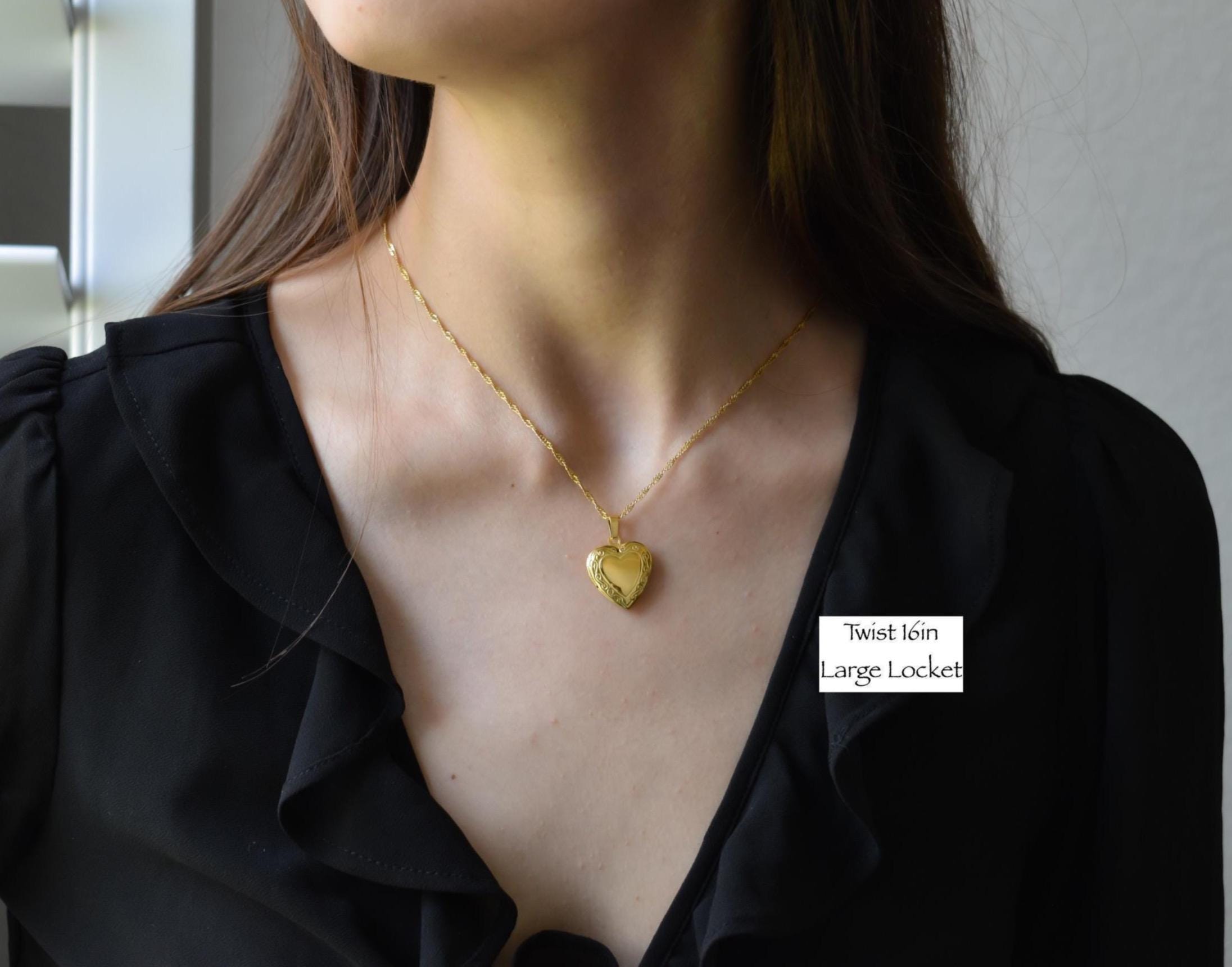18k Gold Heart Locket Gold Necklace, can include picture Inside, Picture Necklace Dog Friends Mom Picture Necklaces Gifts for Her Woman Love