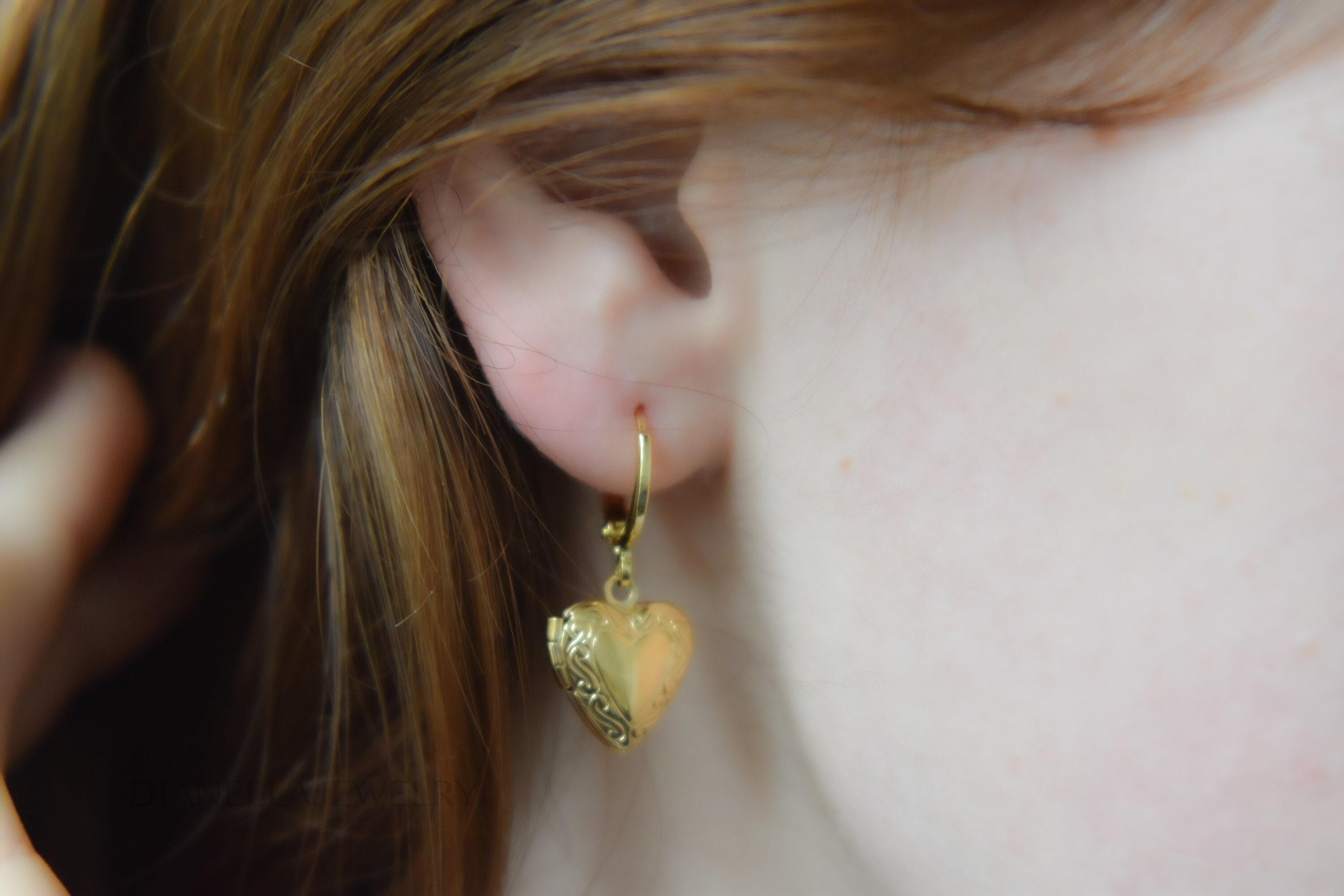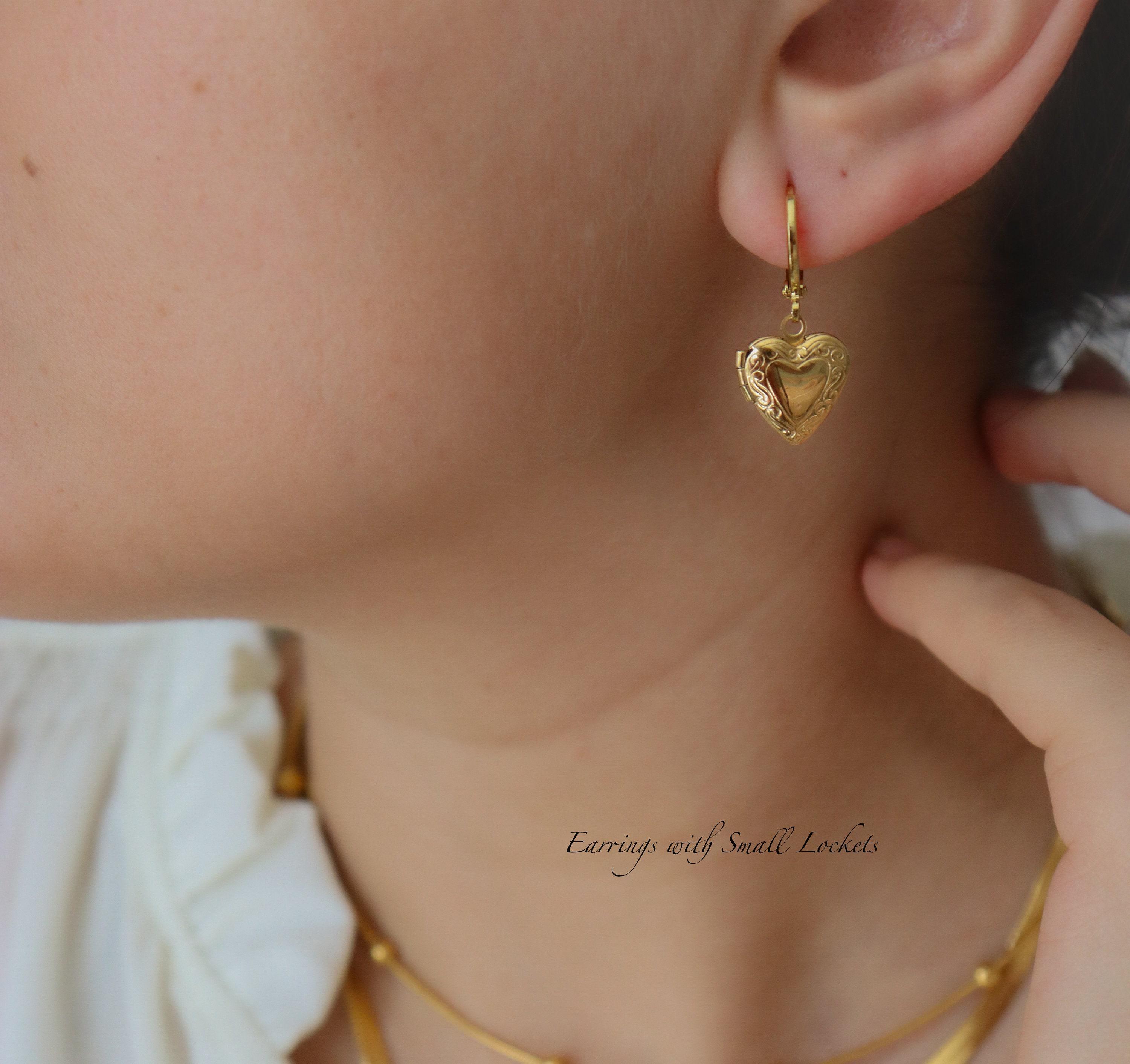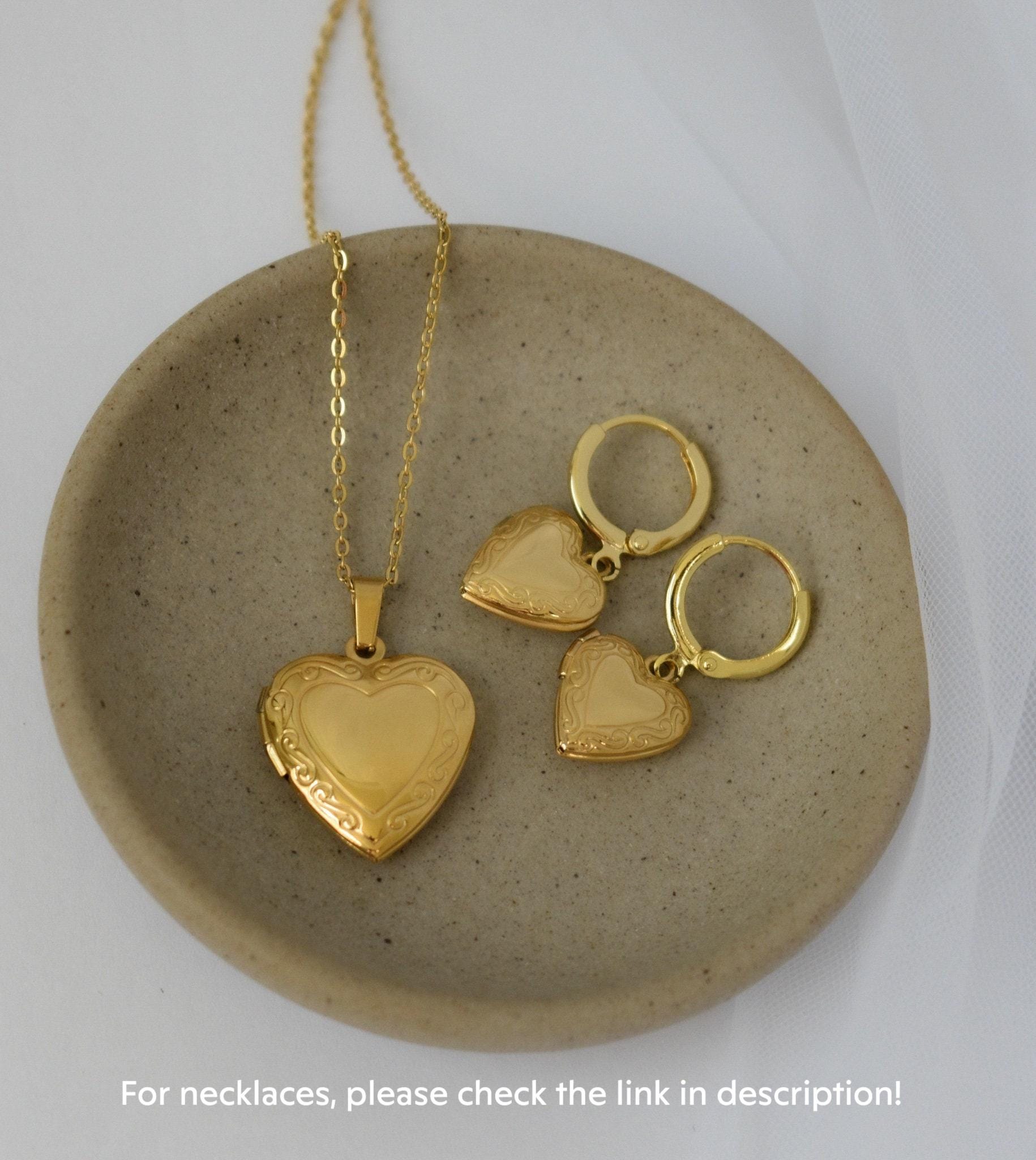 18k Gold Heart Locket Gold Earrings, Necklace, can include picture Inside, Picture Necklace Dog Friends Mom Picture Necklaces Gifts for Her Woman Love