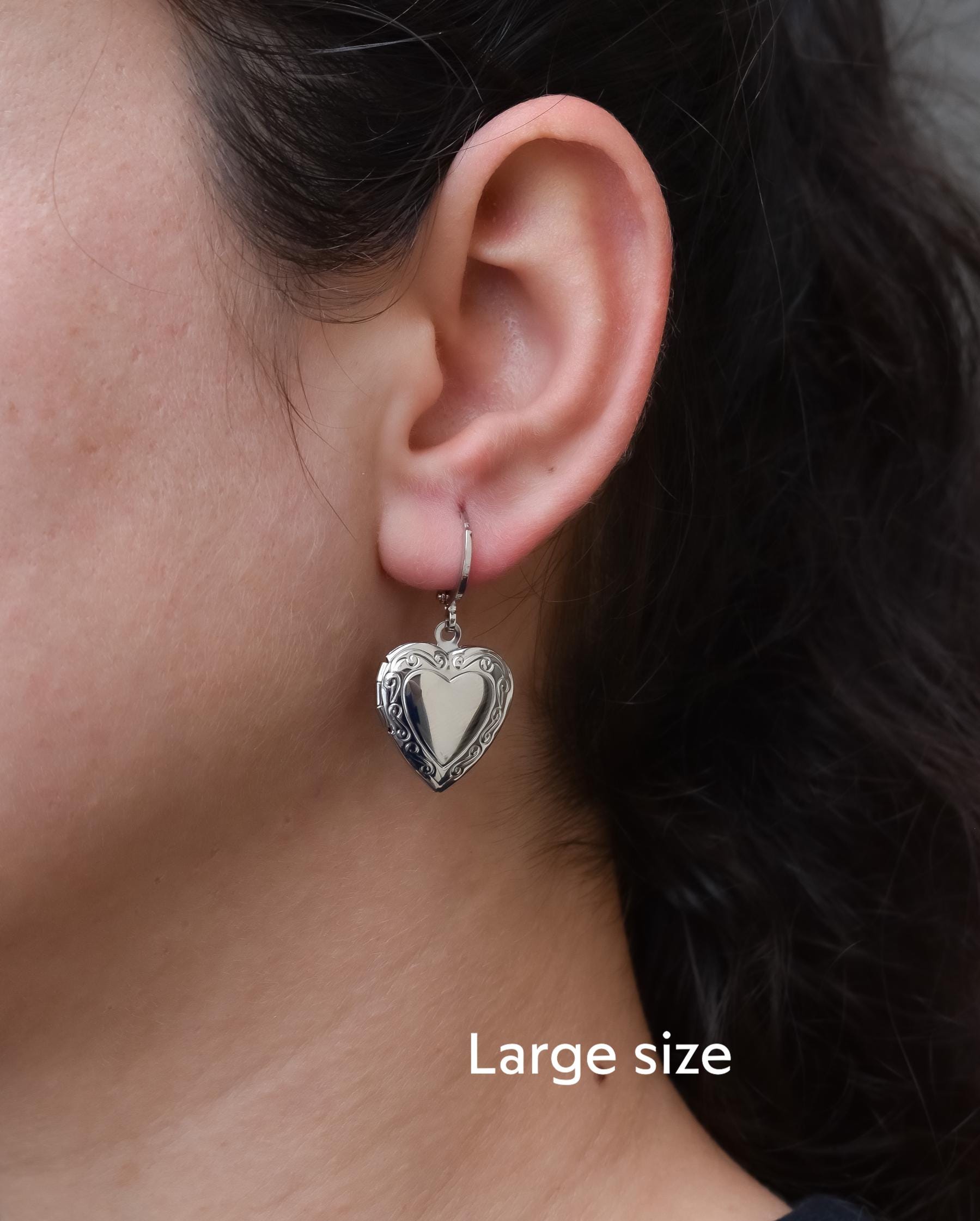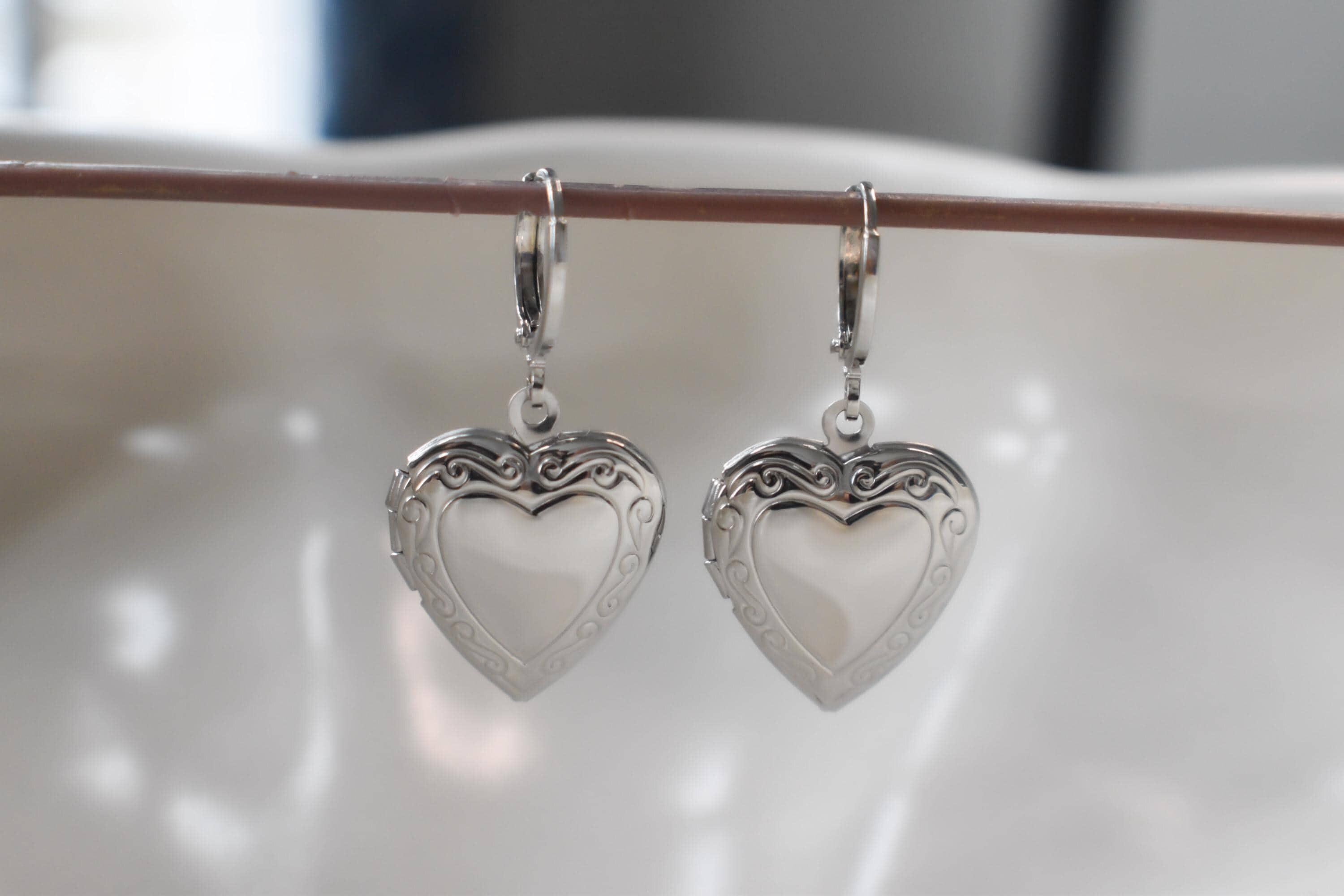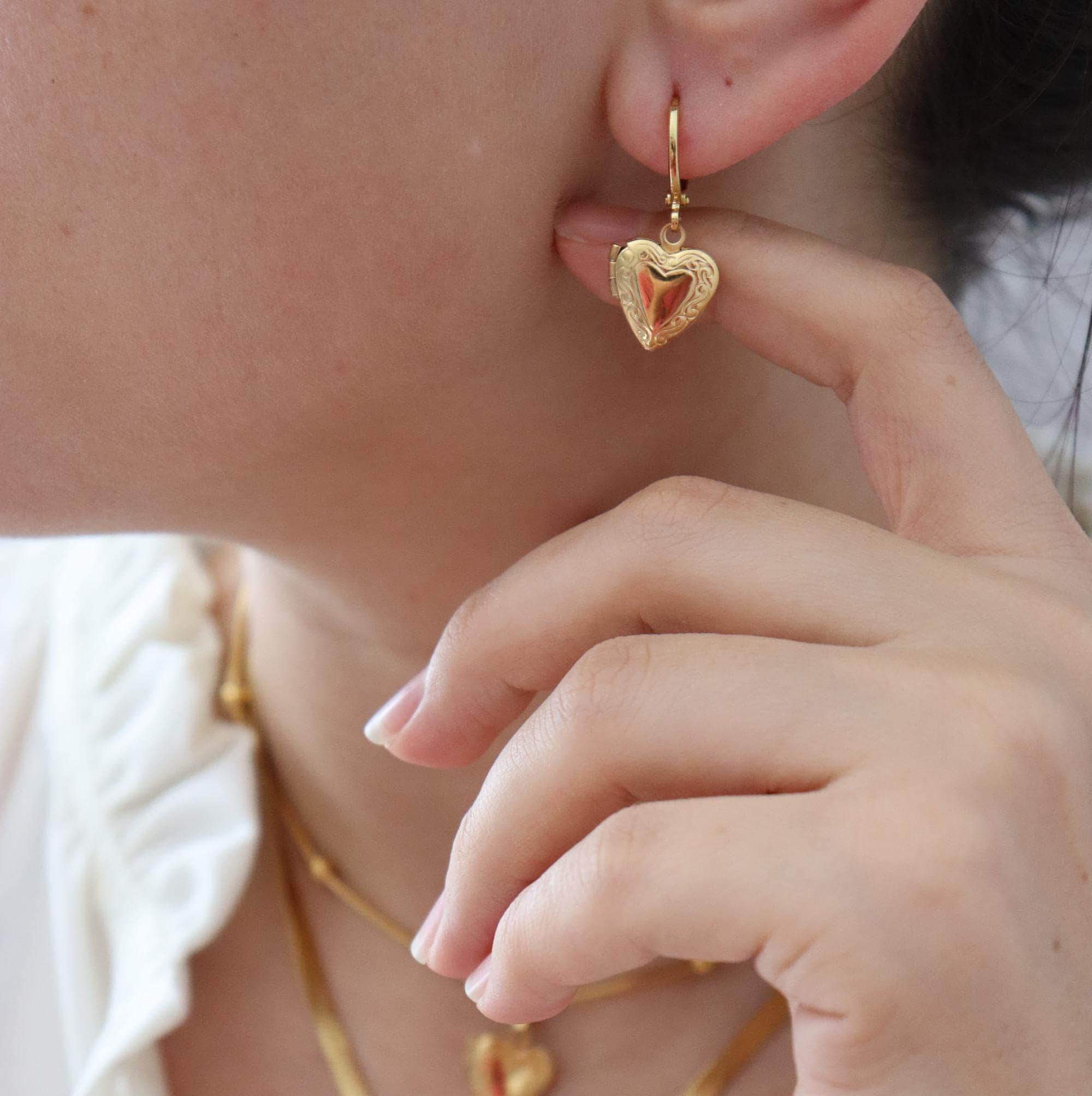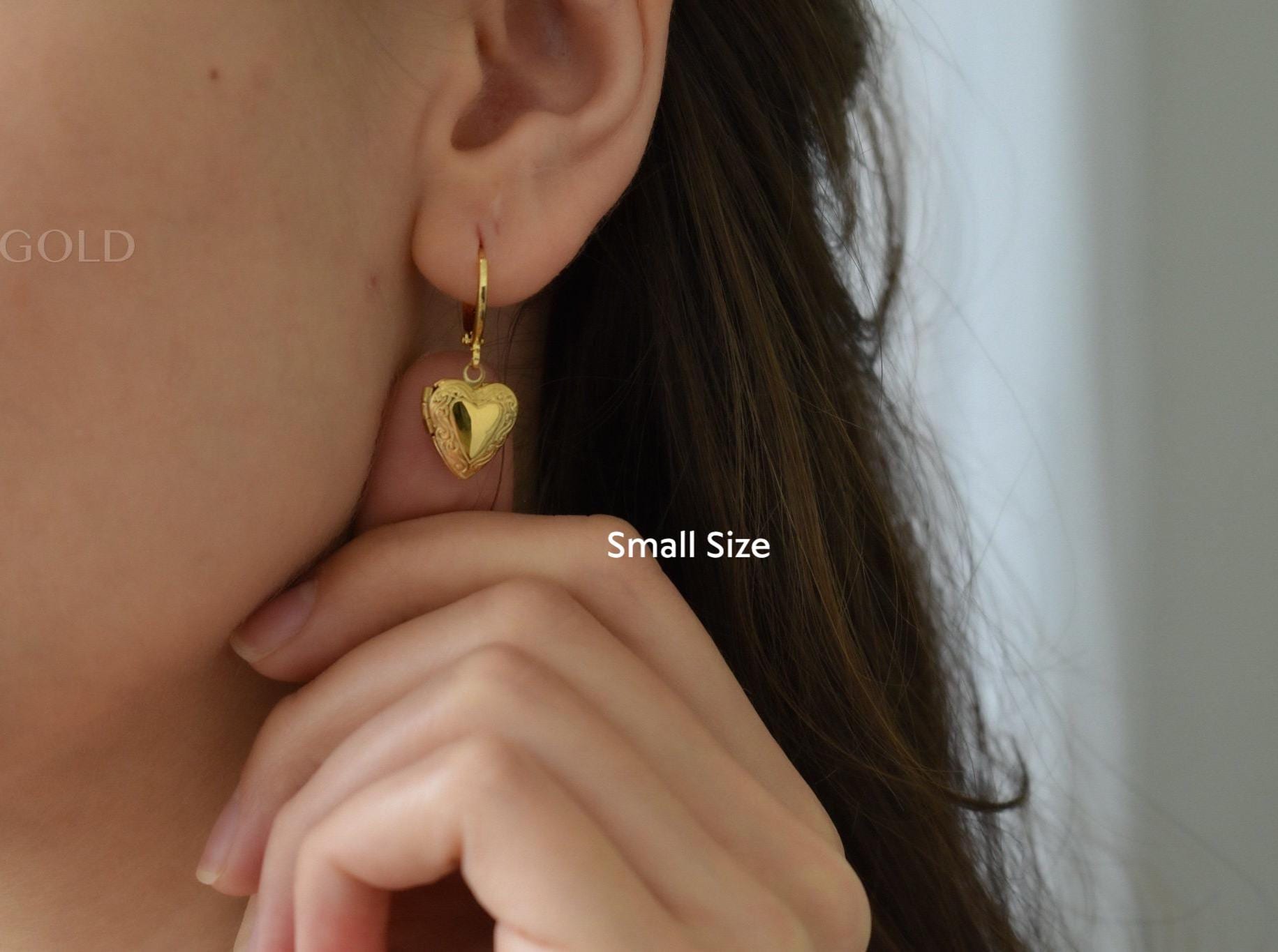18k Gold Heart Locket Gold Earrings, Necklace, can include picture Inside, Picture Necklace Dog Friends Mom Picture Necklaces Gifts for Her Woman Love