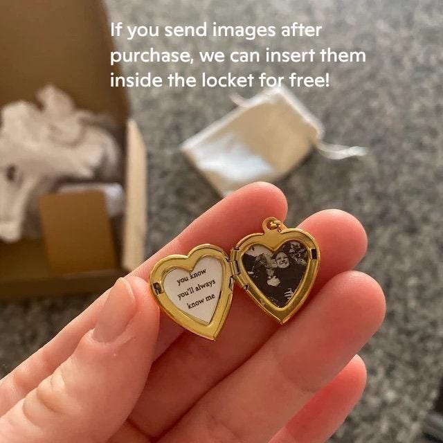 If you want a picture added, Send us Pictures on Etsy Messages after purchasing. We can print and cut it for free. Large lockets are best for adding up to two pictures on either side of the locket's inside.