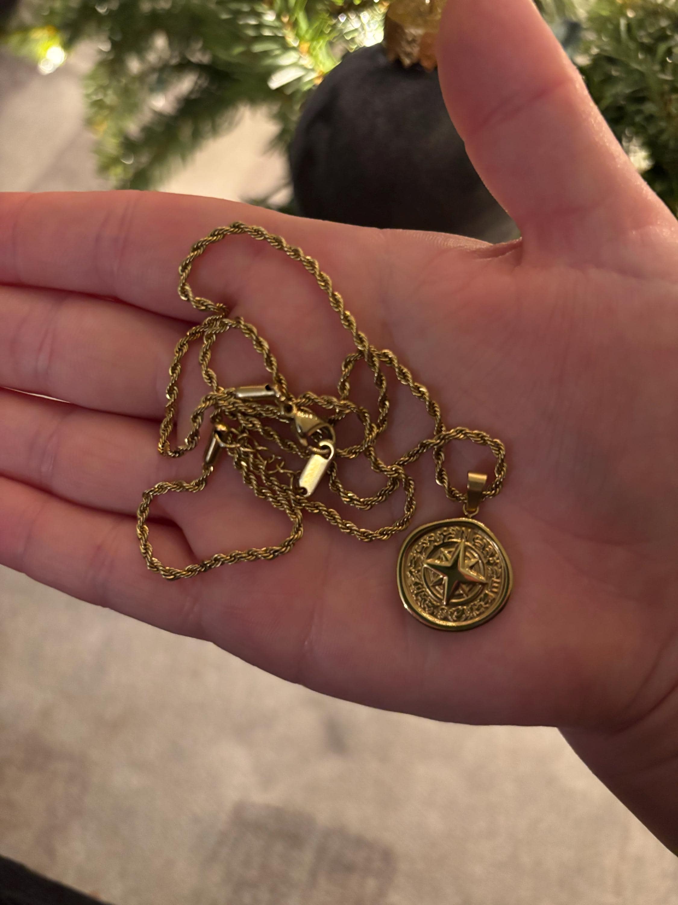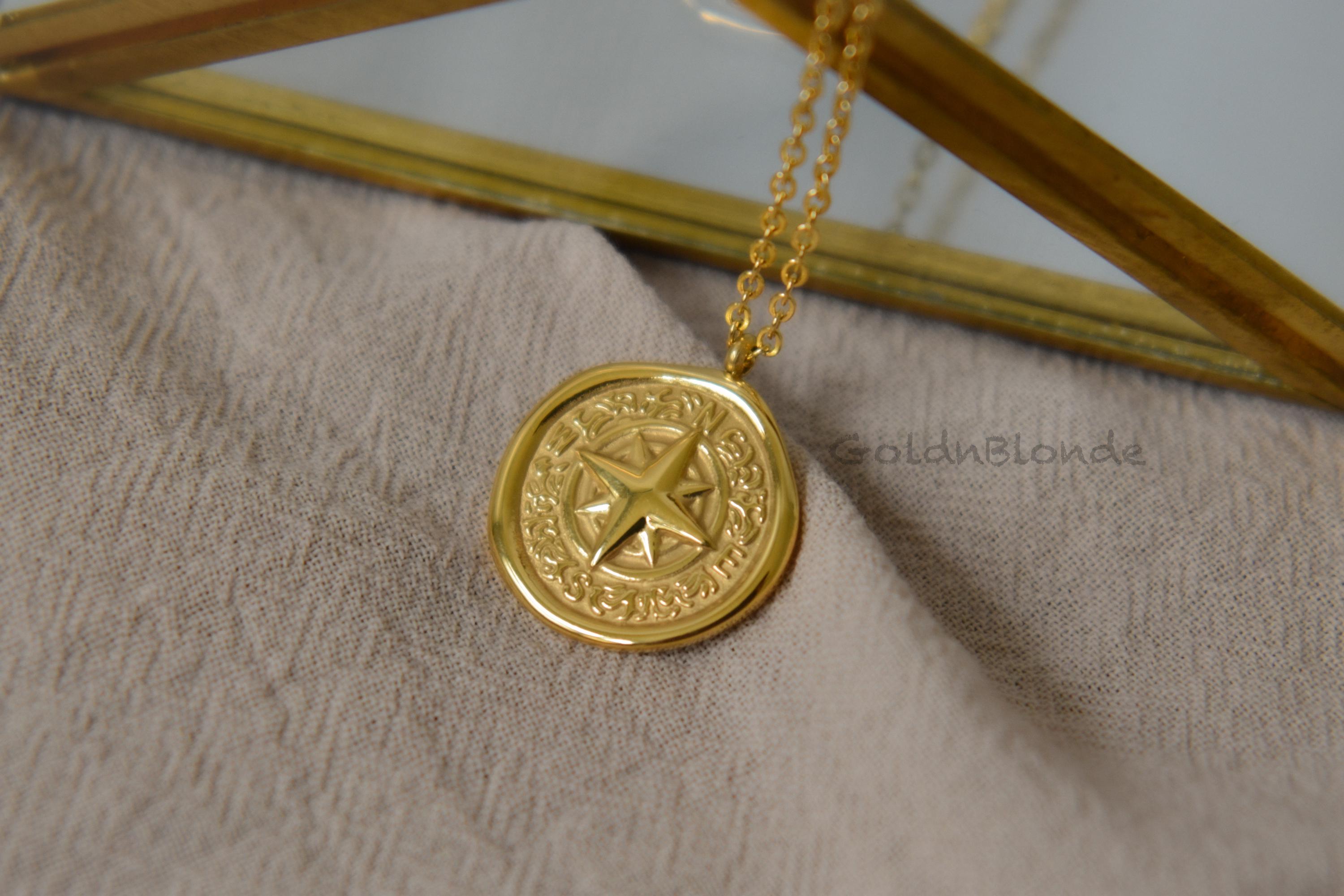 This is a gorgeous necklace, heavy and well made. I wanted a compass pendant and so many from other shops all look the same, but this one is unique. The colour is nice too - gold, but not too yellow. Shipping was fast to Canada, and with the note, extras and free engraving, I can tell the shop owners really value good customer service. Highly recommended! :)