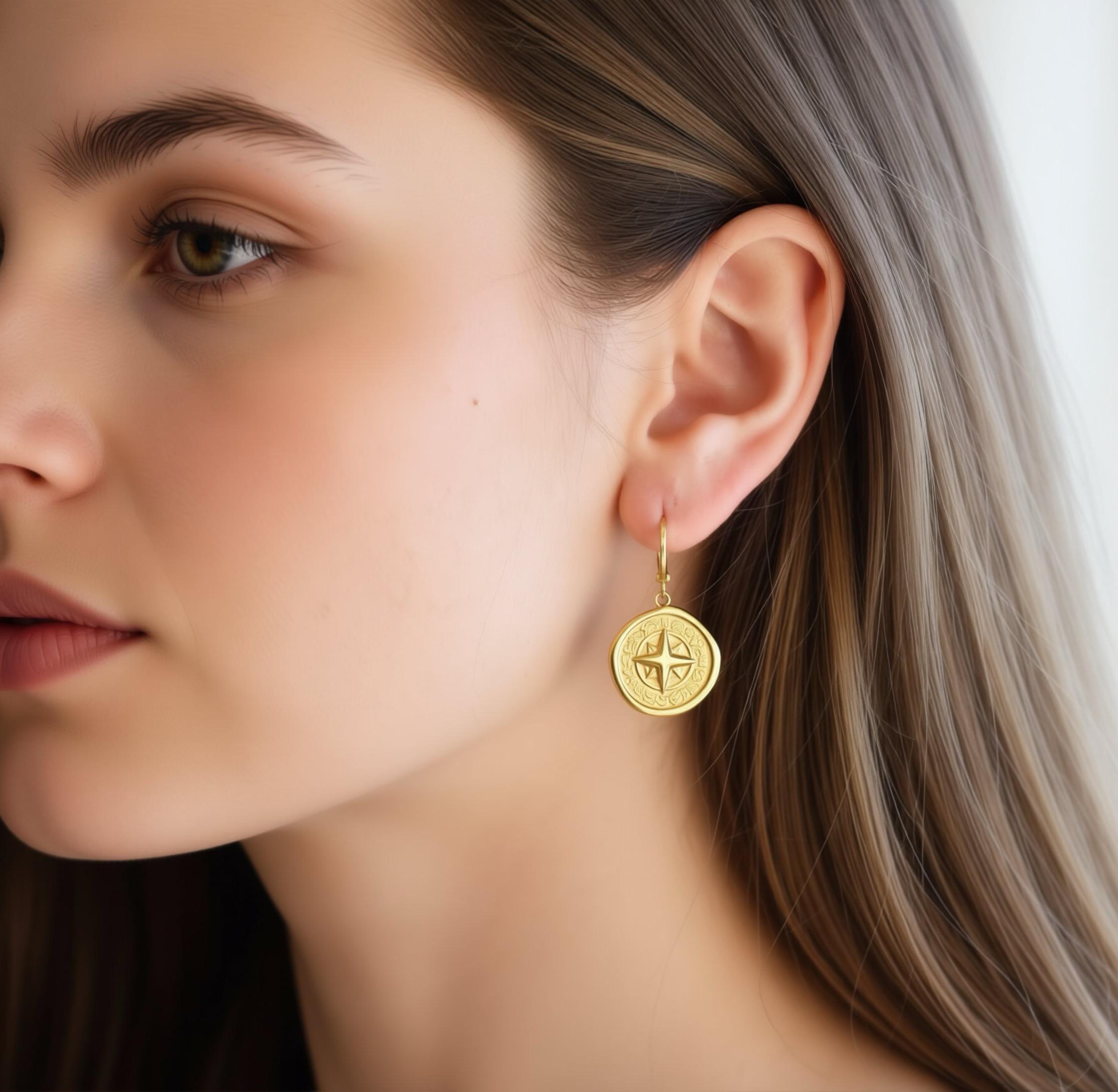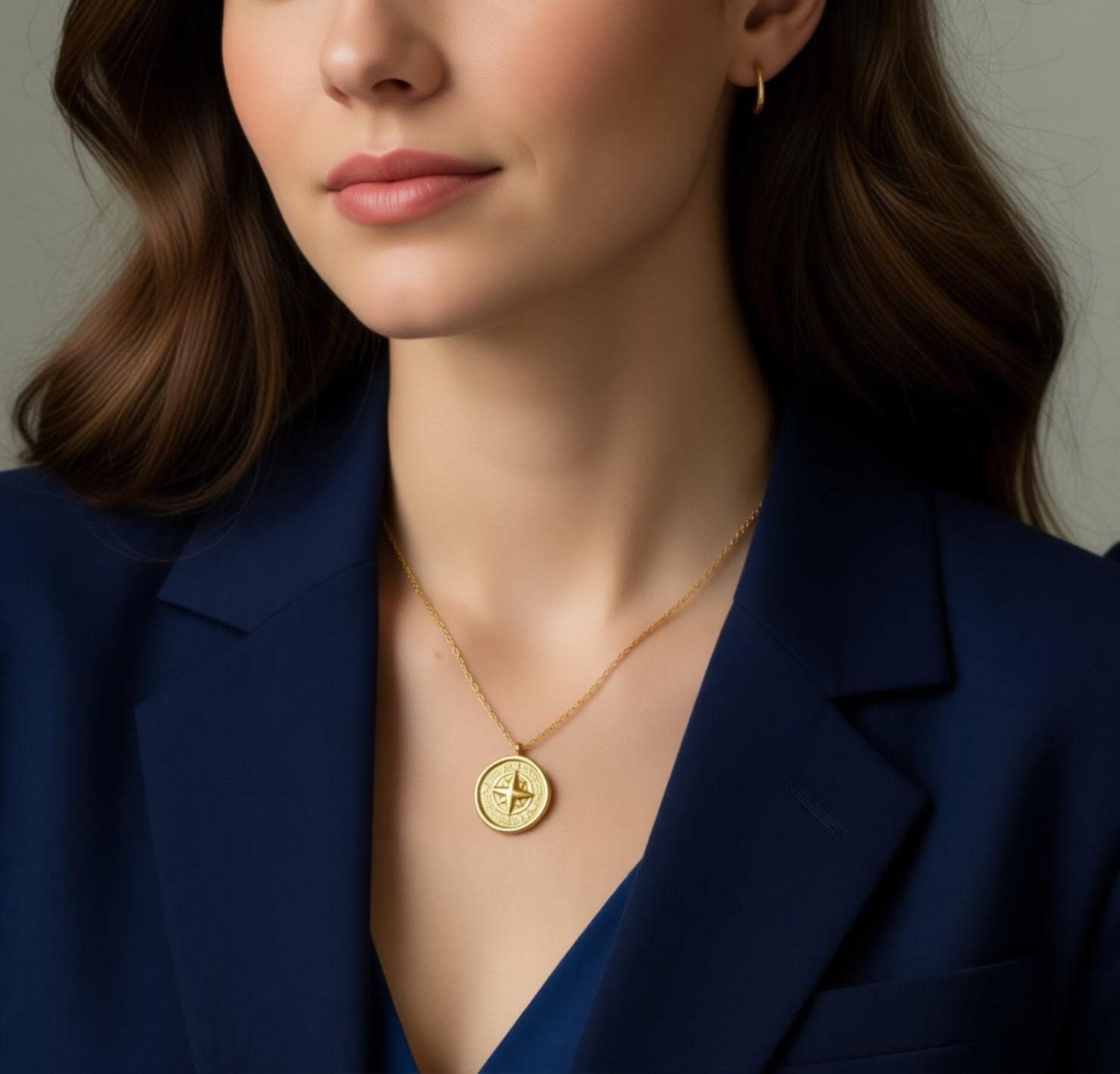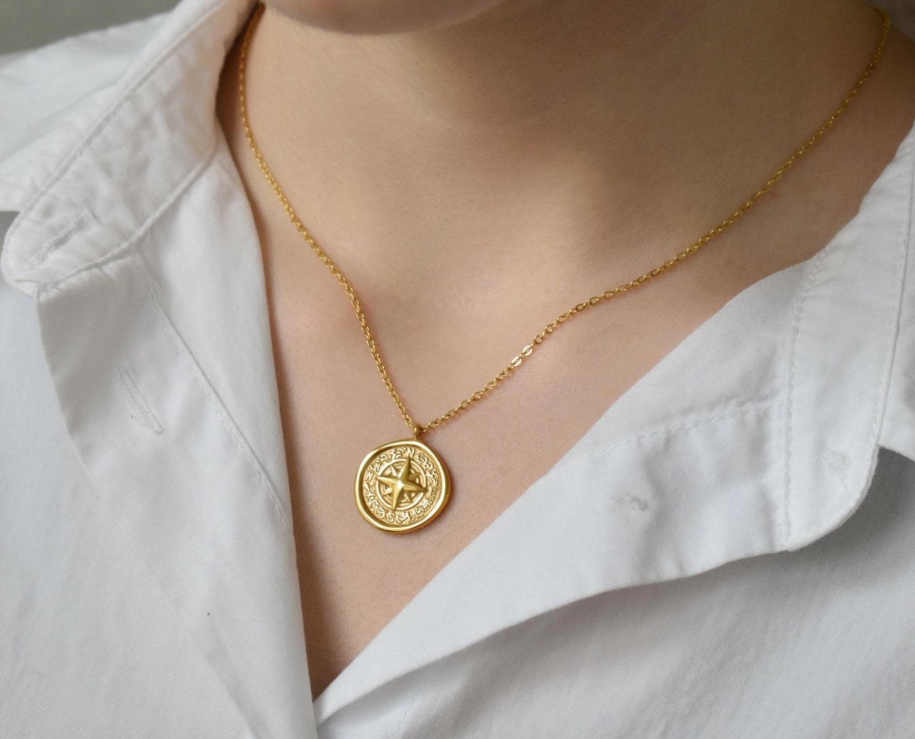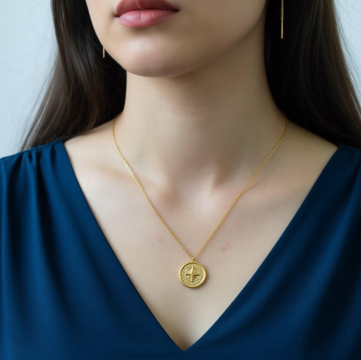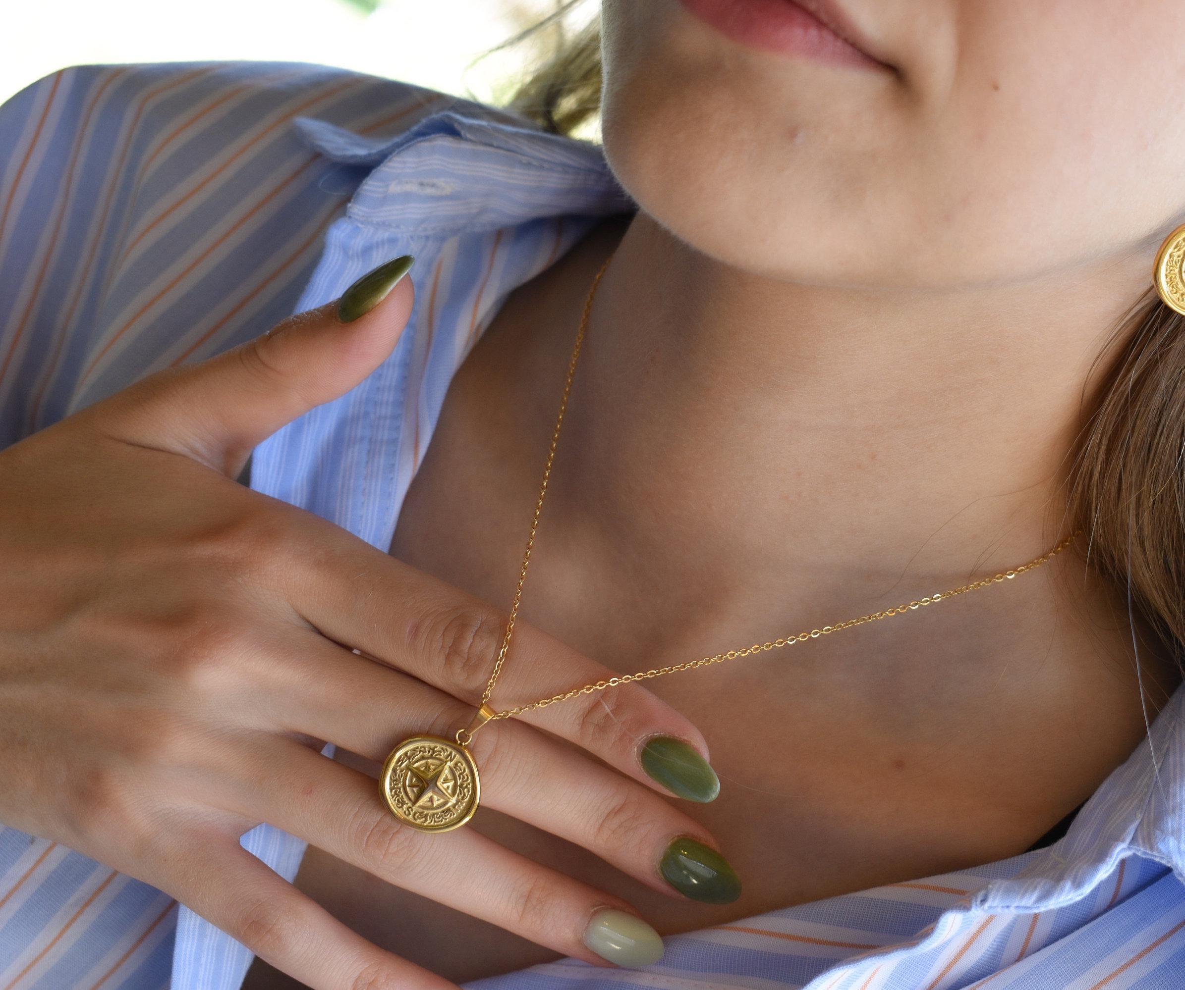 18k Gold Circle Compass Charm Necklaces Non Tarnish Waterproof Pendant Chain Coordinate Compass North South Minimalist Jewelry ✨