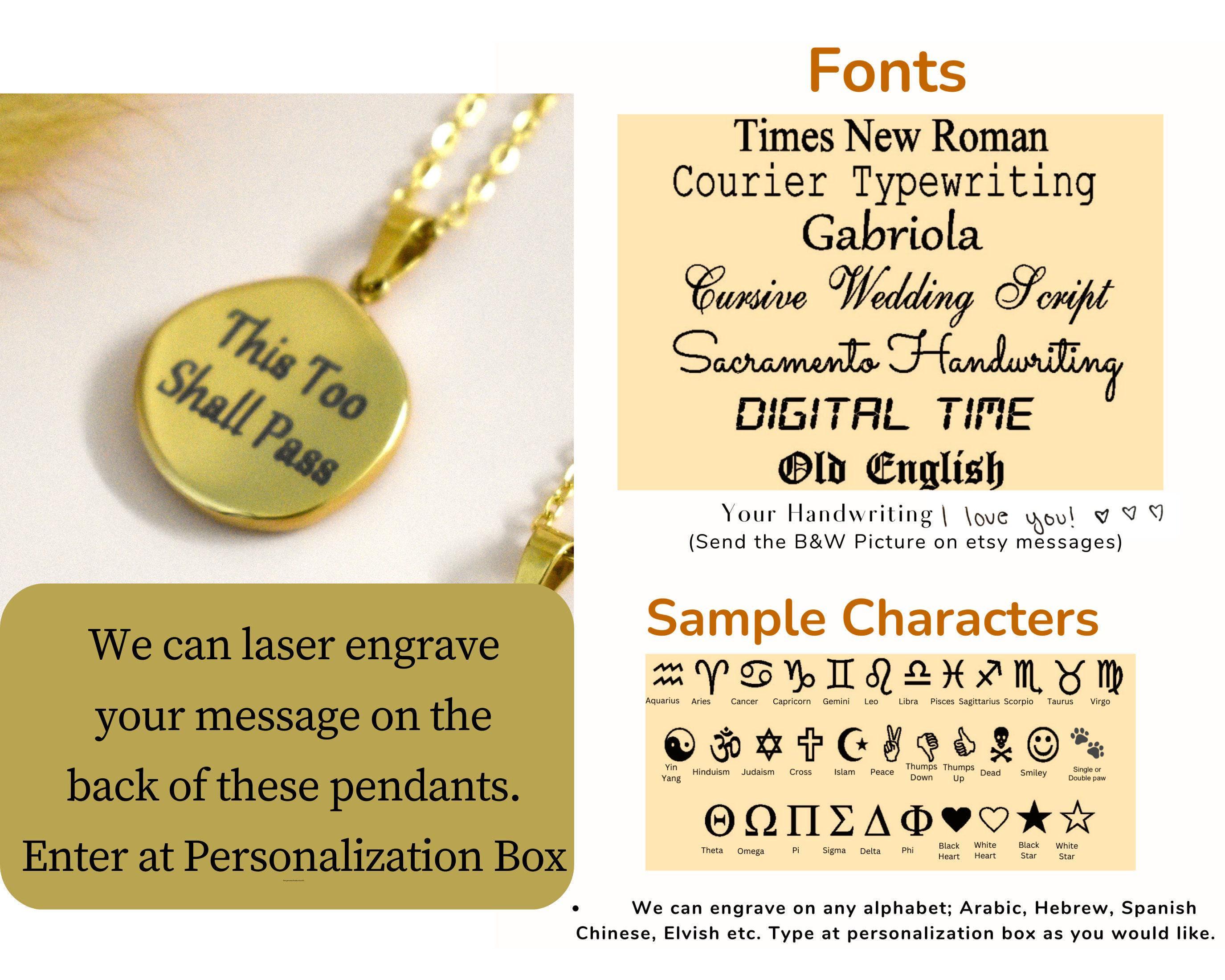 We can laser engrave on the back side of the pendants free of charge.