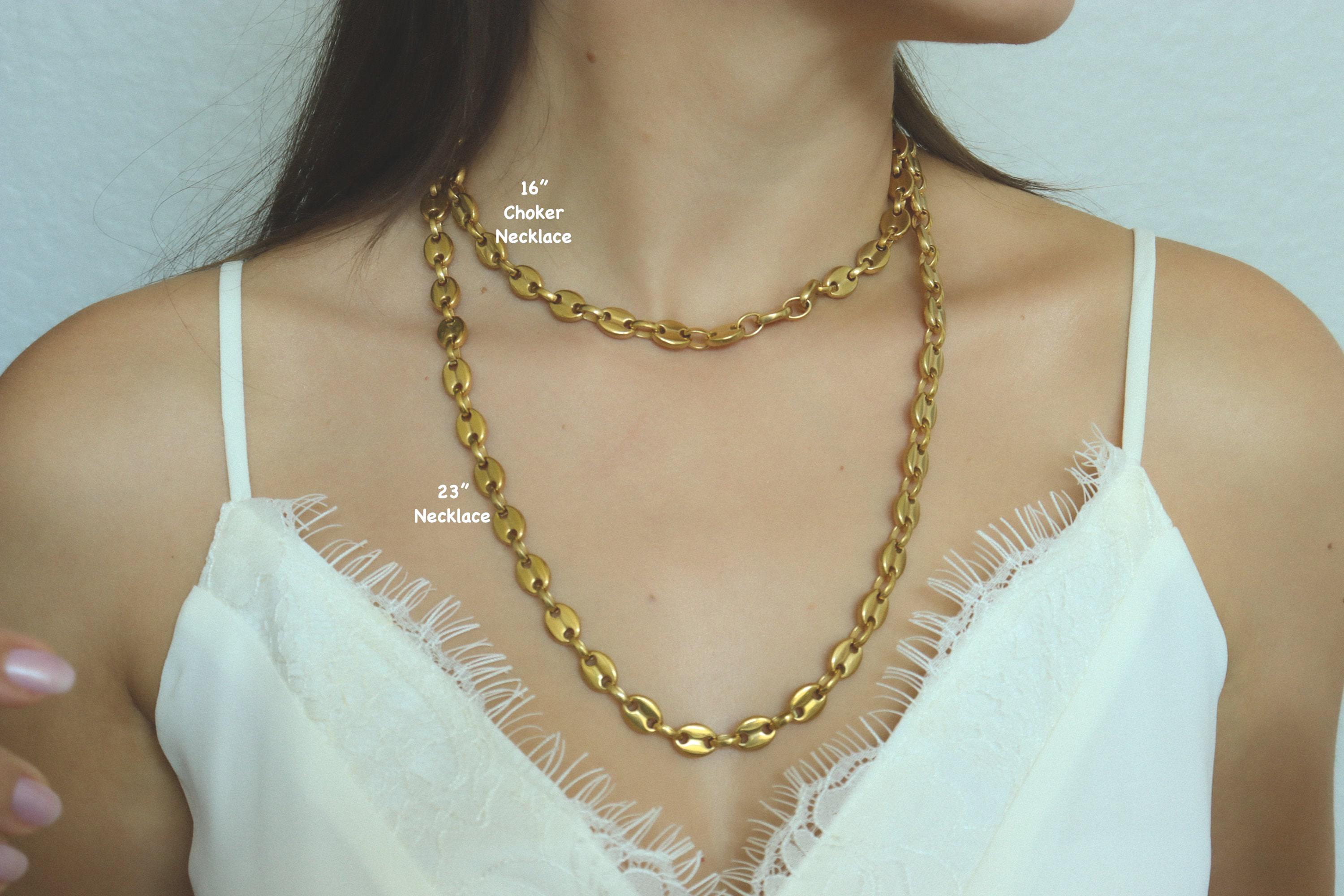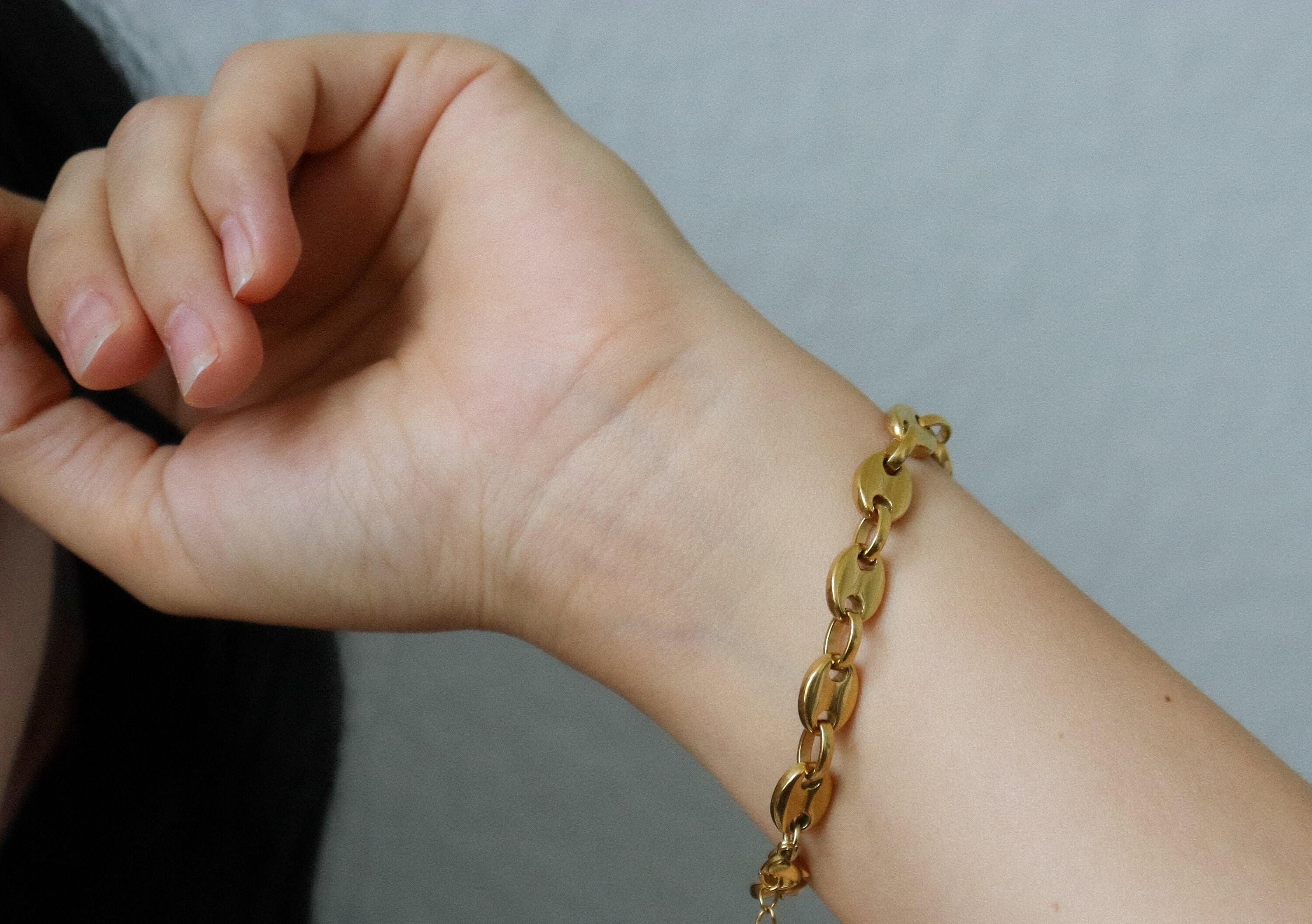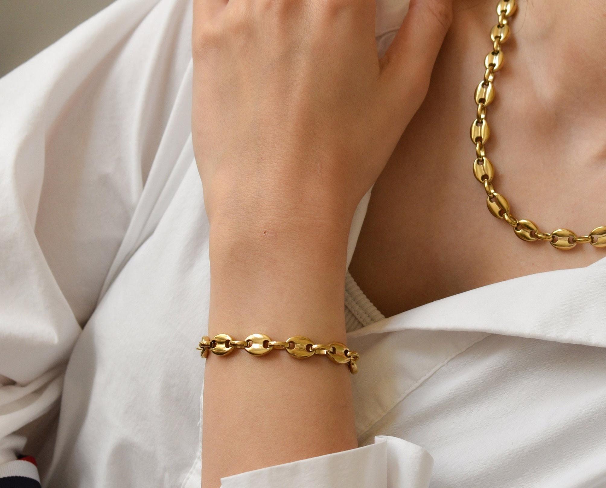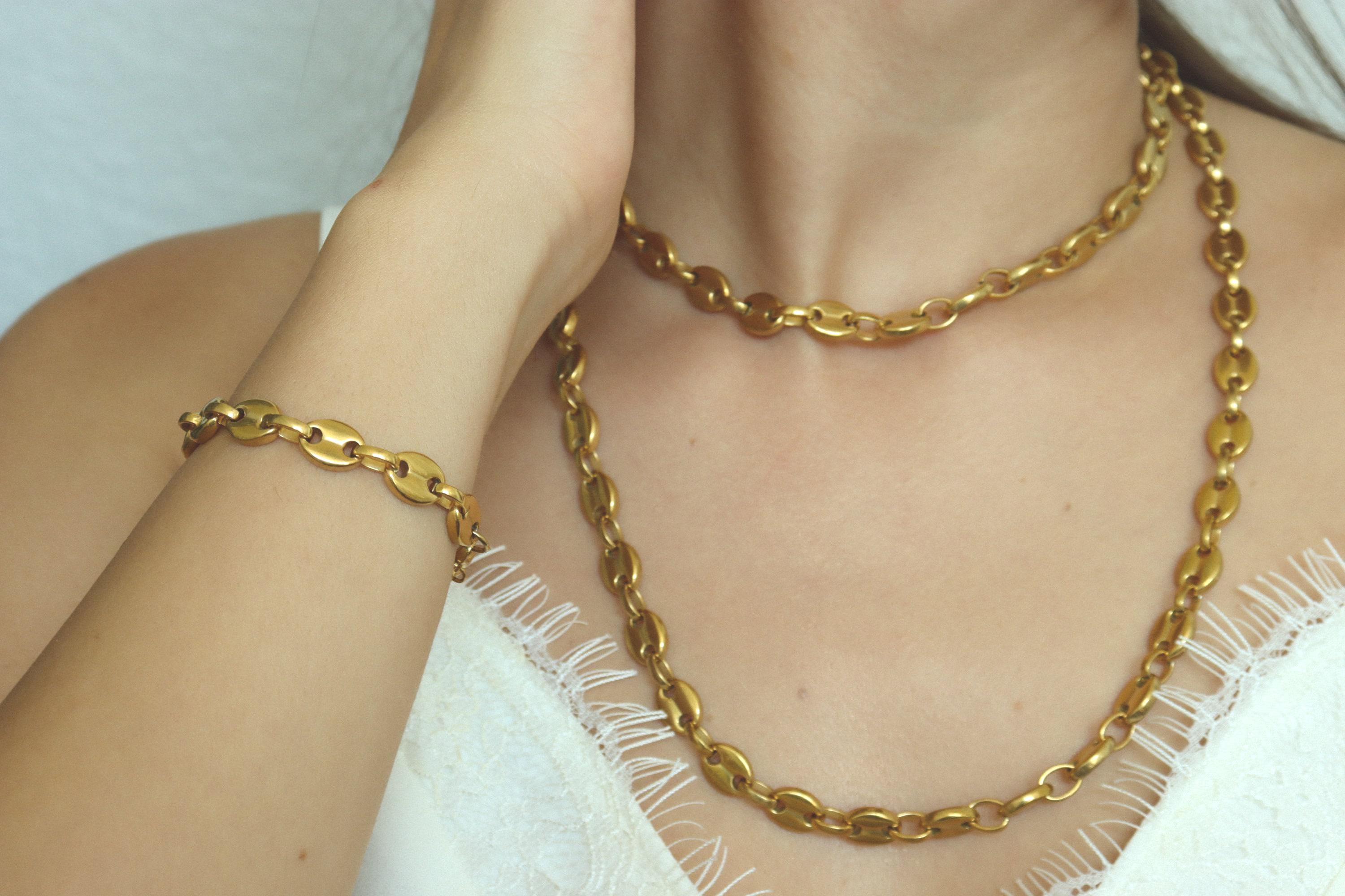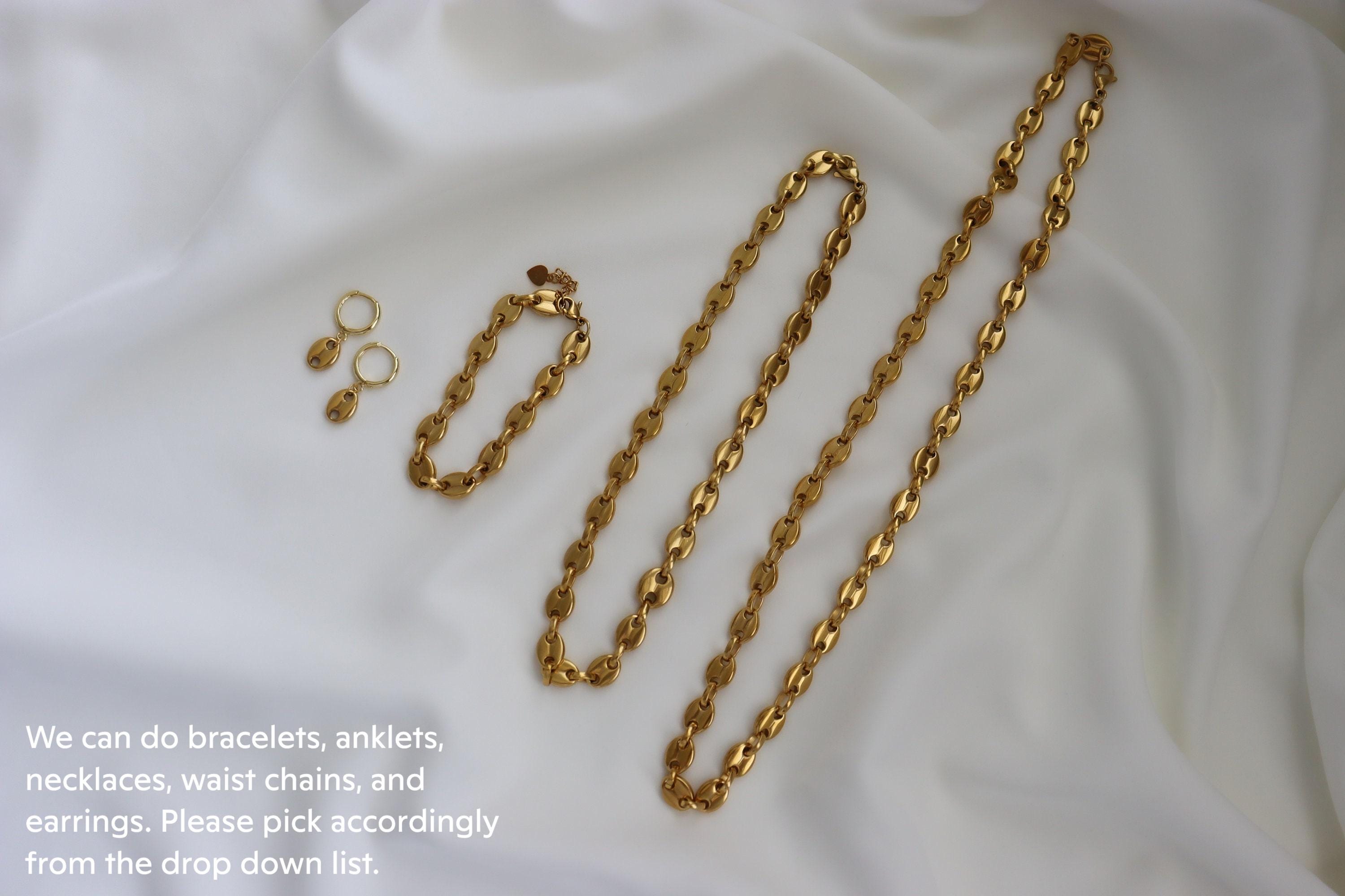 GOLD COFFEE BEAN NECKLACE THICK CHUNKY NECKLACE, PIG NOSE CHAIN BRACELET, MEN BRACELET
