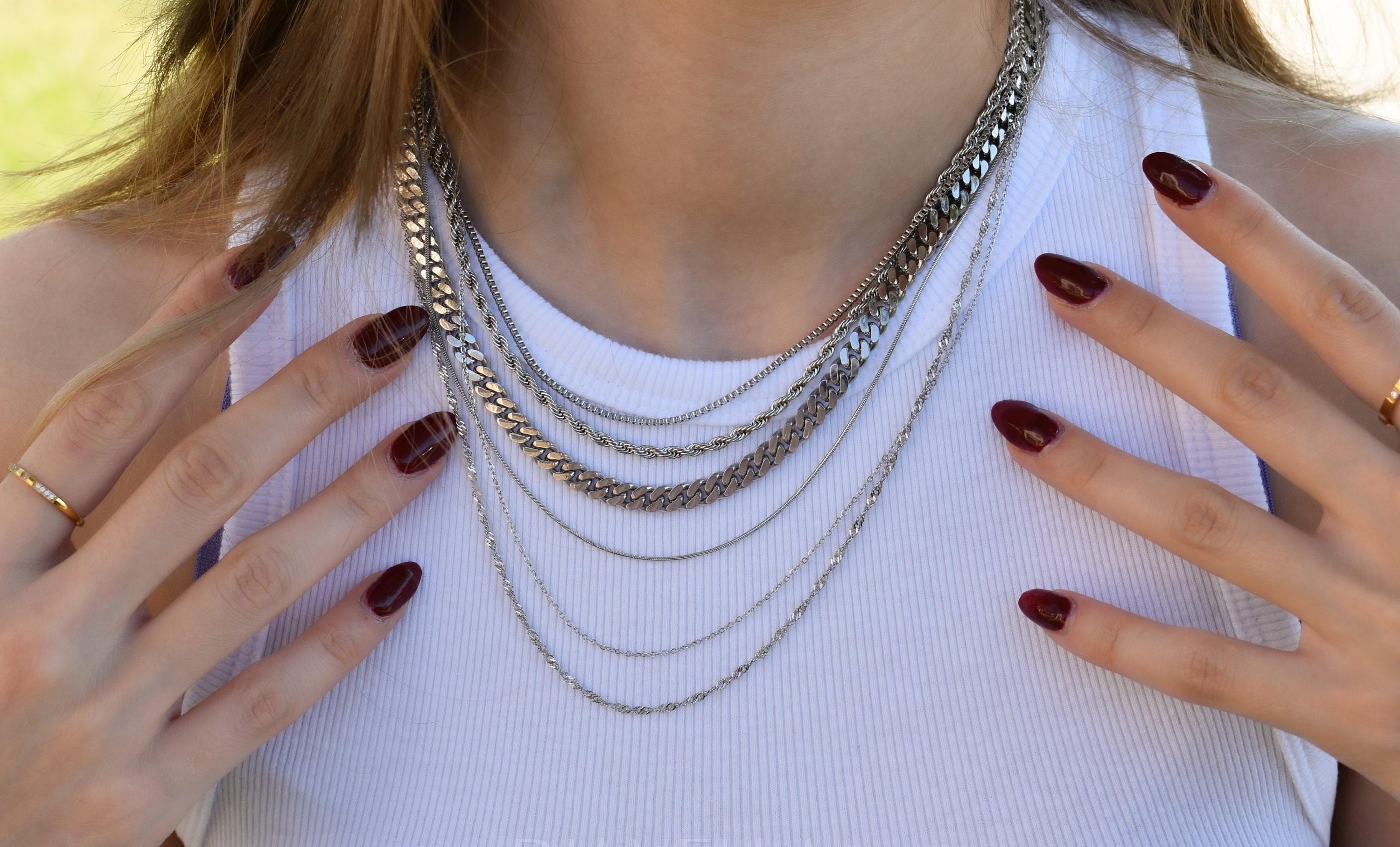 The gorgeous silver chain comes several styles in twist, and dainty, etc, allowing you to find the right look to compliment your outfit.